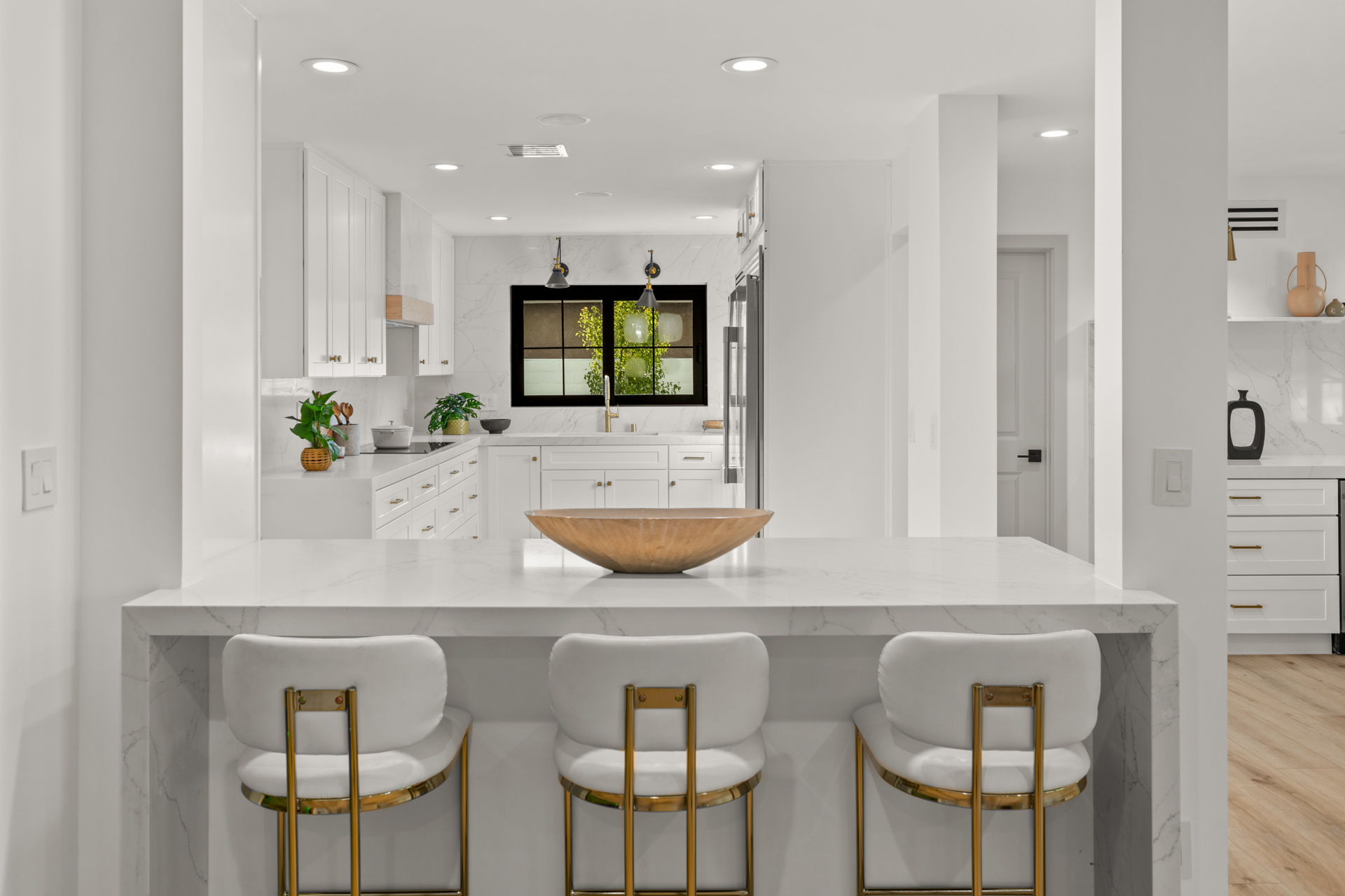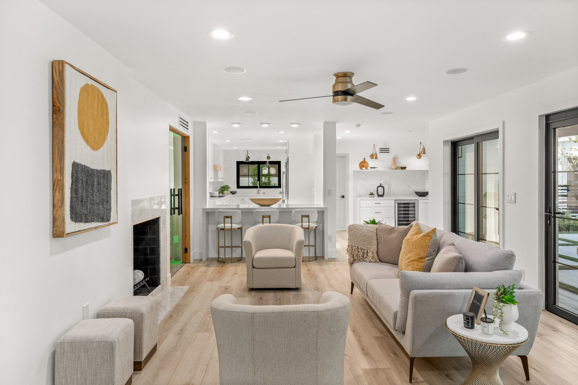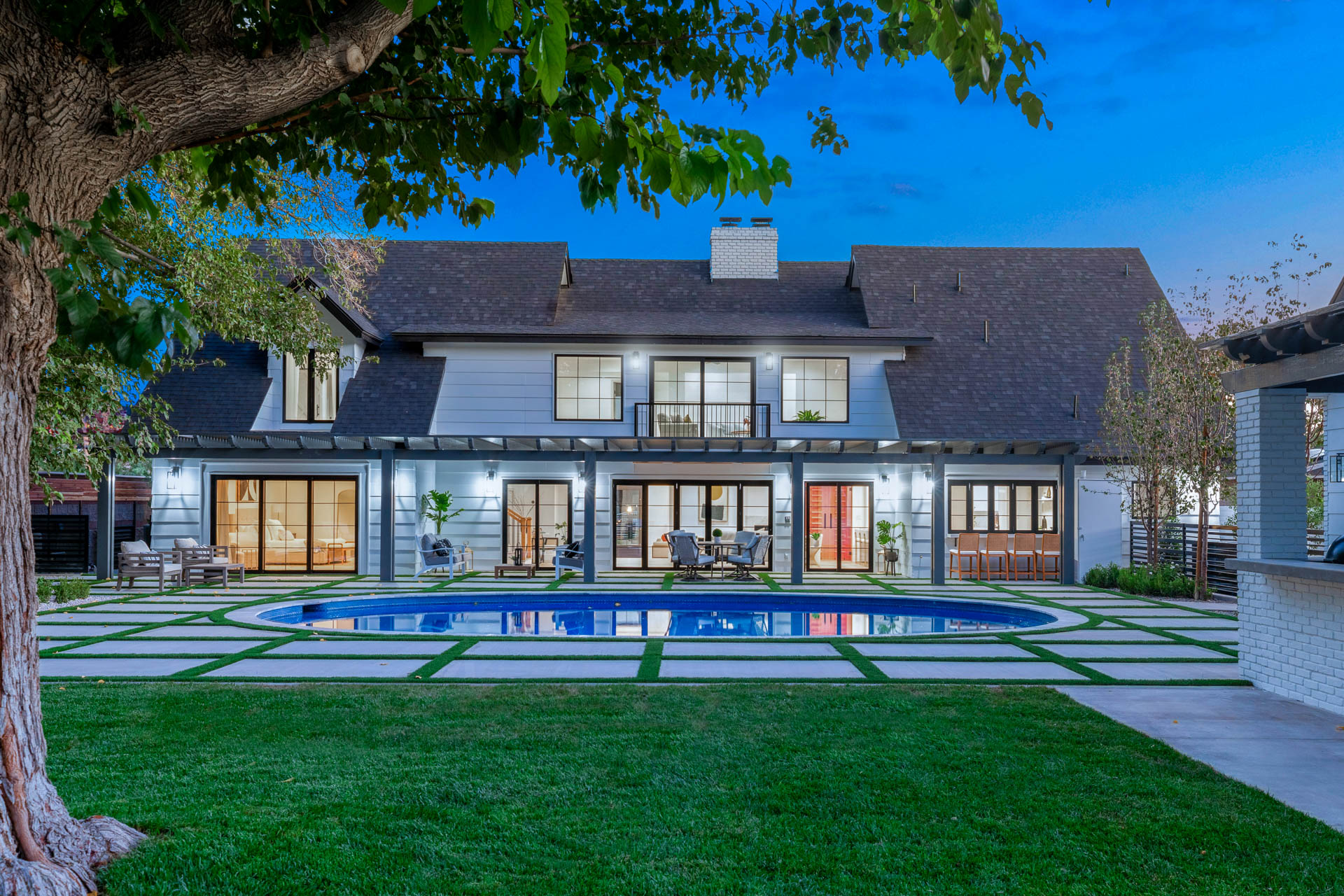 Retreat from the city in this exceptional treasure. The Rancho/Alta Historic District is west of the Downtown area and a short drive away from the Las Vegas Strip. This striking home was made for entertaining! A gourmet kitchen features an Induction cooktop, double oven plus convection, an island with bar seating, a wet bar, and for the connoisseur, a gorgeous glass walk-in wine room. Spacious and beautifully appointed, the main-level master is just steps away from a late-night dip in the lovely oval pool.