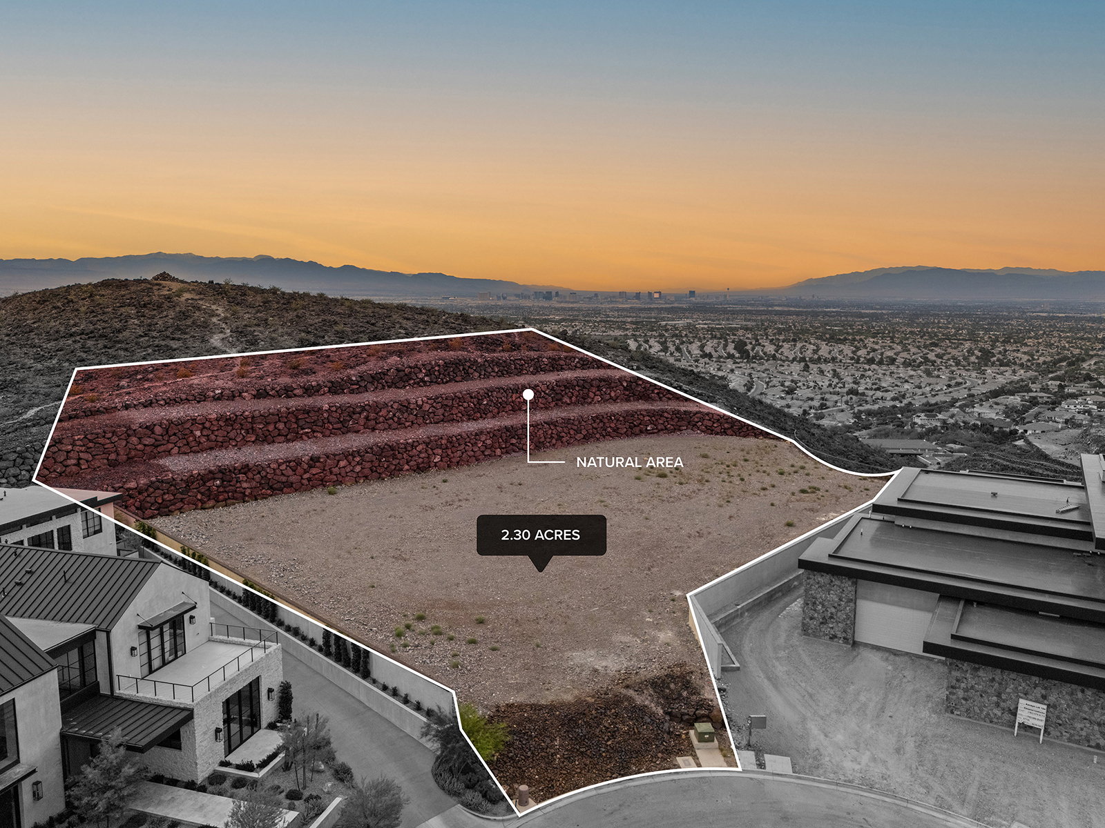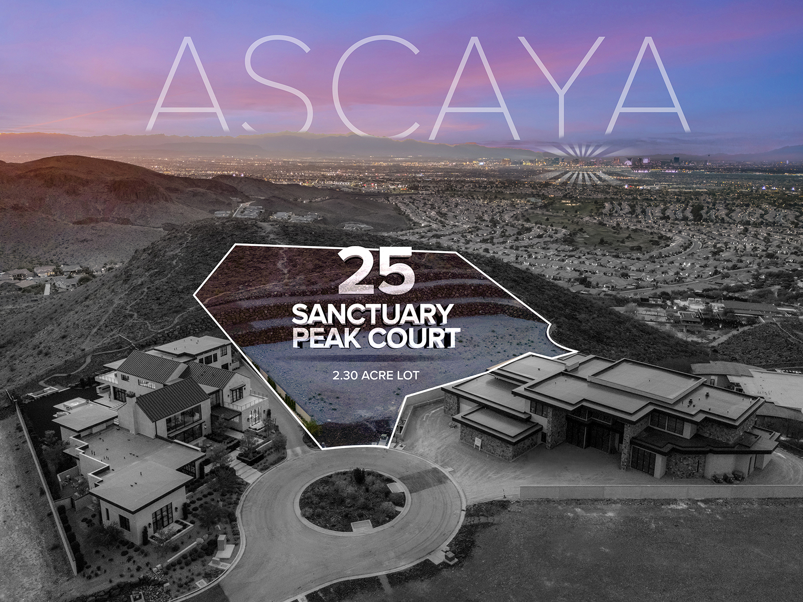 Commanding a premier position within Ascaya, this exceptional 2.30-acre cul-de-sac corner homesite at 25 Sanctuary Peak presents a rare opportunity to craft a truly signature desert estate. Elevated high above the valley floor, the property captures breathtaking, unobstructed vistas of the iconic Las Vegas Strip, the rugged beauty of Red Rock Canyon, the eastern silhouette of Sunrise Mountain, and the dazzling glow of city lights that define the Las Vegas skyline.
