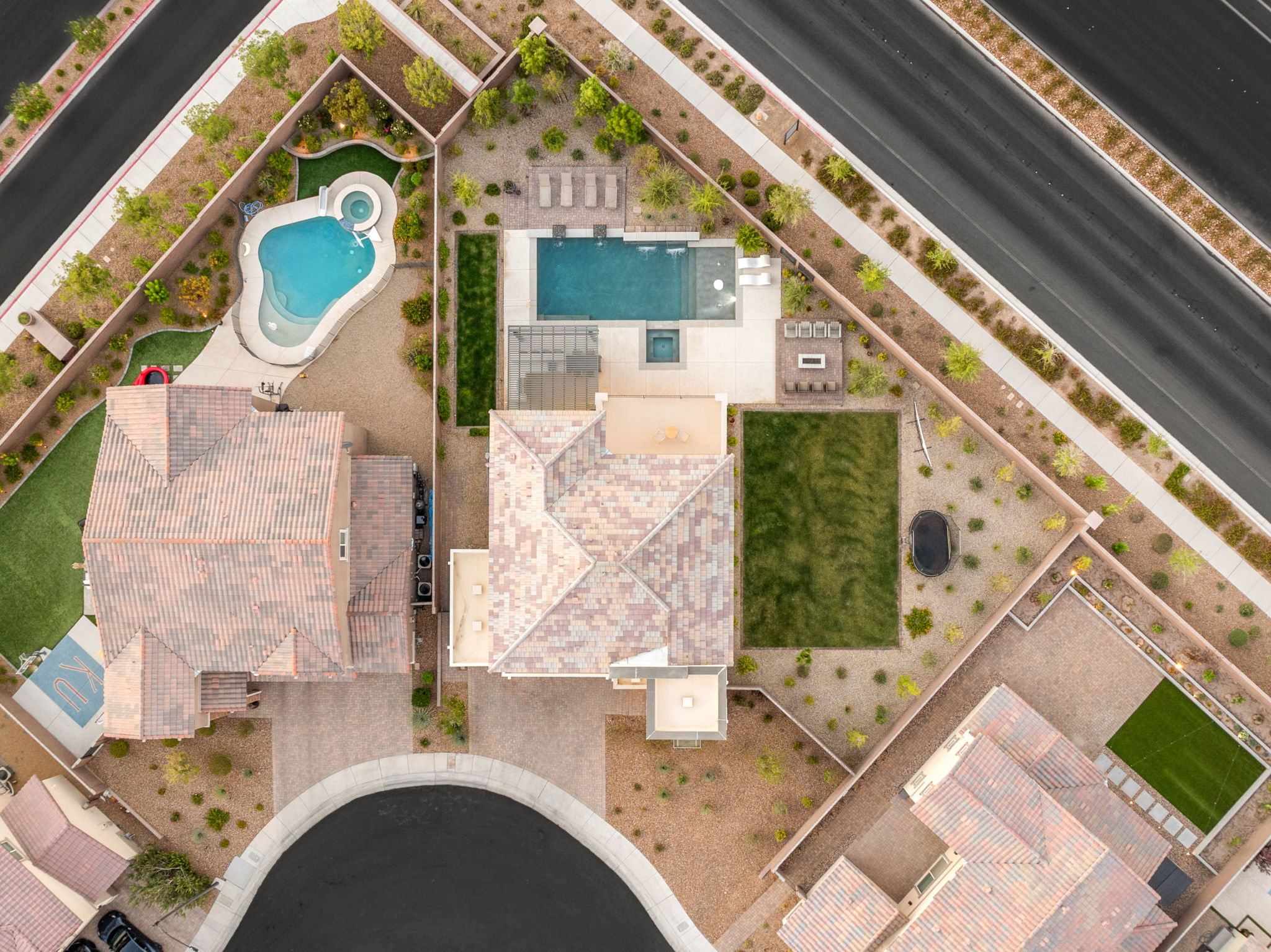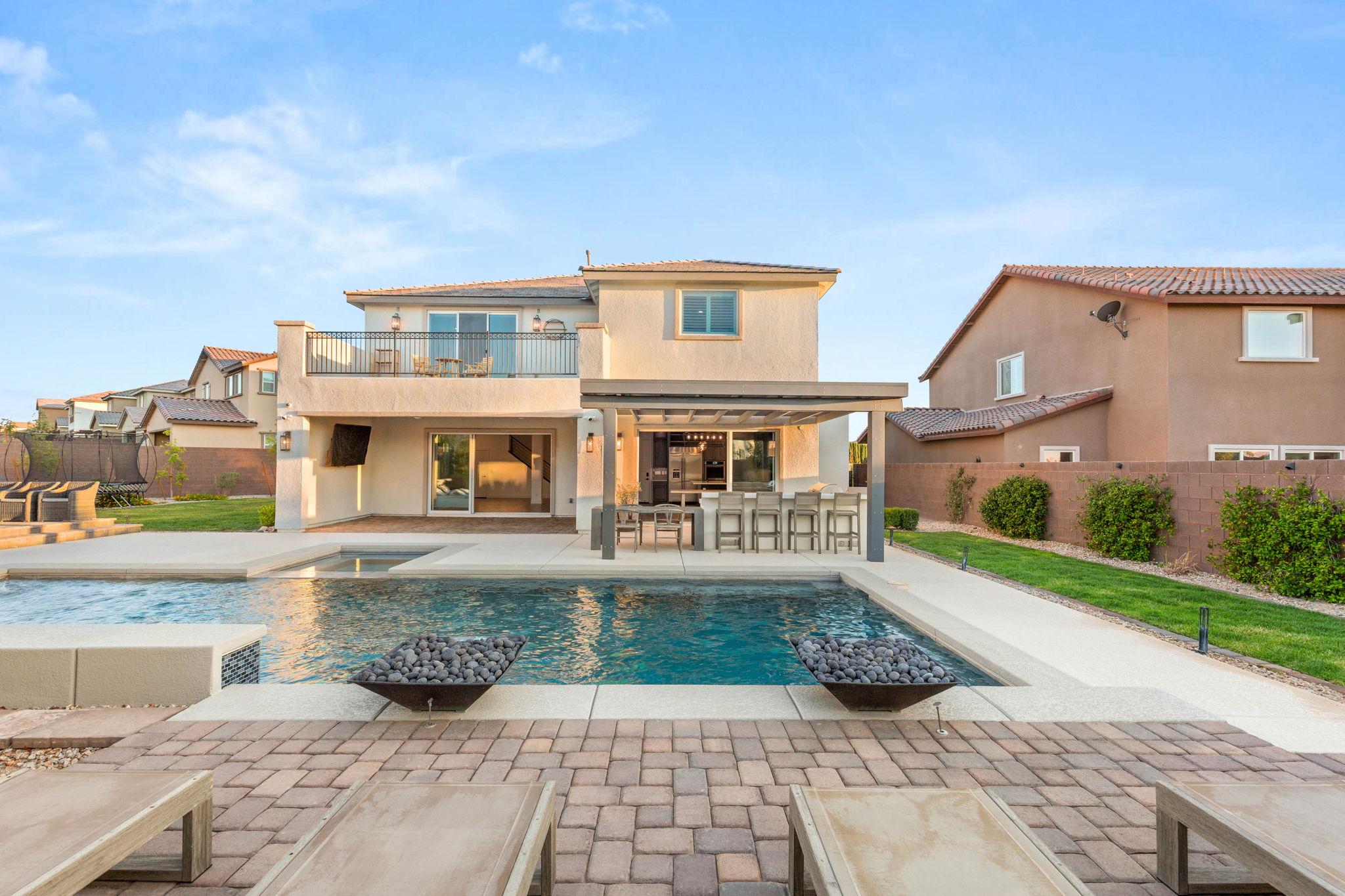 Upstairs, a spacious loft offers additional living space, complemented by plantation shutters throughout the home for timeless style and privacy. The primary suite is a serene escape, complete with a private balcony overlooking the backyard, a spa-inspired bathroom featuring a freestanding soaking tub, an oversized walk-in shower, dual sink vanity, and a large walk-in closet with custom built-ins. Four additional bedrooms provide ample space for family, guests, or a home office, while the upstairs laundry room adds convenience. The three-car garage is equally impressive, with built-in storage and epoxy flooring, offering functionality and style. Outdoors, the half-acre-inspired backyard has been transformed into a true oasis. A sparkling pool with attached spa, sun deck, and striking water and fire features take center stage, while multiple entertaining zones invite year-round enjoyment. A covered patio lounge is wired for outdoor sound and outfitted with ceiling fans and a mounted TV. An oversized pergola shelters the built-in BBQ and outdoor dining area, while a separate fire pit lounge offers a cozy gathering spot near the pool. With no rear neighbors, privacy is assured. Living in Inspirada means more than just a beautiful homeāitās a lifestyle. This vibrant, amenity-rich community offers parks, walking trails, pools, sports courts, and a lively calendar of events, fostering connection and a true sense of place. Homes of this size, design, and privacy rarely come to market in this coveted neighborhood, making 2554 Hazelburn Avenue a unique chance to experience the very best of contemporary living in Henderson.