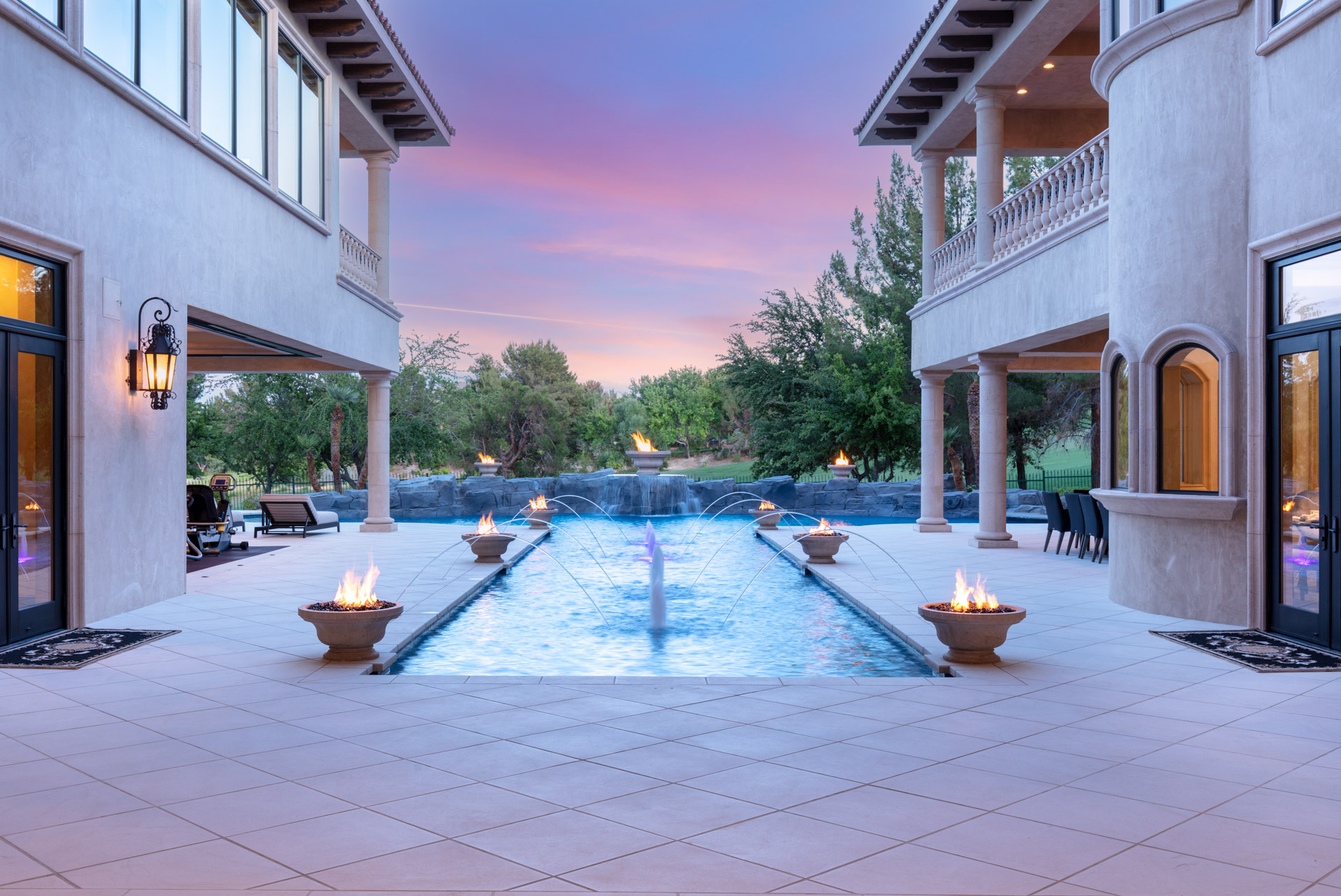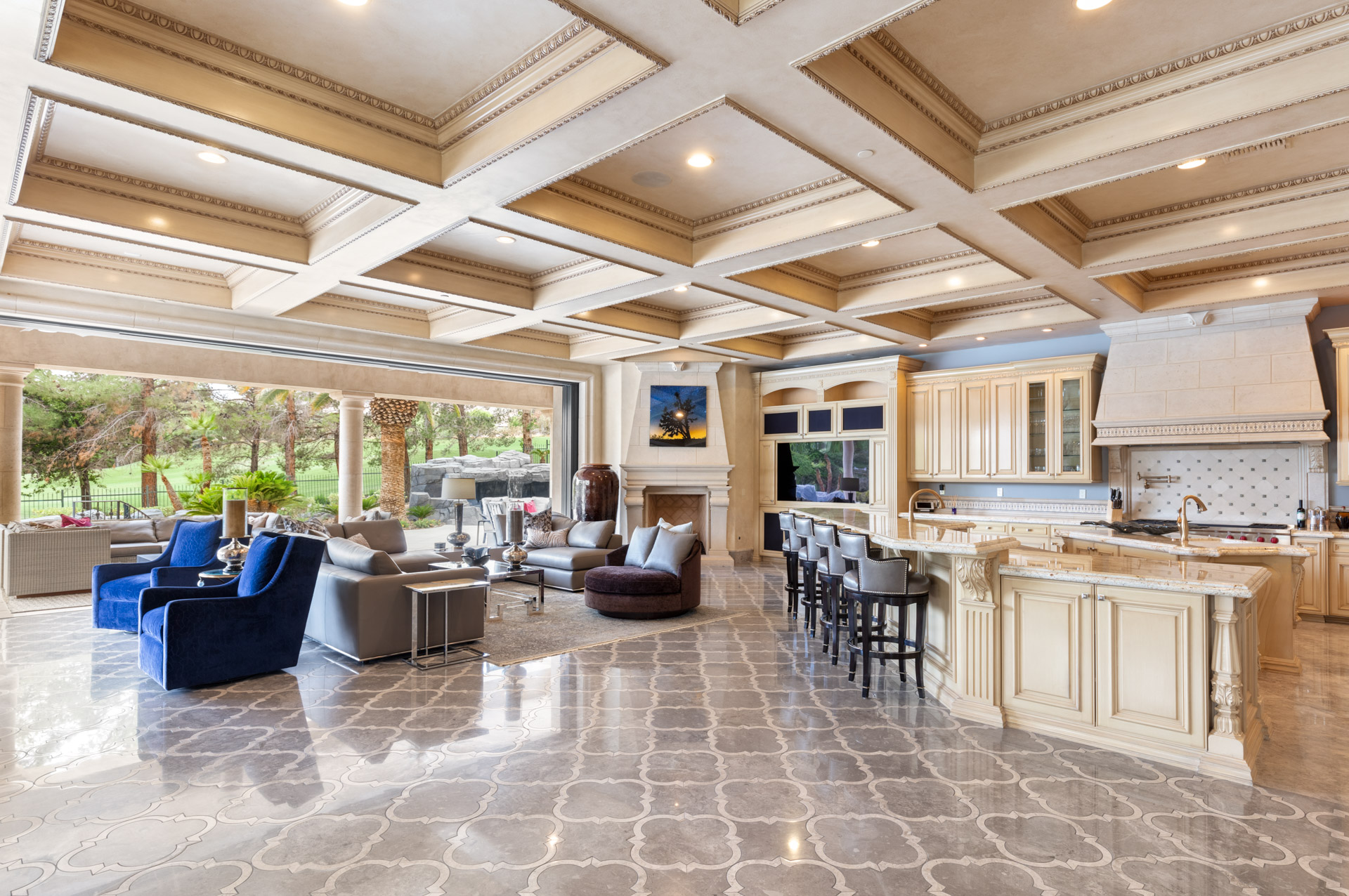 The expansive floor plan encompasses six lavish bedrooms, each with its own en-suite bathroom, providing ample space for both relaxation and privacy. This home embraces the concept of seamless indoor-outdoor living, with pocket doors that open to an outdoor oasis. The lushly landscaped grounds boast a sparkling pool and spa, creating a private sanctuary where you can unwind and bask in the glorious Las Vegas sunshine. A true entertainer's dream, this estate features an array of exceptional amenities. The dream kitchen is equipped with top-of-the-line professional gourmet appliances, ensuring that culinary masterpieces can be effortlessly created. With two wine cellars, a library, an exercise room, and a home theatre/game room, this residence offers endless opportunities for leisure and entertainment. In addition to the main residence, a separate casita provides a private retreat for guests, while a rare 10-car garage ensures that all your automotive treasures are safely housed. Attention to detail is evident throughout, with enkeboll molding, pre-cast stone columns, and an elevator adding to the overall grandeur of the home. Living within the Southern Highlands Golf Club community means enjoying an extraordinary lifestyle. The Club offers world-class amenities, including championship golf courses, parks, and serene walking trails. Immerse yourself in a community that epitomizes luxury living and provides access to an abundance of recreational activities. This is an exceptional opportunity to own the finest home in Las Vegas. From the meticulously designed interiors to the captivating outdoor spaces, this Mediterranean estate offers a lifestyle of unparalleled luxury. Don't miss your chance to experience the epitome of sophistication and elegance. Schedule your private showing today and discover the true meaning of opulent living.