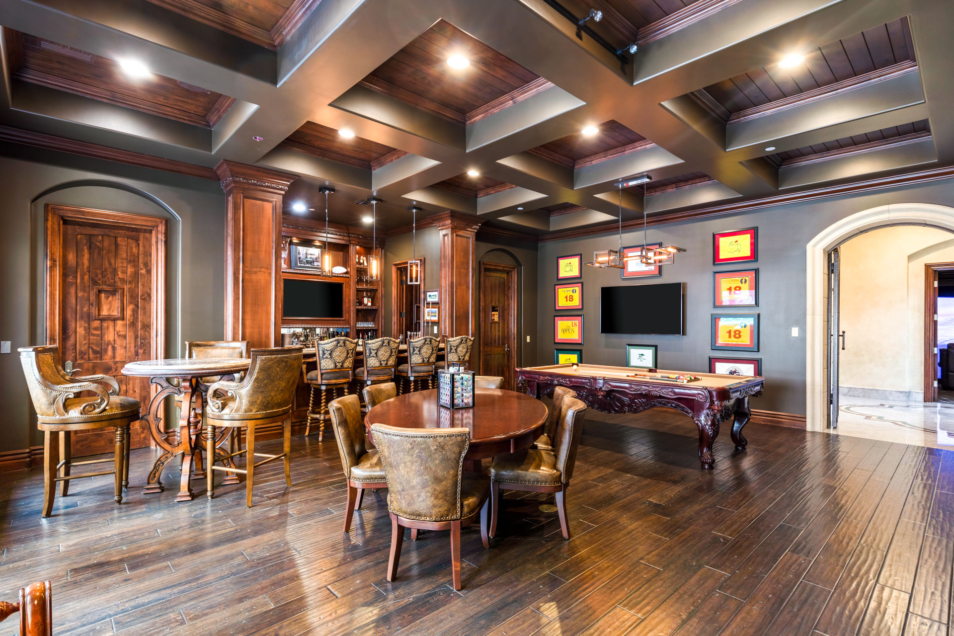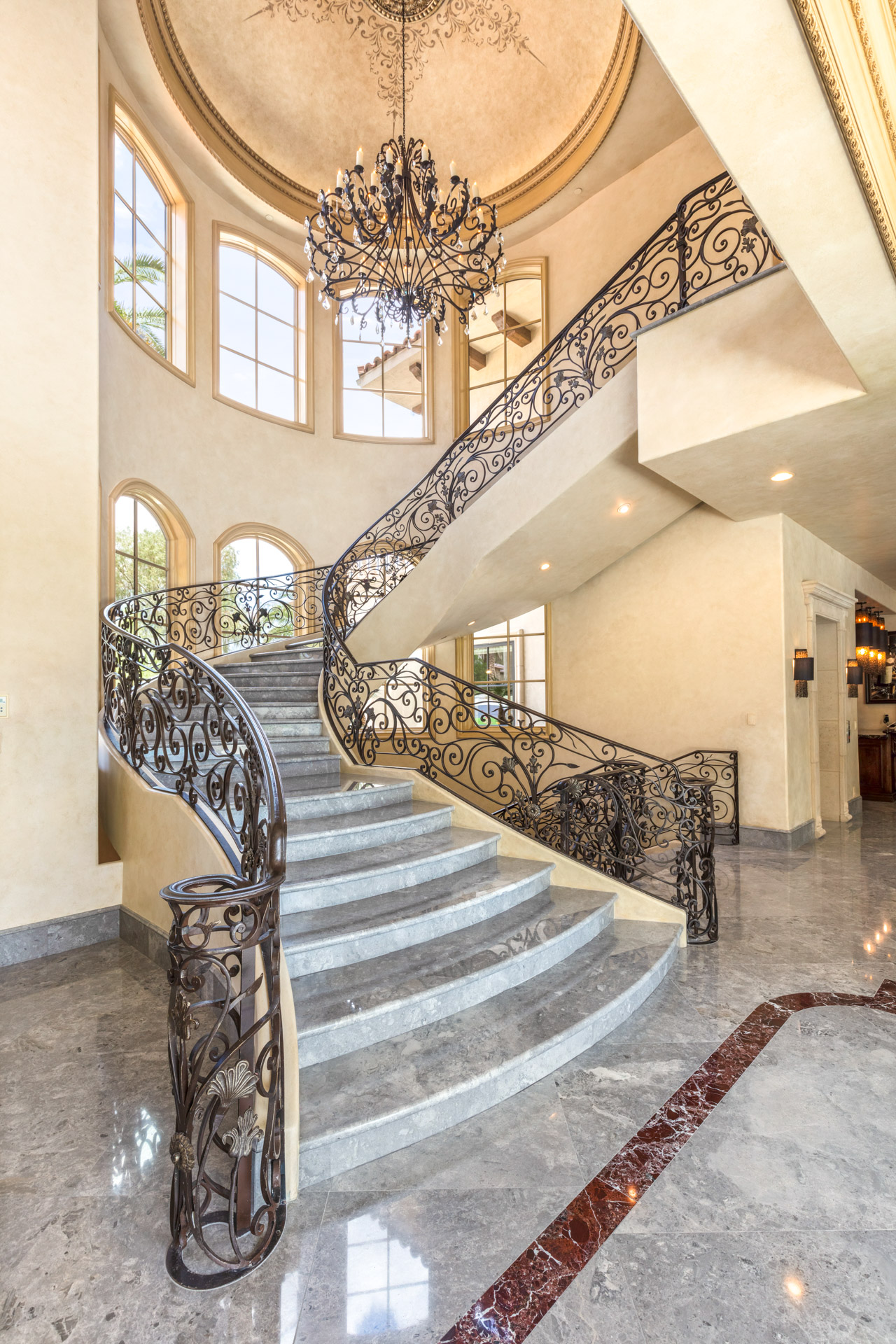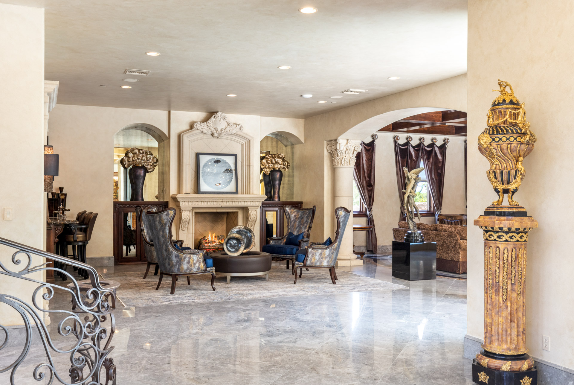The grandeur continues as you step inside, greeted by the sheer opulence of the 13,489 square feet of living space. Every detail has been meticulously crafted to create an atmosphere of refined luxury. Turkish marble floors adorned with architectural iron details guide you through the home, creating an air of elegance at every turn.