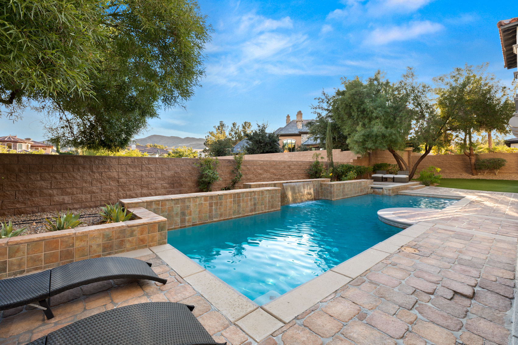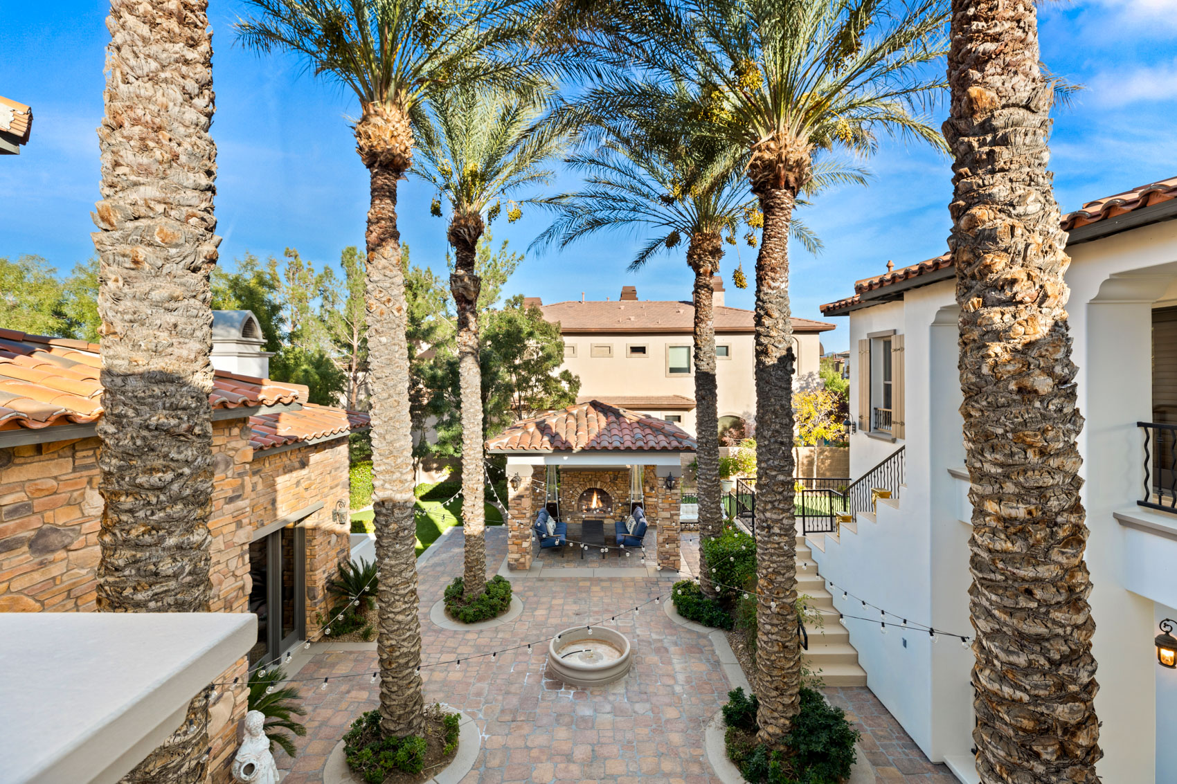 The exterior of the home is a masterpiece in itself, featuring a stunning stone facade and a tranquil courtyard adorned with graceful date palm trees and a mesmerizing water fountain. Upon crossing the threshold, you'll be welcomed into a gourmet kitchen that's every chef's dream, complete with a generously sized custom island and top-of-the-line appliances that make culinary endeavors a true pleasure. This magnificent estate offers an unparalleled living experience that extends beyond its expansive interior. The outdoor oasis is an entertainment dream, featuring a barbecue area, an inviting pool, a rejuvenating spa, and even a putting green for golf enthusiasts. The property is more than just a house; it's a resort-like haven that invites you to savor the finest in luxury living. Situated on a sprawling 0.46-acre lot, this home offers breathtaking views and the perfect backdrop for your daily enjoyment. In the midst of the Southern Highlands community, known for its exclusive amenities and the Southern Highlands Golf Club, this home offers an elevated living experience with unmatched privacy and security in a gated, custom neighborhood. Three fireplaces add a touch of warmth and elegance, while the house is thoughtfully designed around a central courtyard, complete with a soothing fountain, cozy outdoor seating areas, and an enchanting stone fireplace. It's the ideal setting for intimate gatherings or lavish soirees, and it all comes together to create an inviting atmosphere that's second to none. This is an unparalleled opportunity to own a fully customized, one-of-a-kind home in a setting that offers not just luxury but an entire lifestyle. Don't miss the chance to make this dream home your own; the ultimate in Southern Highlands living awaits you at 27 Greenside Drive.