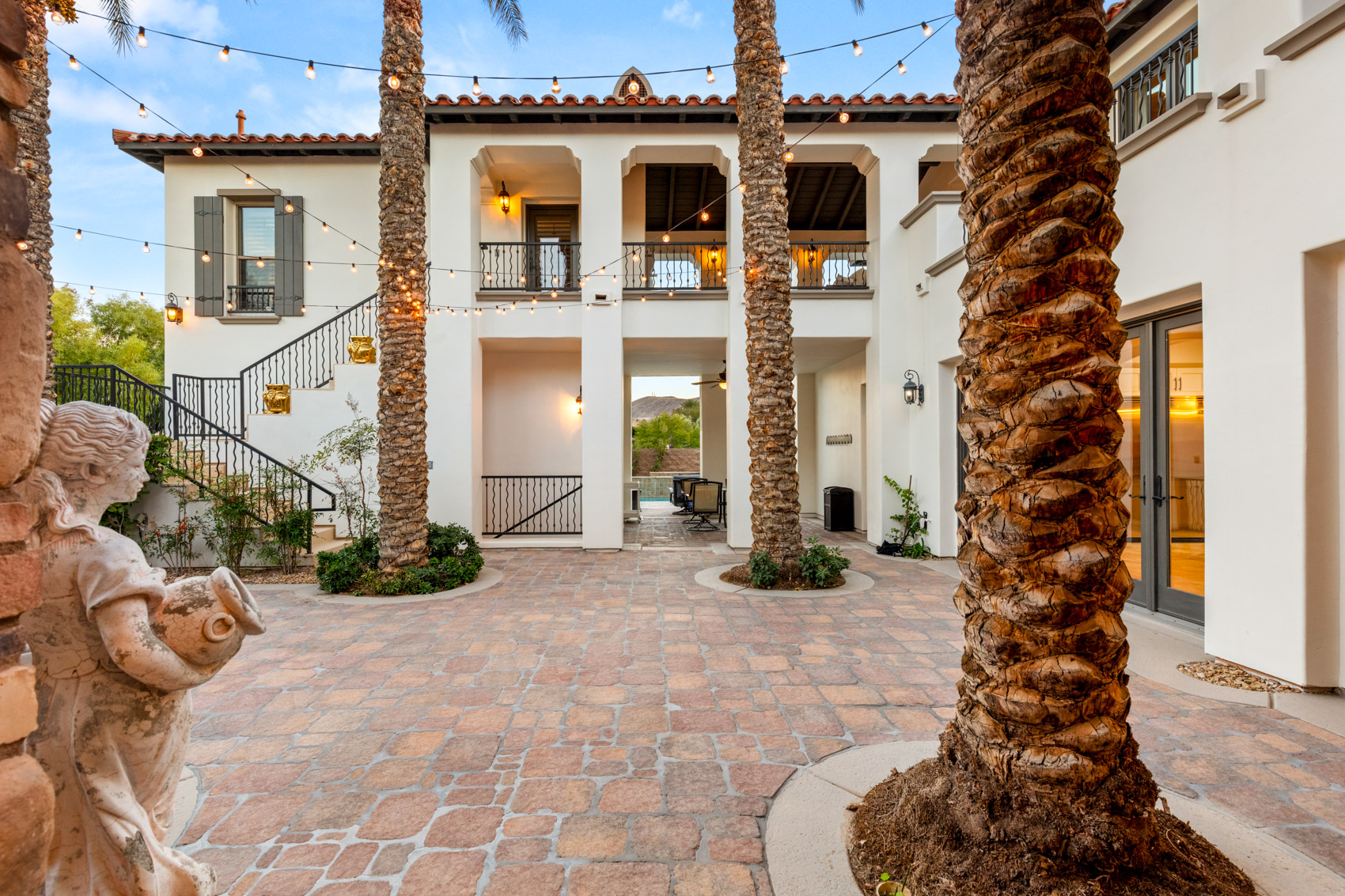 As you step into this lavish estate, you'll be captivated by the grandeur of its design and the unparalleled attention to detail. This extraordinary abode boasts five luxurious bedrooms, each with its own meticulously crafted ensuite bathroom. The property's unique allure is further enhanced by a 2-story casita, which provides privacy for guests, and an inviting basement which houses an impressive wine cellar and that can serve as your private movie haven or man-cave retreat.