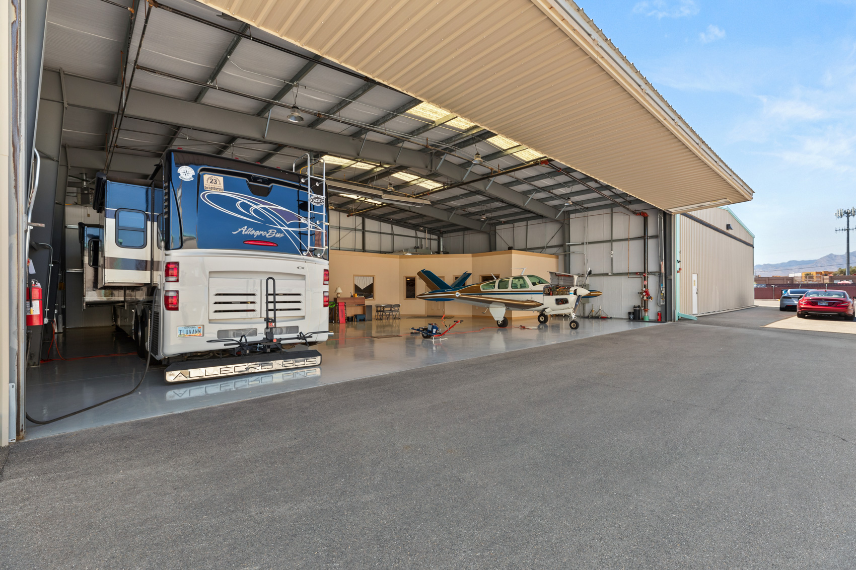Security is paramount in this state-of-the-art facility. The hangar is equipped with a comprehensive security system, including surveillance cameras strategically placed throughout the property. This ensures that your aircraft and other valuable assets are always protected, offering you peace of mind whether you're at the airport or away. One of the standout features of this hangar is the 736 square foot home within the premises, occupying 20% of the hangarās total area. This residential space is fully equipped with modern amenities, including water and sewer connections, HVAC systems with a powerful 3.5-ton air conditioner, and infrared heating to ensure year-round comfort. This unique blend of living space and hangar offers unparalleled convenience, allowing you to stay close to your aircraft and manage your flights without leaving the property. The North Las Vegas Executive Airport is often referred to as "the airport of the future," and this property exemplifies why. The facility's advanced infrastructure and strategic location offer a significant advantage over other airports in the region, particularly the Henderson Executive Airport. Here, youāre not just purchasing a hangarāyouāre investing in a future-proofed asset that offers superior value in both convenience and cost. Opportunities like this are exceedingly rare in the market. This private hangar at the North Las Vegas Executive Airport is a unique blend of functionality, security, and luxury, tailored for those who demand the best in aviation facilities. Whether you're a seasoned pilot or an aviation enthusiast, this property offers a chance to elevate your flying experience and invest in a premier aviation asset that will serve you well for years to come. Donāt miss out on this exceptional opportunity to own a piece of the future in one of the most sought-after locations in the aviation world. **Seller would consider selling RV separately**