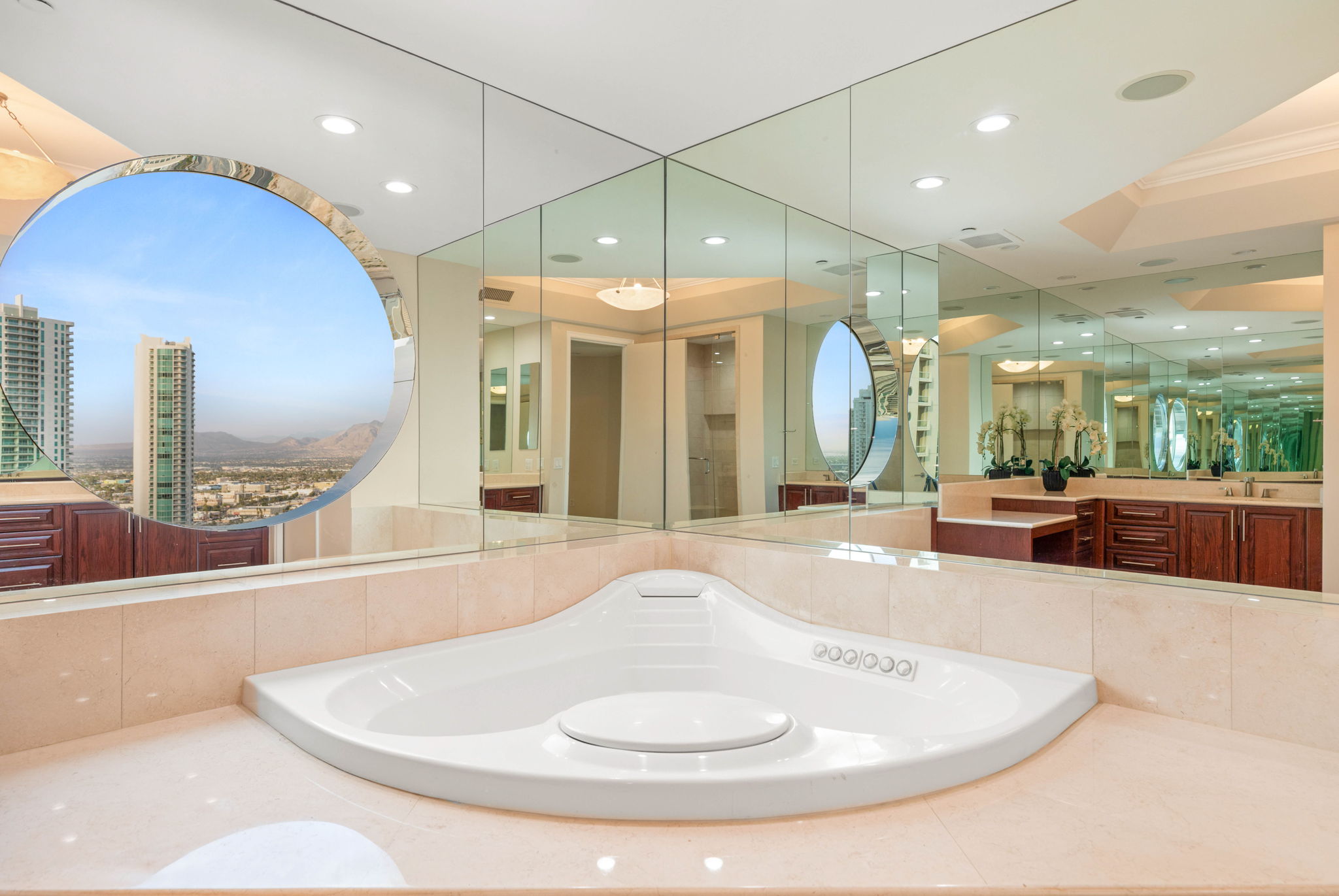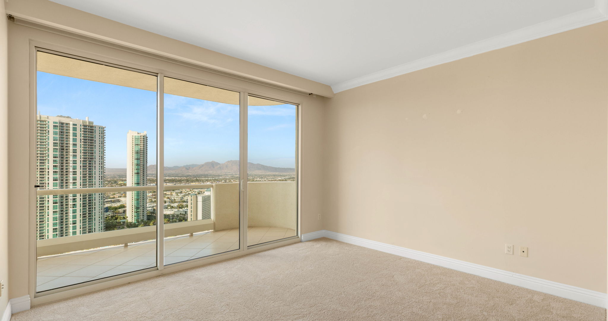 Every principal room is designed to showcase the breathtaking skyline, with expansive windows offering unobstructed views and outfitted with remote-controlled dimming and blackout shades. Enjoy the cityscape from multiple private balconies accessible from the kitchen, den, and two of the four bedroomsāan ideal setting for morning coffee or evening cocktails. The open-concept living spaces are anchored by elegant marble flooring that flows seamlessly through the kitchen, den, and living room. Plush new carpeting adds warmth and comfort throughout the bedroom corridors. The living and entertaining areas are perfectly arranged for both intimate gatherings and large-scale entertaining, with abundant natural light and curated lighting elements throughout. At the heart of the home, the gourmet kitchen is a chefās dreamāfitted with top-of-the-line appliances including Miele, Sub-Zero, and Gaggenau. A sleek design with ample cabinetry and workspace makes culinary endeavors a joy, whether preparing a casual breakfast or hosting an elegant dinner. The spacious primary suite is a luxurious sanctuary featuring an open and inviting layout, generous natural light, and a lavish ensuite bathroom. Dual vanities, an oversized Jacuzzi tub, and premium finishes create a spa-like retreat. A standout feature of the residence is the custom-designed primary closetāoffering a boutique-style experience with extensive hanging space, glass-front cabinetry, and abundant drawers, all masterfully organized for both function and flair. Three additional bedrooms provide flexibility for guests, family, or a home office, and share similarly refined design details, including access to remote-controlled shades and city views. Blackout capabilities in three of the bedrooms ensure restful sleep any time of day. This remarkable penthouse also includes four deeded parking spacesāan exceptional convenience in high-rise living. Residents of Turnberry Place enjoy world-class amenities, including valet service, 24-hour security, a resort-style pool, state-of-the-art fitness center, and the added benefit of a guest suite for visiting friends and family. Combining privacy, luxury, and sweeping views, this rare 4-bedroom, 5-bath penthouse spans over 4,100 square feet of thoughtfully designed interior space. Whether you're entertaining in style or enjoying peaceful solitude above the city, 2747 Paradise Road Unit #2704 is a masterpiece of elevated urban living.