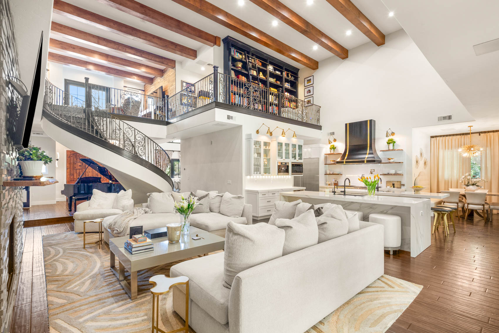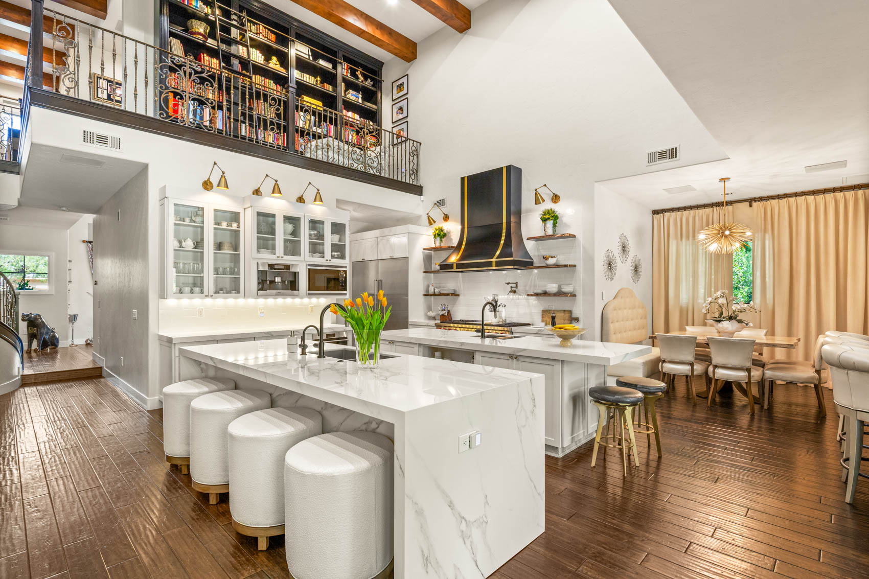 Meticulously remodeled in 2021 with over $2 million in upgrades, every inch of this residence has been thoughtfully curated to offer the pinnacle of comfort and style. Step inside to discover a breathtaking 5-bedroom, 7-bathroom retreat, where natural light cascades through expansive windows, framing stunning views of the golf course and surrounding mountains. The grandeur of the home is immediately apparent, with soaring ceilings, designer finishes, and an open-concept layout that invites both grand entertaining and intimate gatherings.