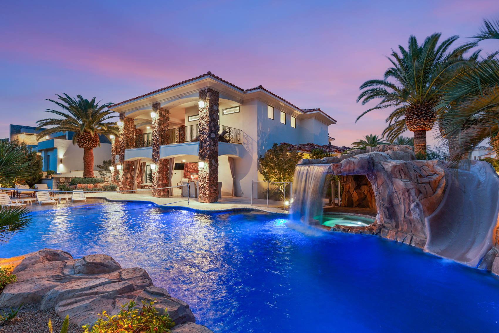 Designed for the discerning homeowner, this estate boasts an elegant outdoor bath, a refined office perfect for remote work, a private exercise room, and a dedicated wine cellar to house your finest collections. The heart of the home is the gourmet kitchen, outfitted with top-of-the-line appliances, sleek cabinetry, and an oversized island, ideal for culinary enthusiasts and social gatherings alike. Beyond the interior, the outdoor spaces are equally impressive. A playful slide cascades into a heated pool, offering endless enjoyment, while the built-in outdoor kitchen and a captivating fire pit create an entertainerās paradise. The backdrop of the illuminated mountains at night enhances the serene and picturesque ambiance, making every evening a breathtaking experience. Adding to its unparalleled appeal, this estate features a spacious 4-car garage, providing ample space for luxury vehicles and additional storage. Positioned within one of Las Vegasā most sought-after communities, Red Rock Country Club is home to a collection of custom estates that embody exclusivity and refined living. With world-class golf, premier amenities, and an unmatched location, this residence stands as a true testament to architectural brilliance and modern opulence. This is more than just a homeāitās a sanctuary where luxury meets adventure, and every detail has been meticulously crafted to elevate your lifestyle. Experience the epitome of elite desert living on Red Arrow Drive.