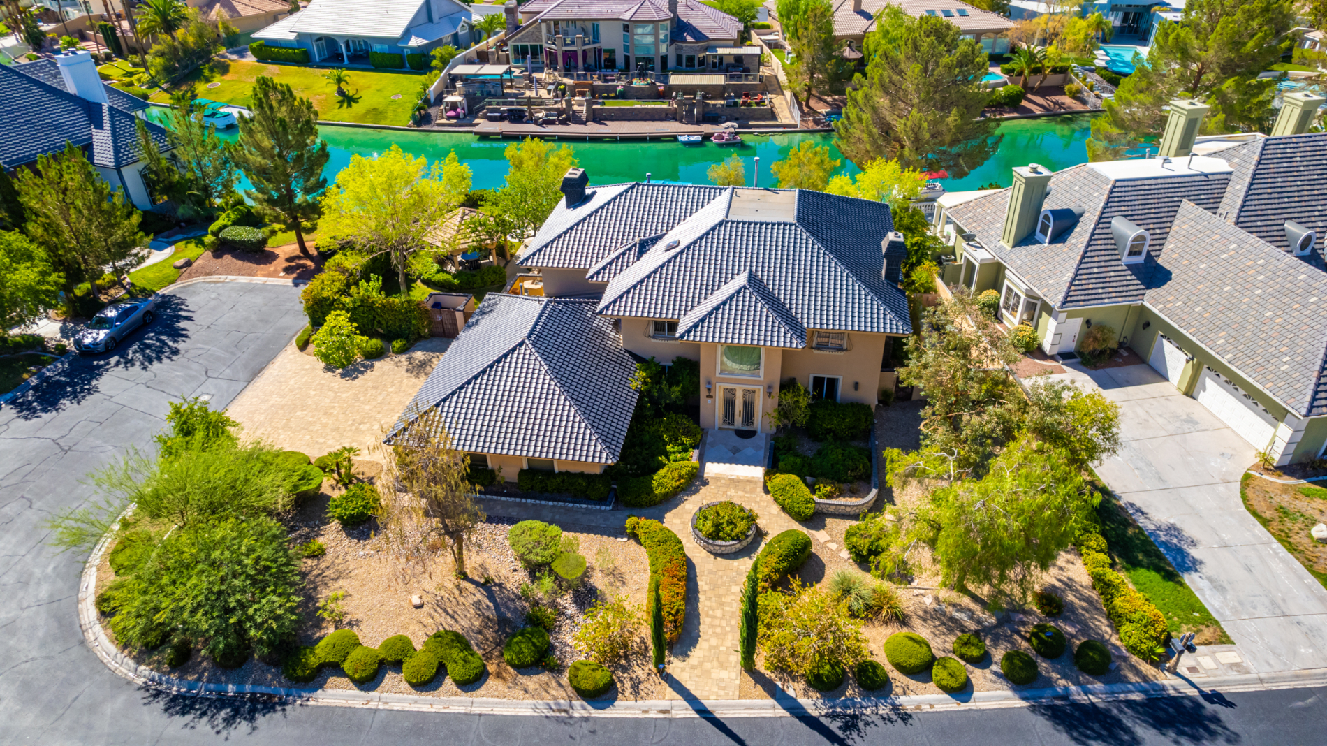 Spacious main bedroom has a sitting area and fireplace! Also including an ensuite with a sauna, separate tub/shower, dual vanities, and a walk-in closet. Versatile den with built-ins. Enjoy the RESORT-STYLE backyard, your paradise retreat! Gazebo, covered patio, built-in bar and BBQ, and a pool/spa combo complete the picture. PLUS! A stairs down to a firepit and private boat dock invite you. Welcome home!