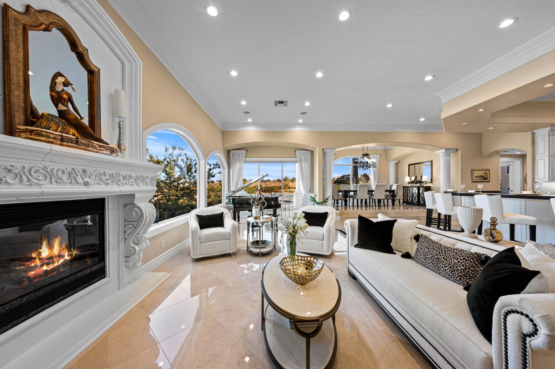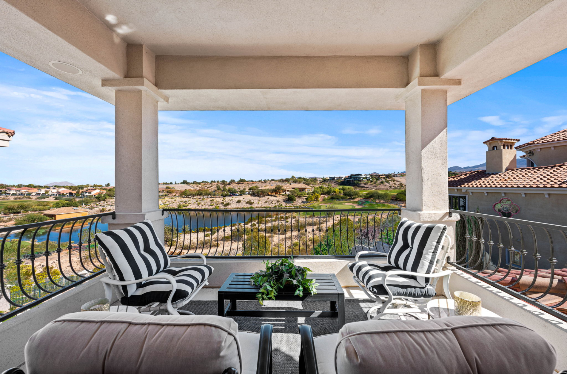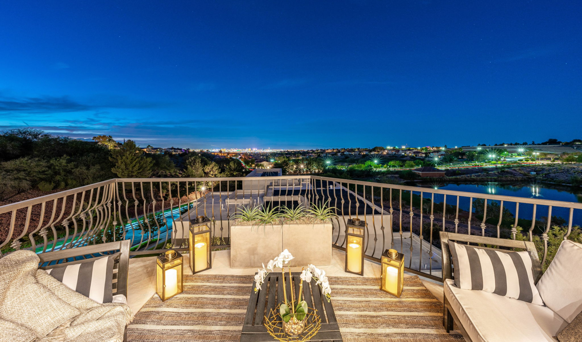 It stands as a beacon of sophistication, offering panoramic views that seamlessly blend the rugged beauty of the Nevada mountains, the lush fairways of the Rio Secco Golf Course with its serene lake, and the iconic sparkle of the Las Vegas Strip into a living masterpiece visible from virtually every corner of the estate.