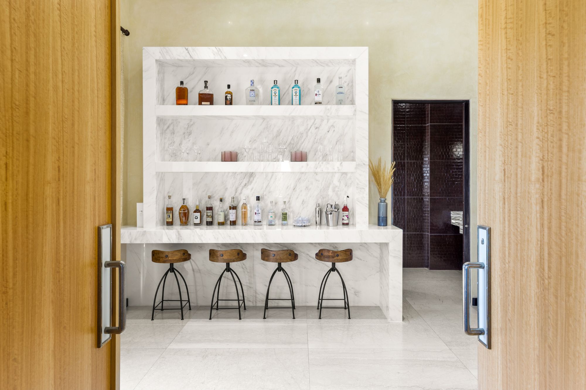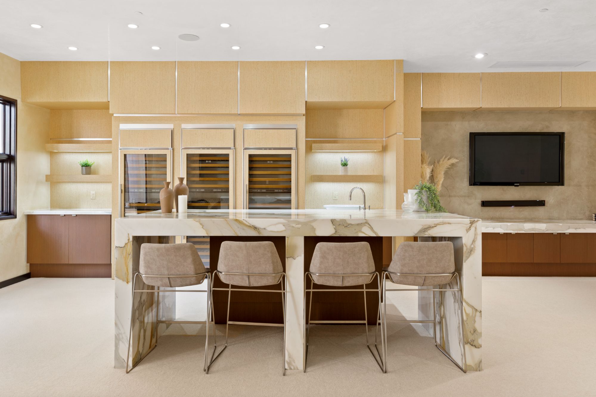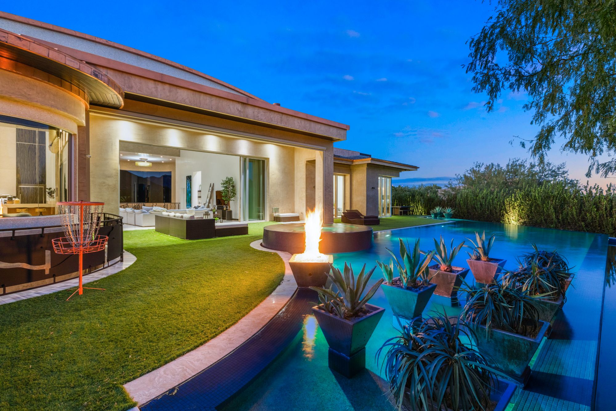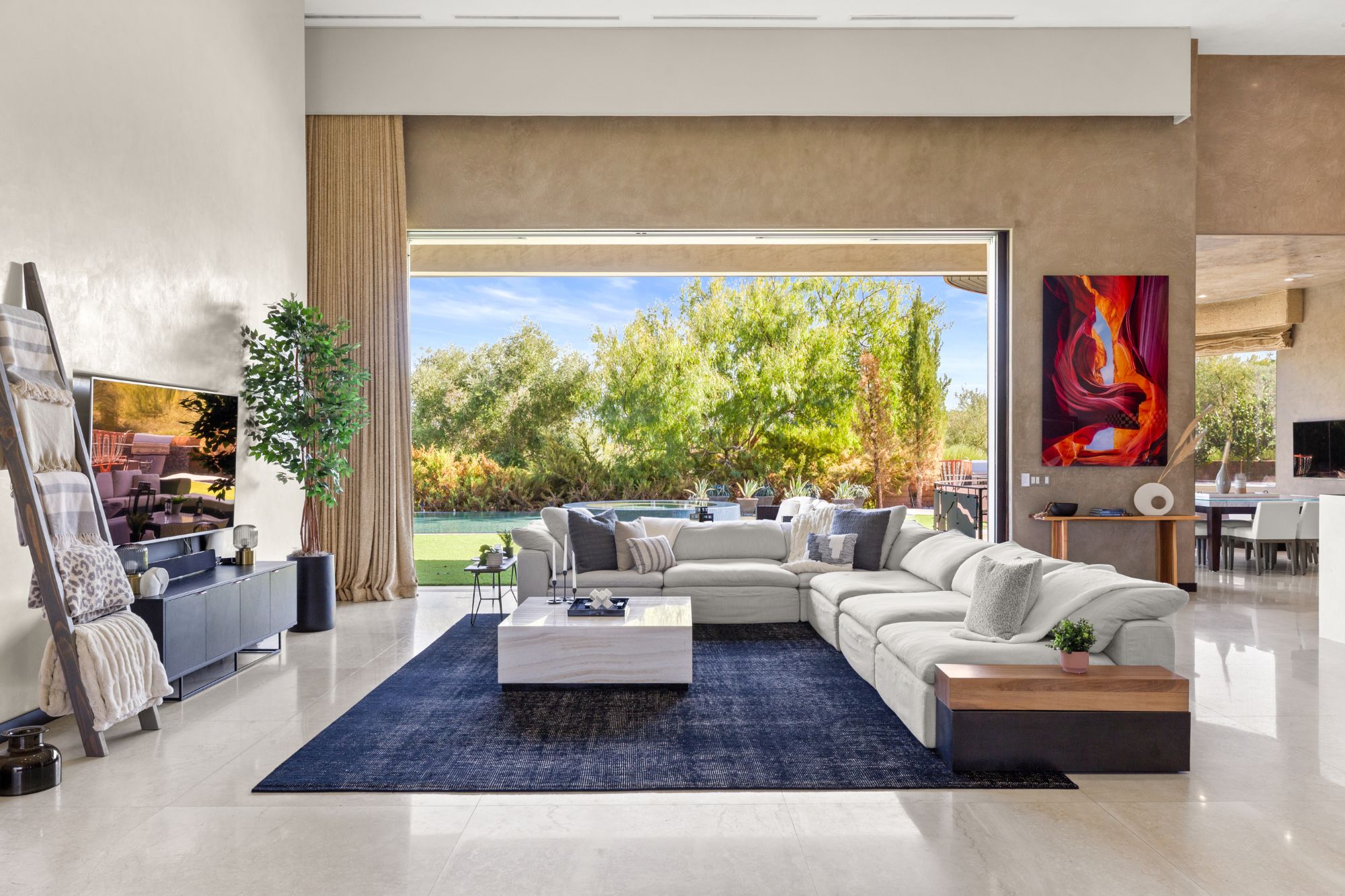 Filled with the beauty of natural light, and high ceilings to add to the expansive feel, this home is one of the most comfortable and elegant around. It offers 6 bedrooms and 9 bathrooms in nearly 12,000 square feet of living space. The multiple pocket doors provided throughout the home lend themselves to the indoor/outdoor feel, so you can go from the coziness of your indoor living space to the vast expanse of the surrounding desert.