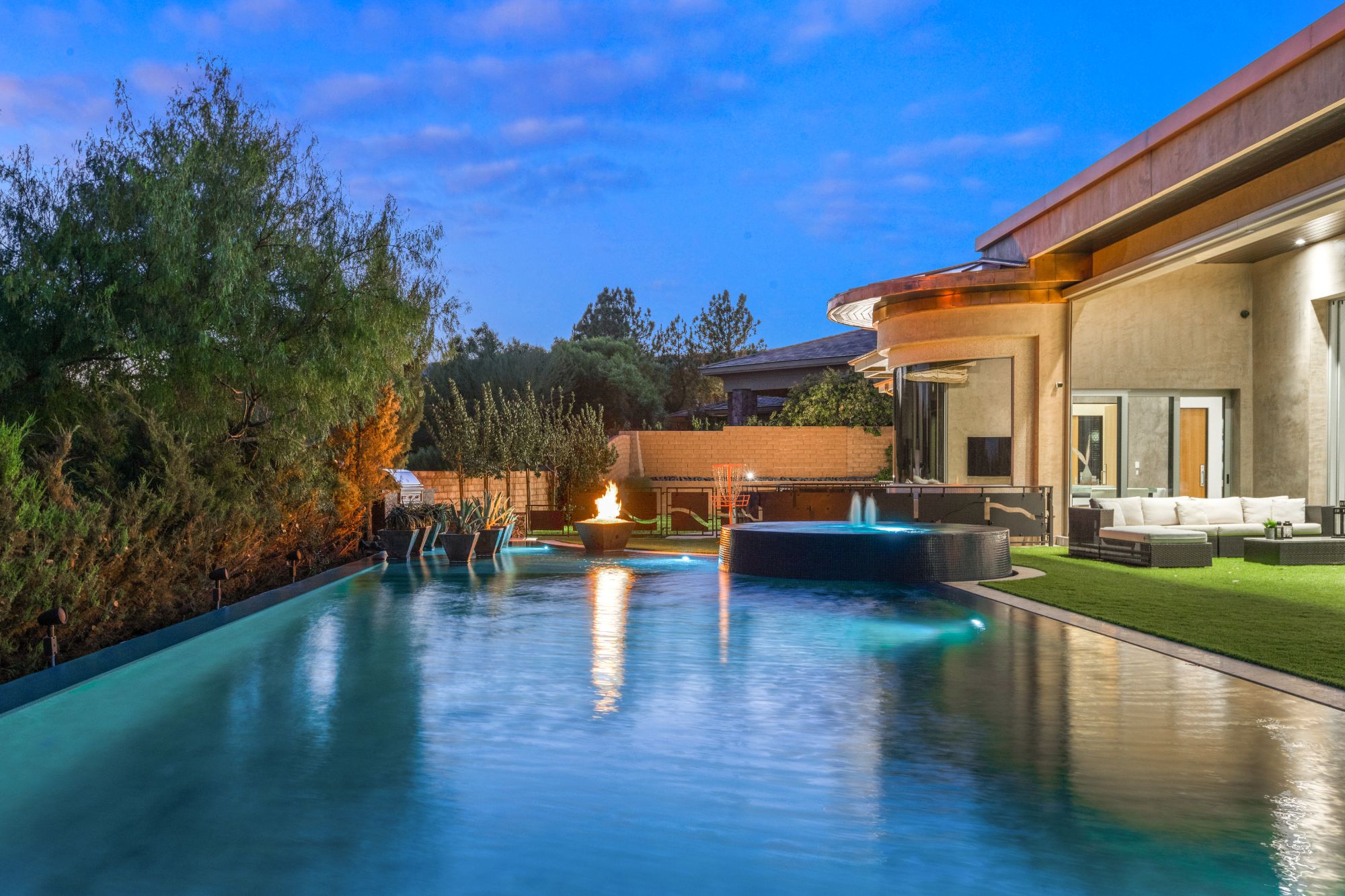 Explore the wine cellar, take in your favorite film in the movie theatre, and enjoy entertaining family and friends in the dining room. There are two elevators to make getting around easy, and a gym for those days when you want to get in a good workout. A separate casita is currently an office, but could easily become another bedroom. A separate apartment with living room, bedroom, and kitchenette is also part of the property. The roof deck provides stunning city views, and the huge yard and infinity edge pool give you another great space for relaxation or entertainment. Experience some of the best that Vegas has to offer, with this great home today.