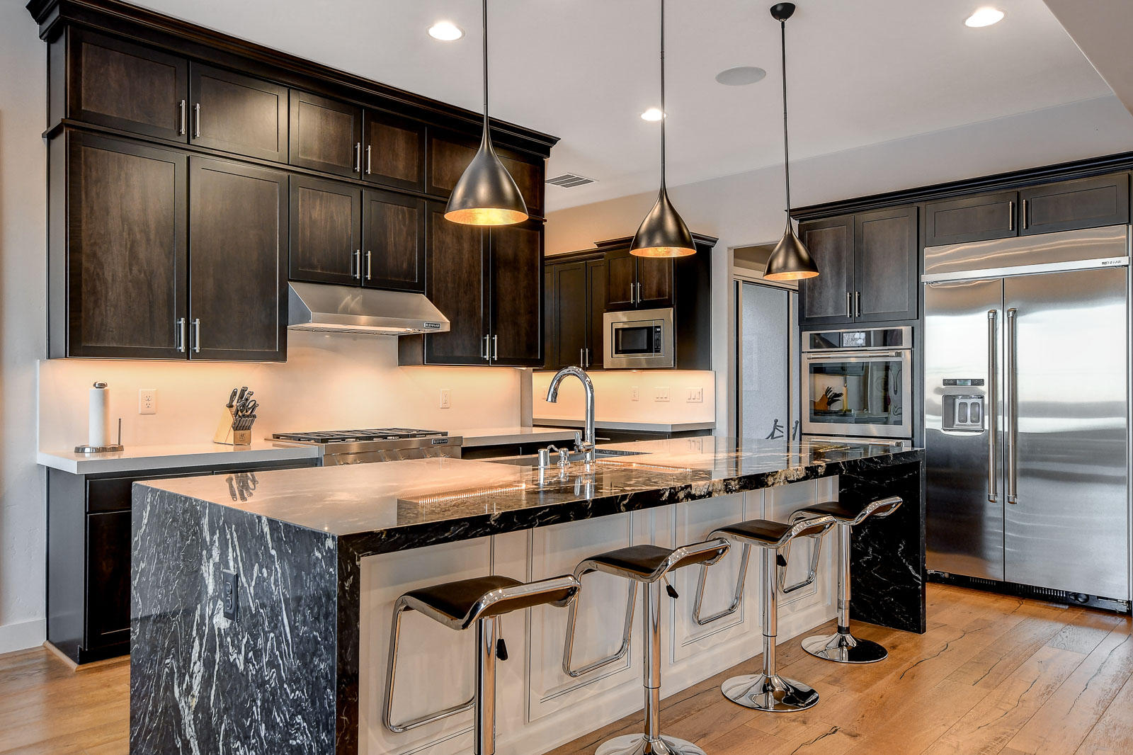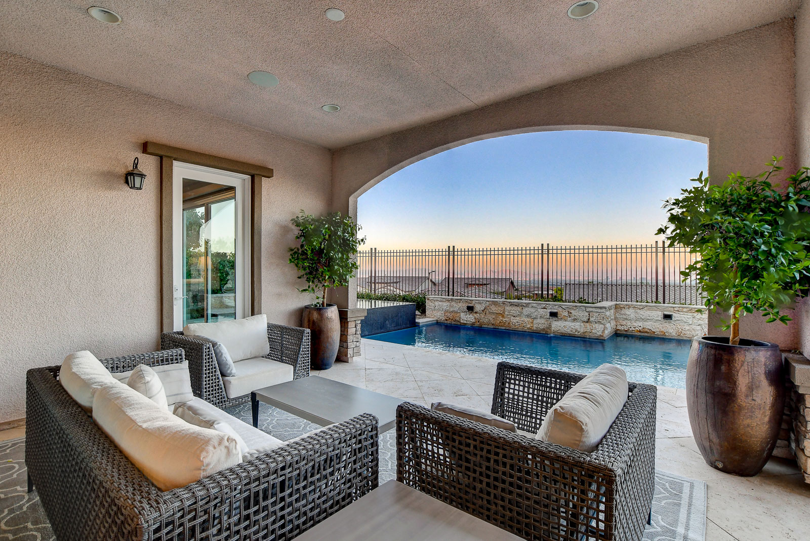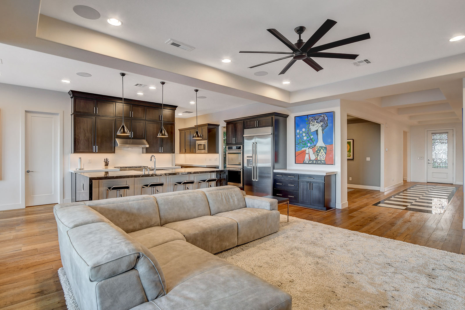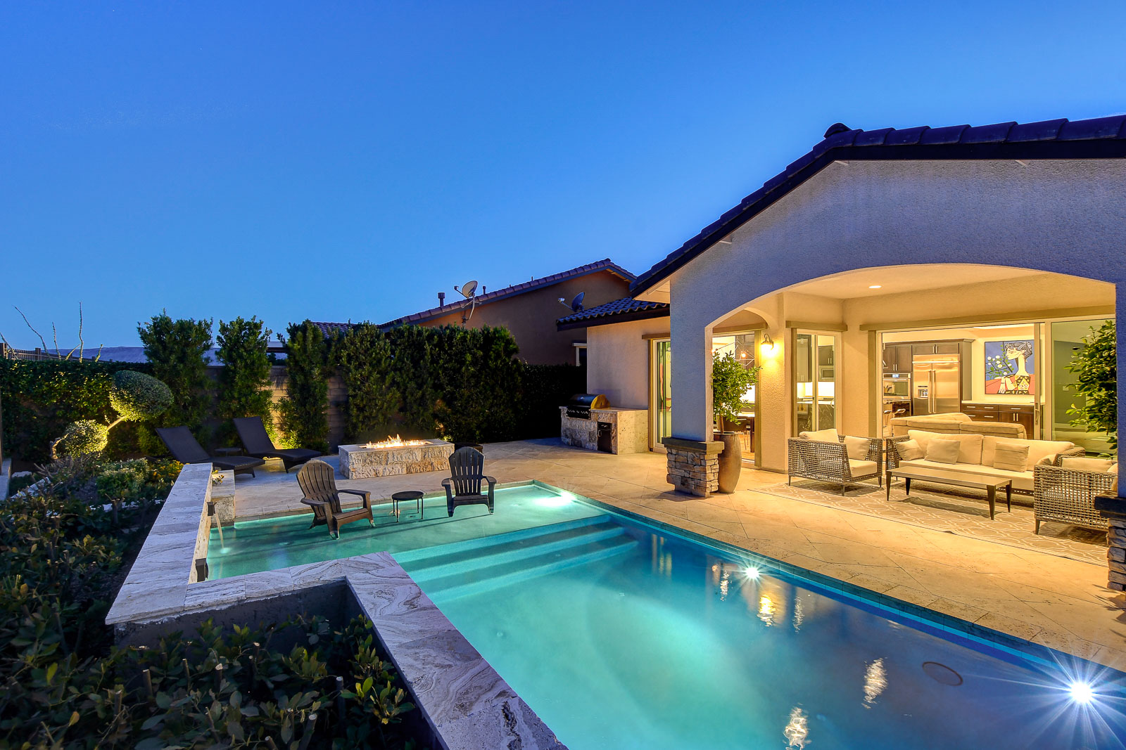With four bedrooms, four baths, and 2863 sq ft. the open architecture ranch, with vaulted ceilings and solid wood custom flooring, includes a great room with large fireplace that opens to a covered portico and pool deck beyond. With fire pit, built-in grill, and infinity spa, you can enjoy nights outdoors no matter the season.