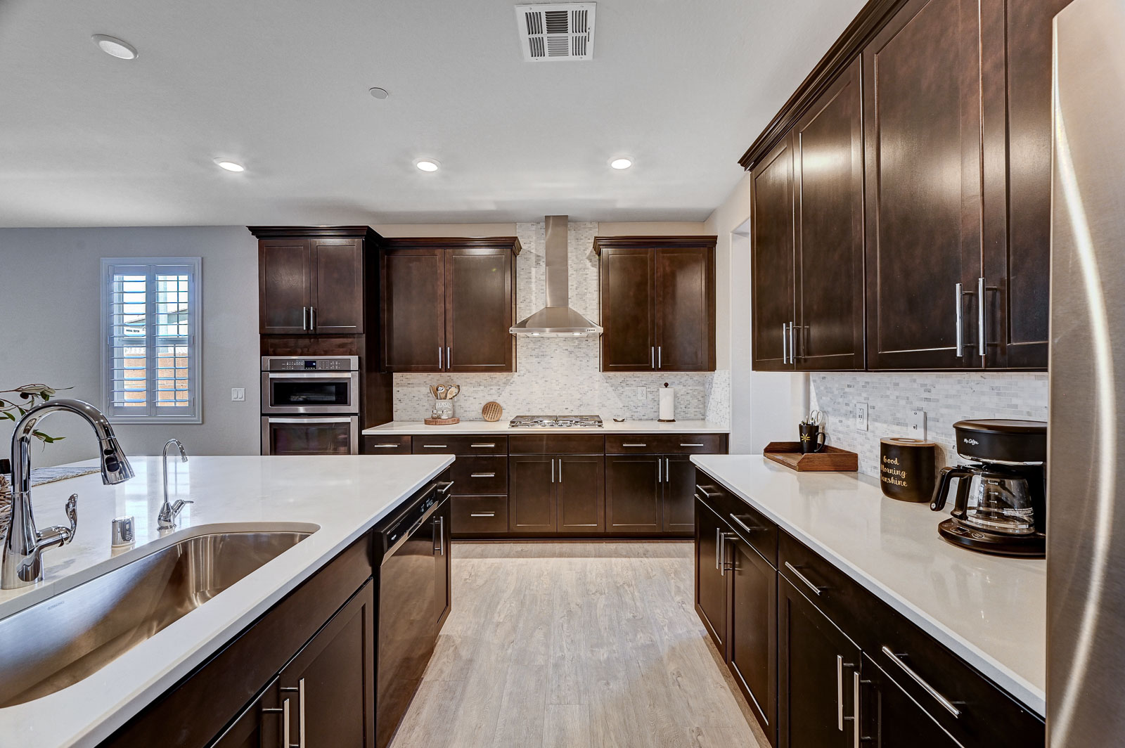 Laminate wood flooring runs throughout with plush carpet in the bedrooms, while white shutters add a polished touch to every window. Relax in the backyard oasis featuring an above-ground hot tub and easy-care landscaping. Located in one of Hendersonās most sought-after communities, enjoy access to parks, trails, pools, and endless events. Single-story homes with this blend of comfort and style are a rare find ā donāt miss your opportunity.