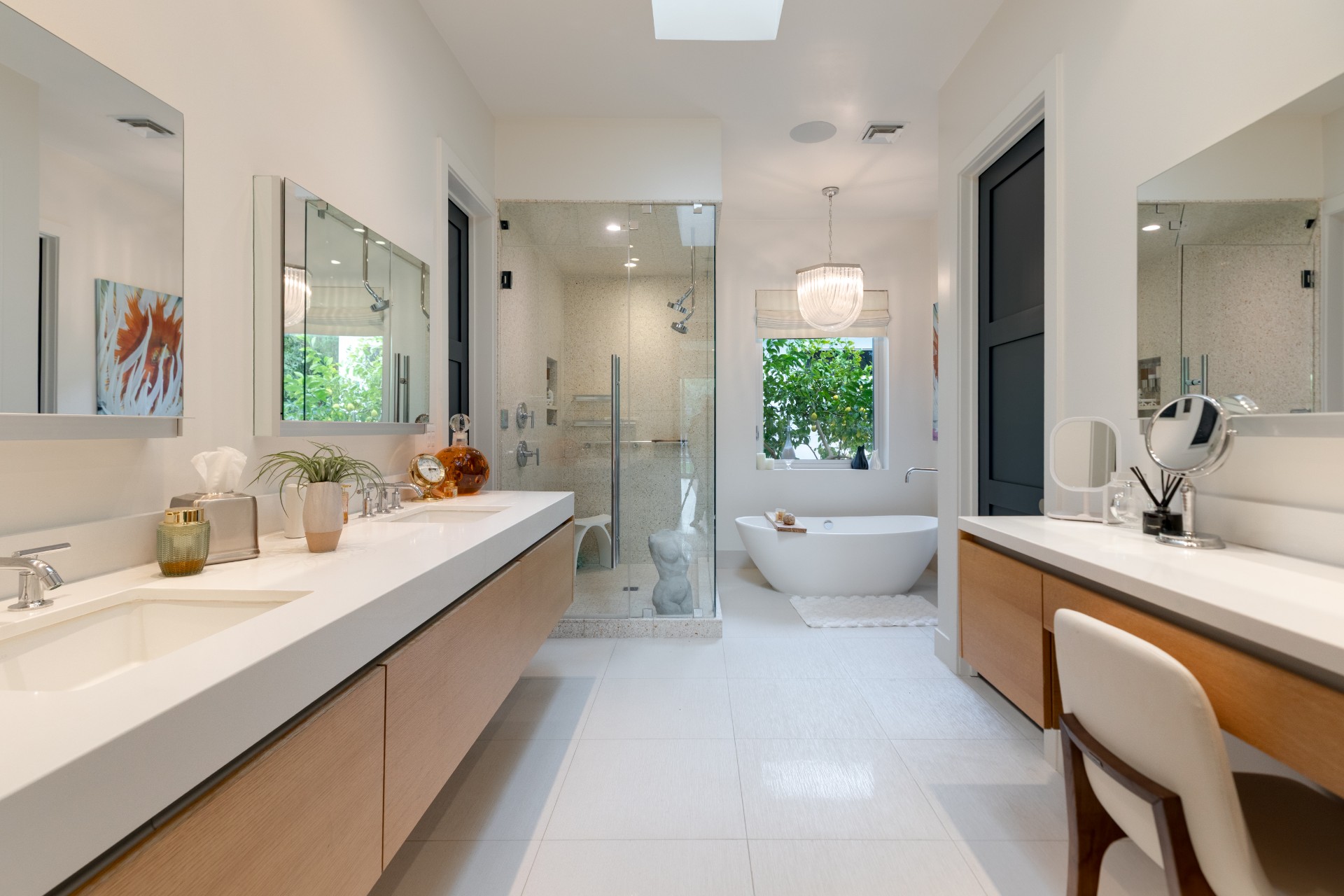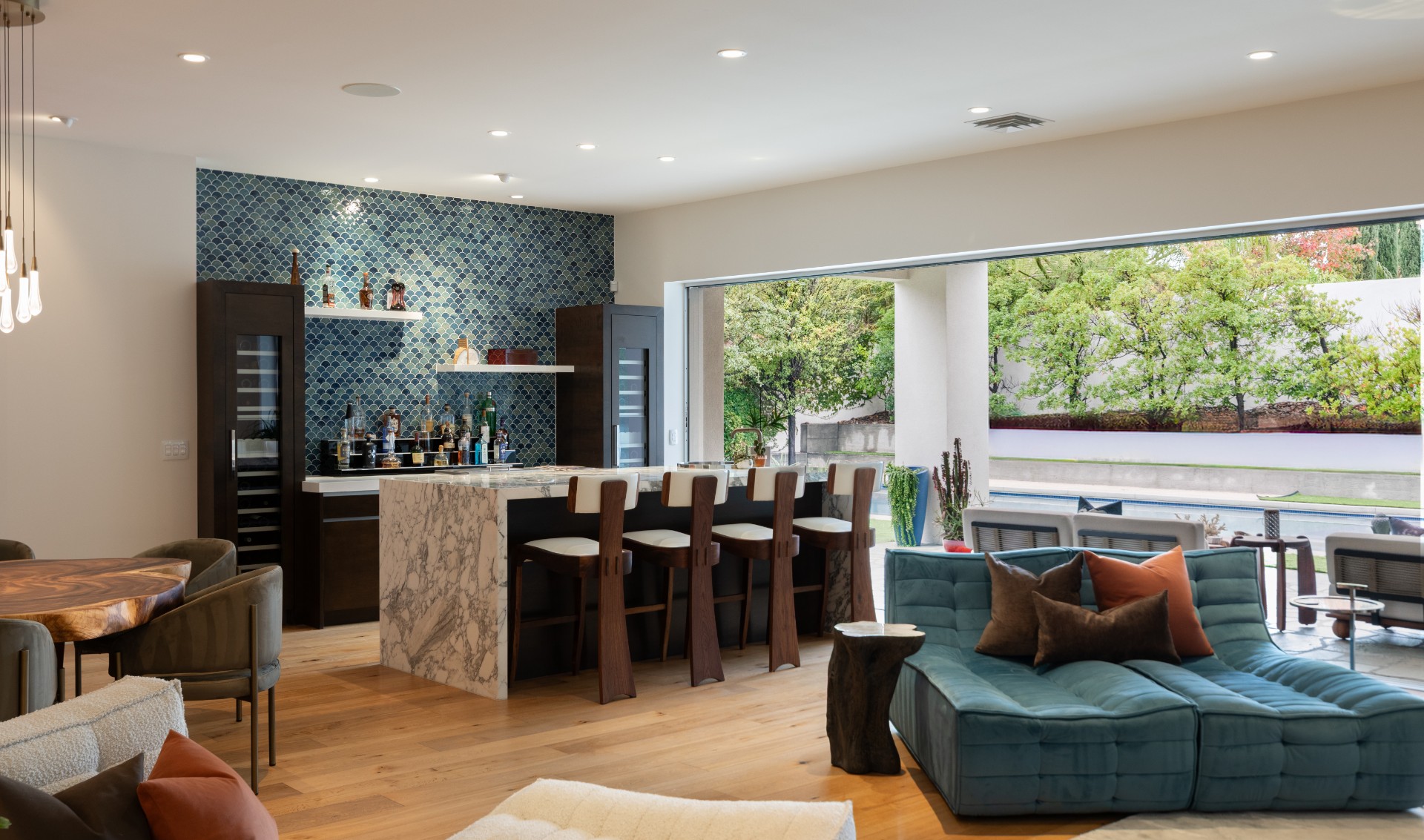The designer kitchen features custom cabinetry, premium appliances, double ovens, a warming drawer, a Sonic ice maker, and an elegant bar. The primary suite includes his-and-hers walk-in closets and a spa-inspired bath separated from the sleeping area by dual doors for privacy, offering dual vanities, a makeup vanity, a steam shower, and a standalone tub beneath a chandelier. A disappearing glass wall opens to a resort-style yard with a pool, tanning ledge, spa, integrated heaters, a fire feature, mature landscaping, and curated art-book pillars by a local artistārefined luxury living at its finest.