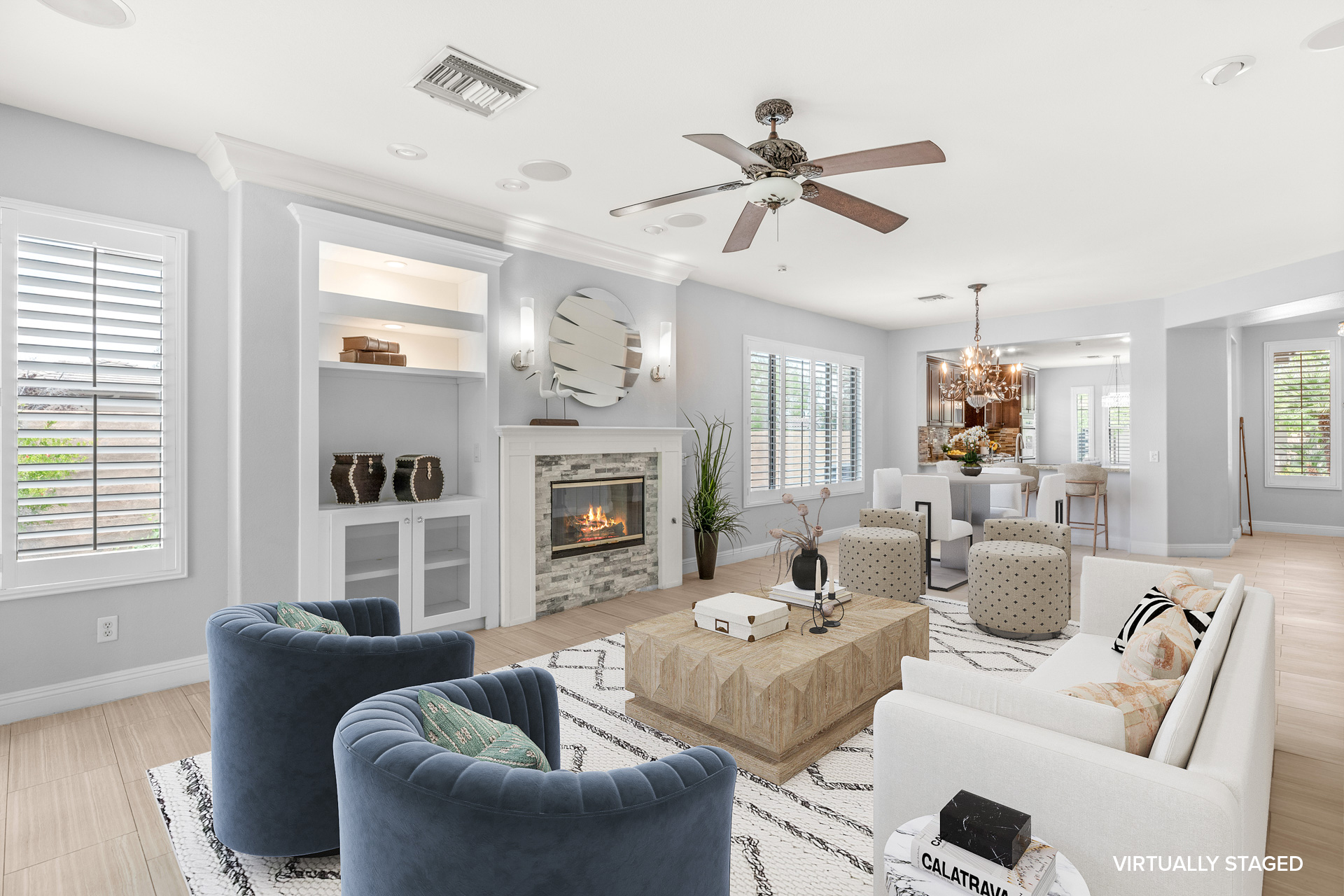 The great floor plan embraces the art of seamless living. Its open layout allows for effortless transitions between the living spaces, creating an inviting ambiance that beckons you to unwind and indulge in the comforts of home. The heart of this residence lies in the kitchen, custom cabinets offer ample storage space, while the granite countertops exude a timeless appeal.. The tiled backsplash adds a touch of artistry, serving as a wonderful backdrop.