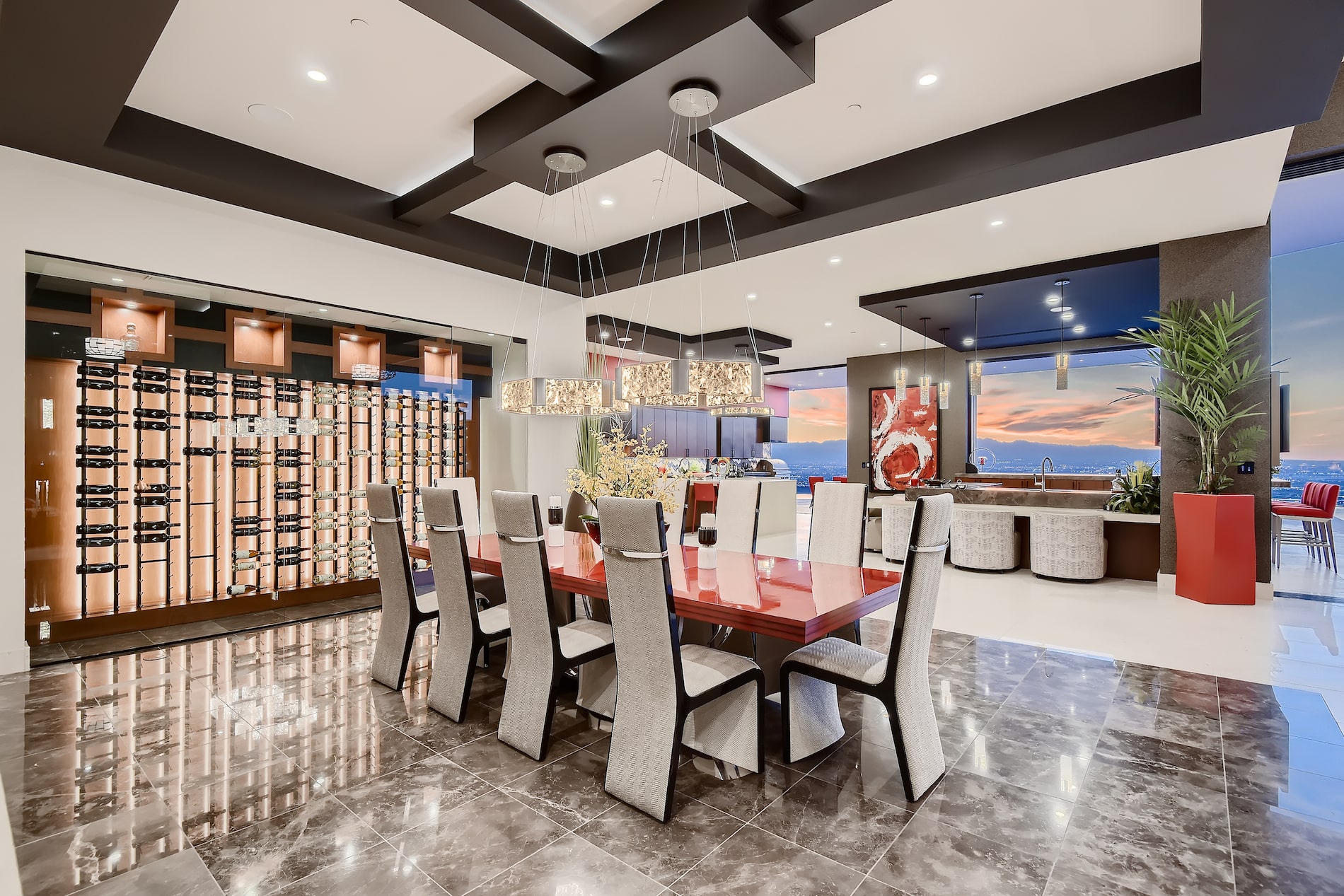 The heart of this sanctuary is the gourmet kitchen, a haven for culinary enthusiasts. Adorned with top-of-the-line appliances and exquisite finishes, it offers a seamless blend of form and function. The adjacent dining area sets the stage for memorable gatherings, where cherished moments are shared in the presence of loved ones. Indulge in the ultimate relaxation as you step out into the backyard oasis. A large infinity edge pool and jacuzzi beckon you to immerse yourself in blissful serenity, while the sprawling patio provides the ideal setting for al fresco entertaining. As daylight gradually transforms into twilight, marvel at the captivating vistas of the Las Vegas strip that unfold before your eyes, casting a spellbinding enchantment upon your soul. ASCAYA, an esteemed community known for its exclusivity and natural splendor, offers an exceptional living environment for discerning residents. Immerse yourself in the tranquility of this sanctuary, where meticulously manicured landscapes and breathtaking views create a backdrop of serenity. The community is replete with world-class amenities, ensuring a life of utmost comfort and convenience. The opportunity to own a home of this caliber in ASCAYA is a rarity. As you enter the realm of 3 Heavens Edge Court, you are presented with an extraordinary chance to become part of an exclusive community that sets the stage for a life of unrivaled luxury. This is a home that goes beyond the boundaries of imagination, offering a symphony of elegance and sophistication that will captivate your senses. Embrace the allure of this architectural gem and embark on a journey where dreams become reality.