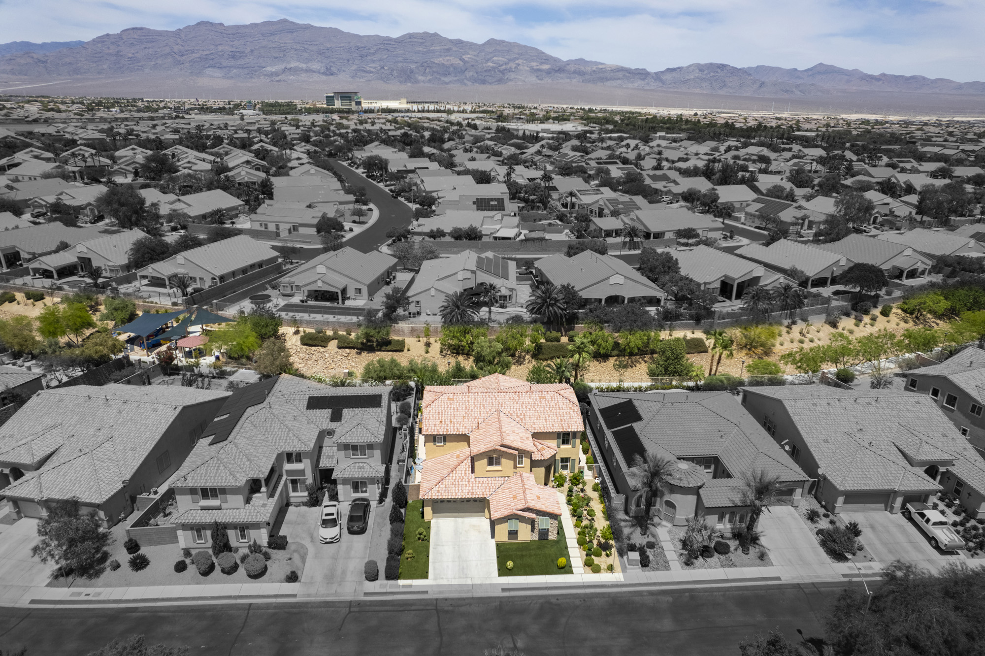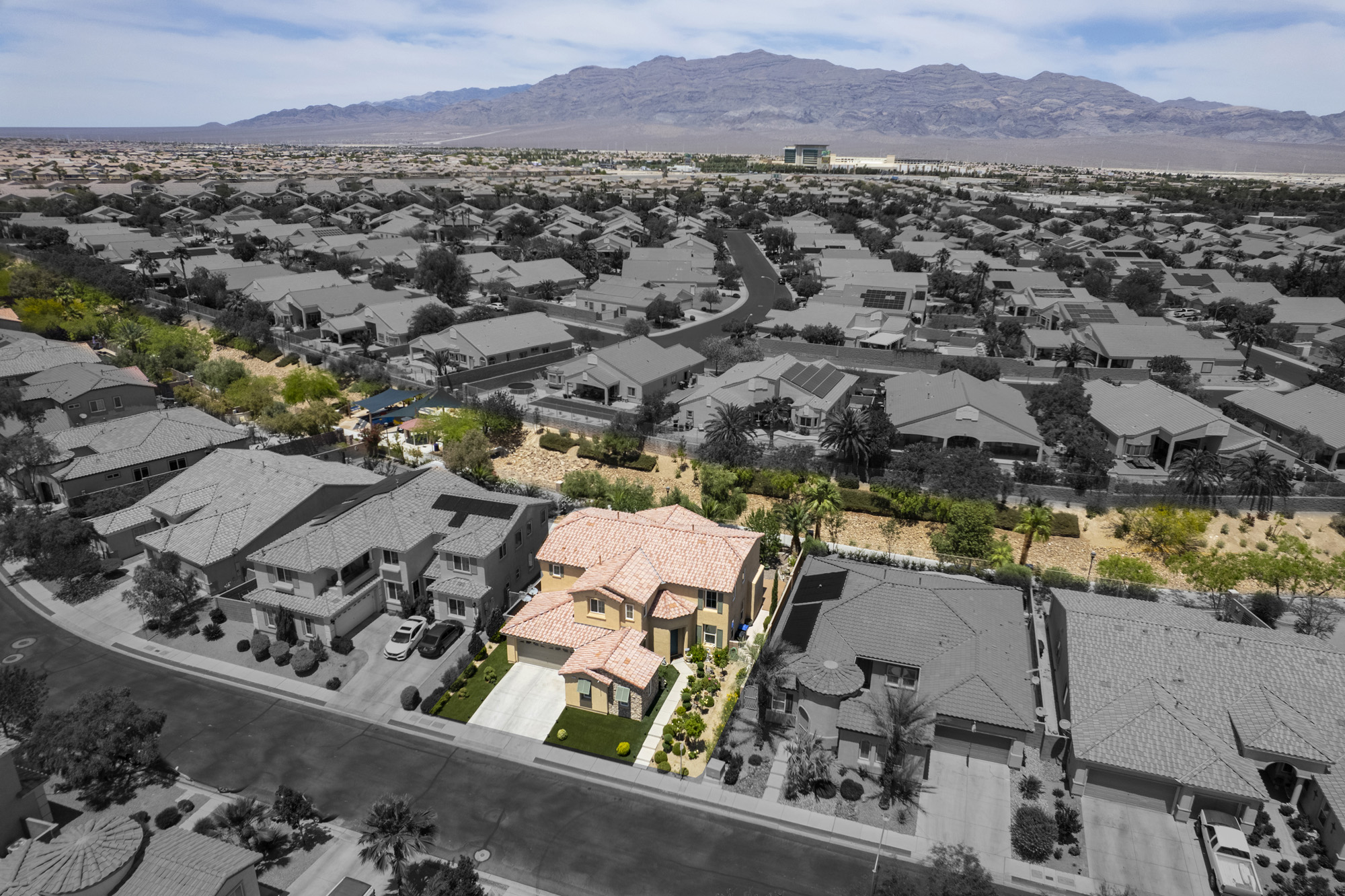 Remarkable, gated 5 bedroom home in the master planned community of Aliante. This property has been meticulously maintained and was recently upgraded inside with all new appliances, granite countertops, and new carpeting.