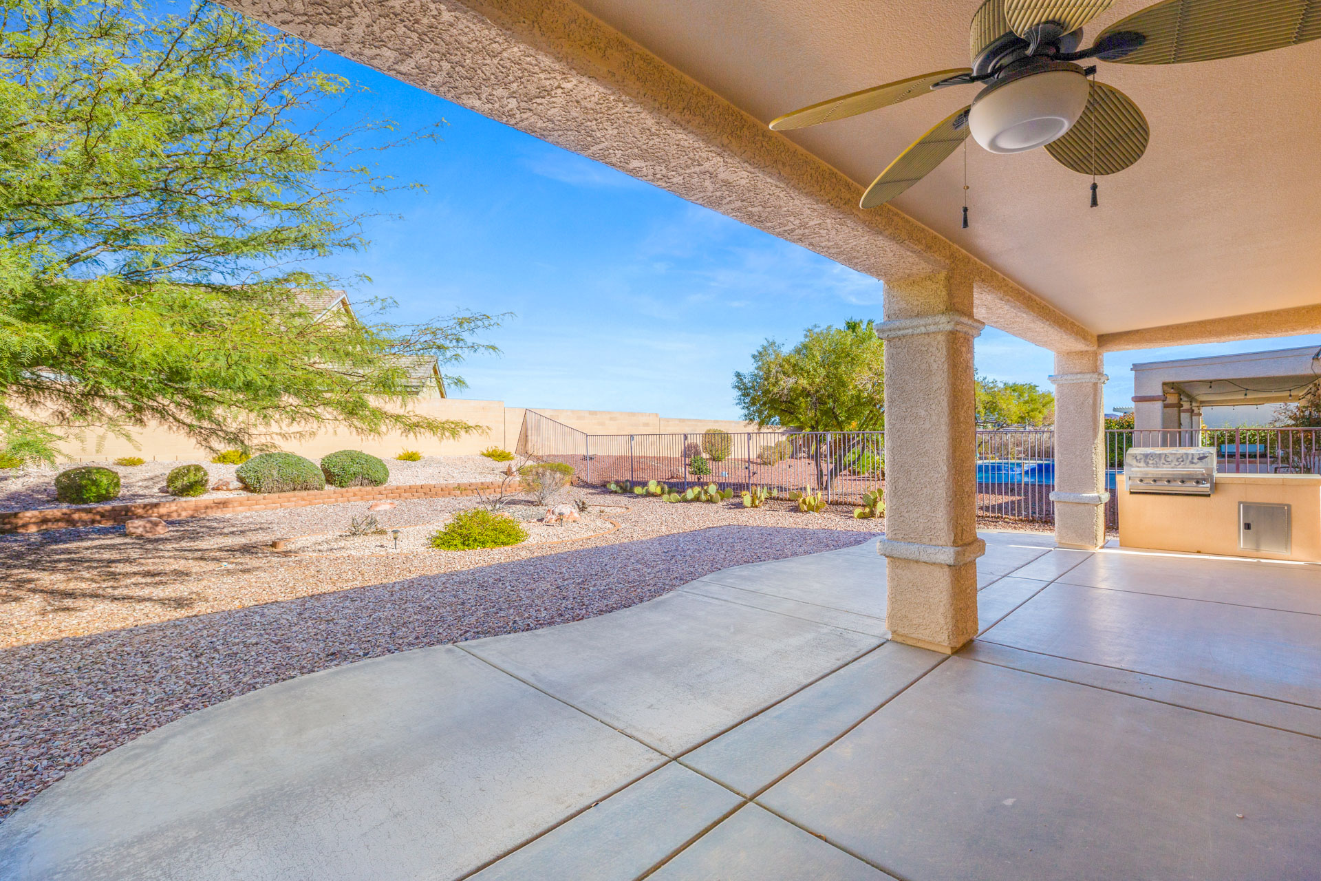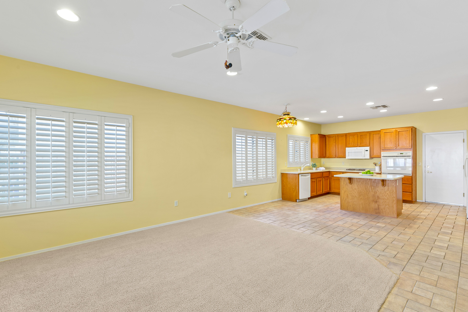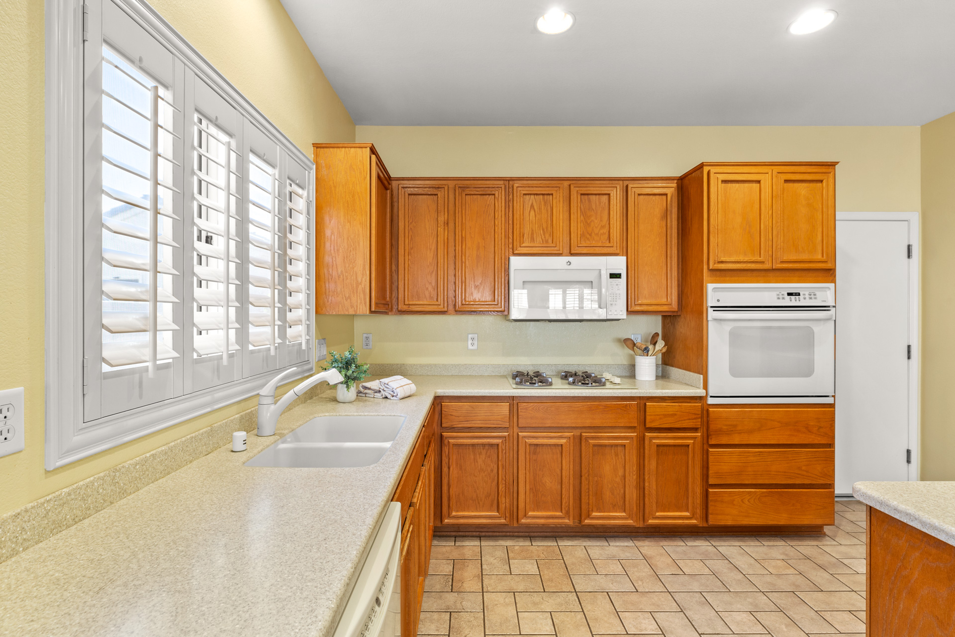Bright kitchen with nook, counter bar seating. Laundry room with sink, window. Lots of storage areas..Shutters throughout. Well maintained backyard with large covered patio area, built-in BBQ.Recently repainted. Situated close to cul-de sac.
