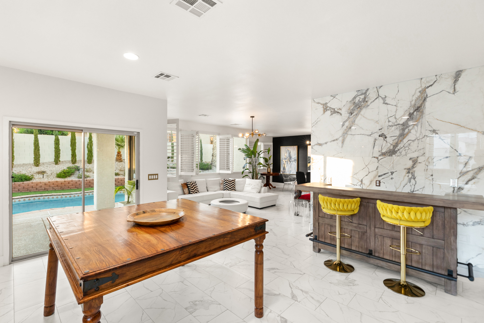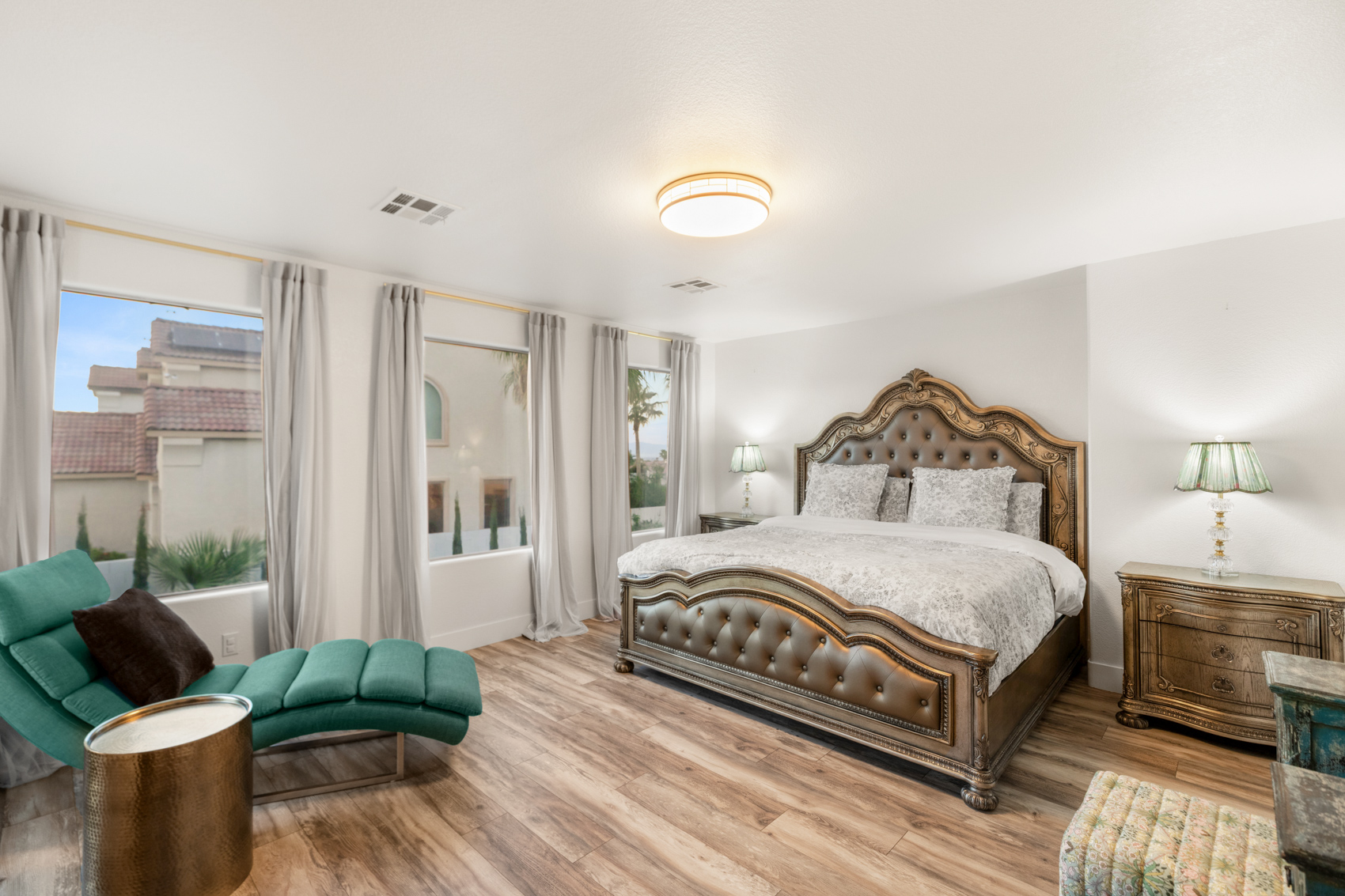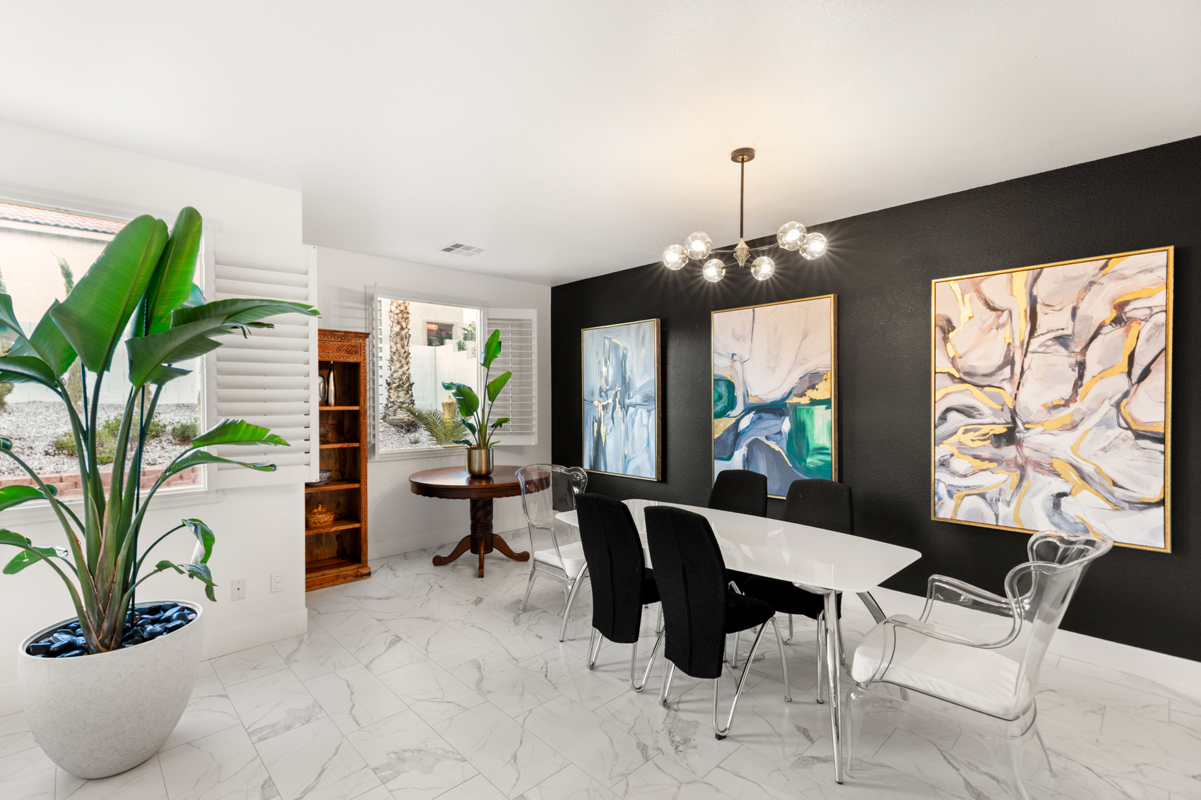 Nestled in a gated enclave in coveted Seven Hills, known for its manicured, tree-lined streets, Serket golf course, and upscale atmosphere. This fully reimagined 5-bedroom home offers 3,098 sqft of refined living with timeless finishes throughout. A spacious floor plan features a grand living room, formal dining room, and private-entry office. New tile flooring flows into upgraded kitchen with custom cabinetry, appliances, and sleek countertops.