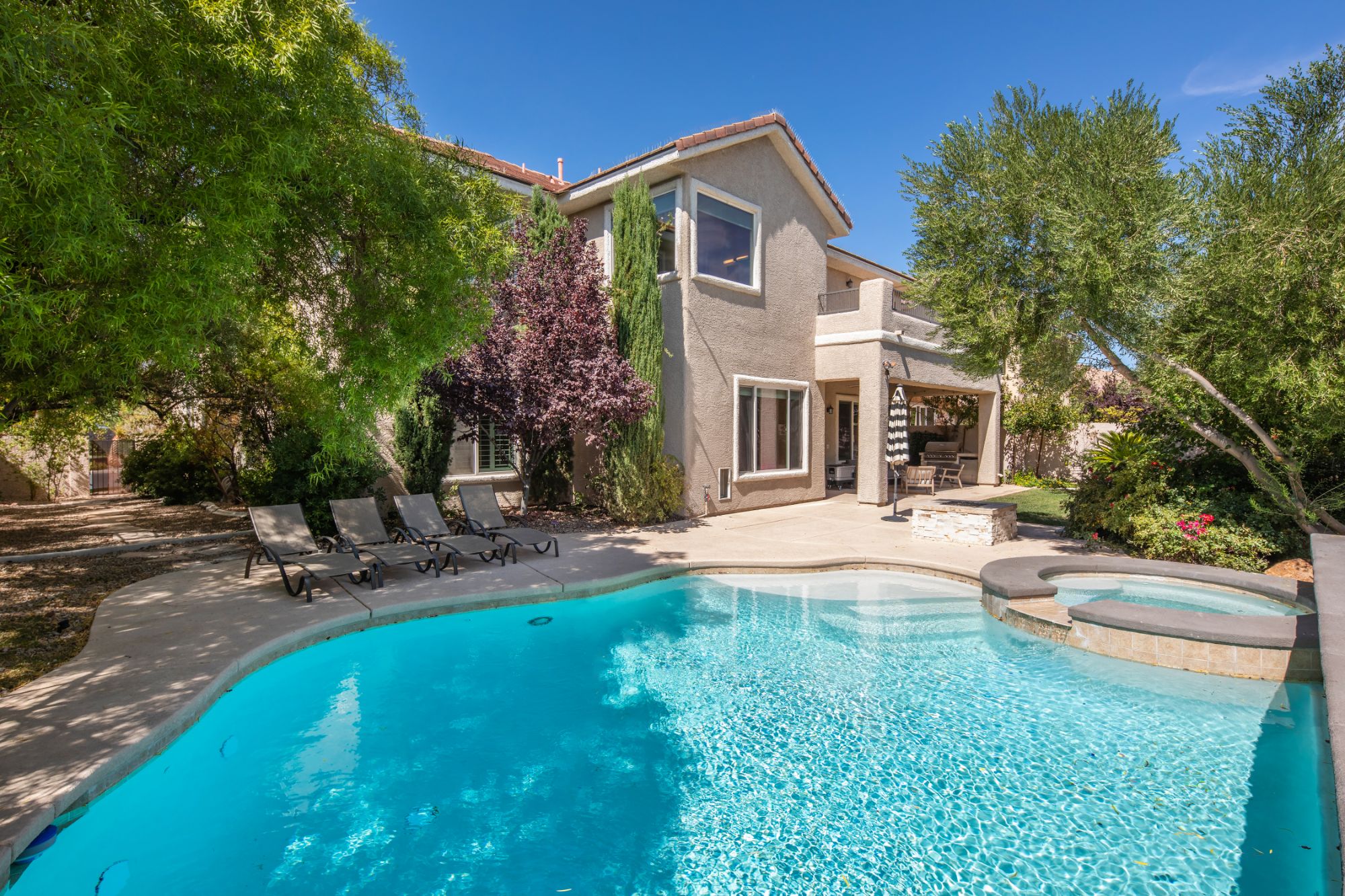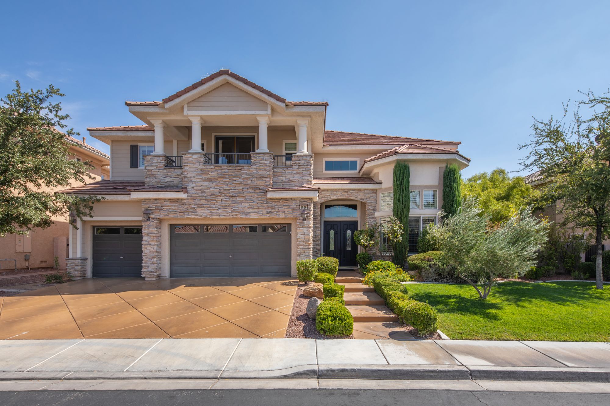 Located just minutes away from Downtown Summerlin, this 4,600 sqft, 5 bed, 5 bath home has it all. From the warmth of the front entrance and the charm of the upper-story balcony, to the double doored entrance and manicured lawn, this home is immaculate inside and out.
