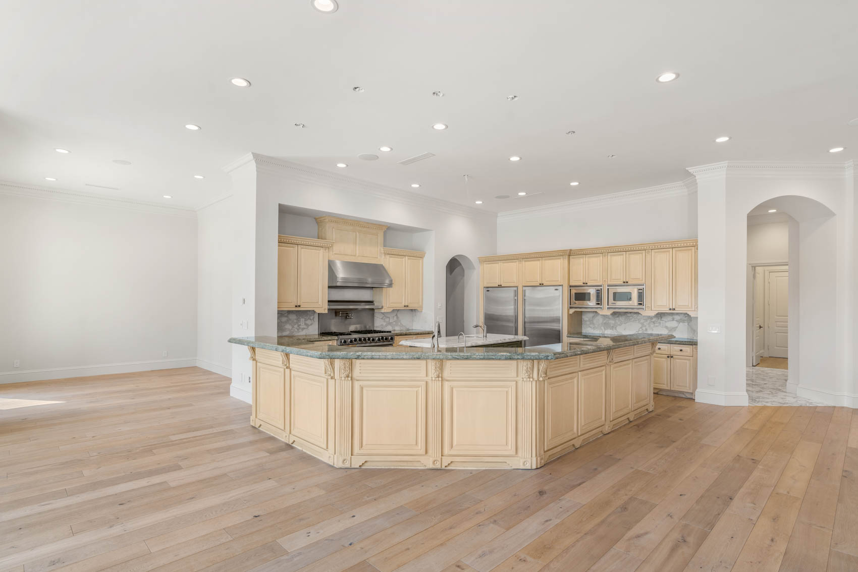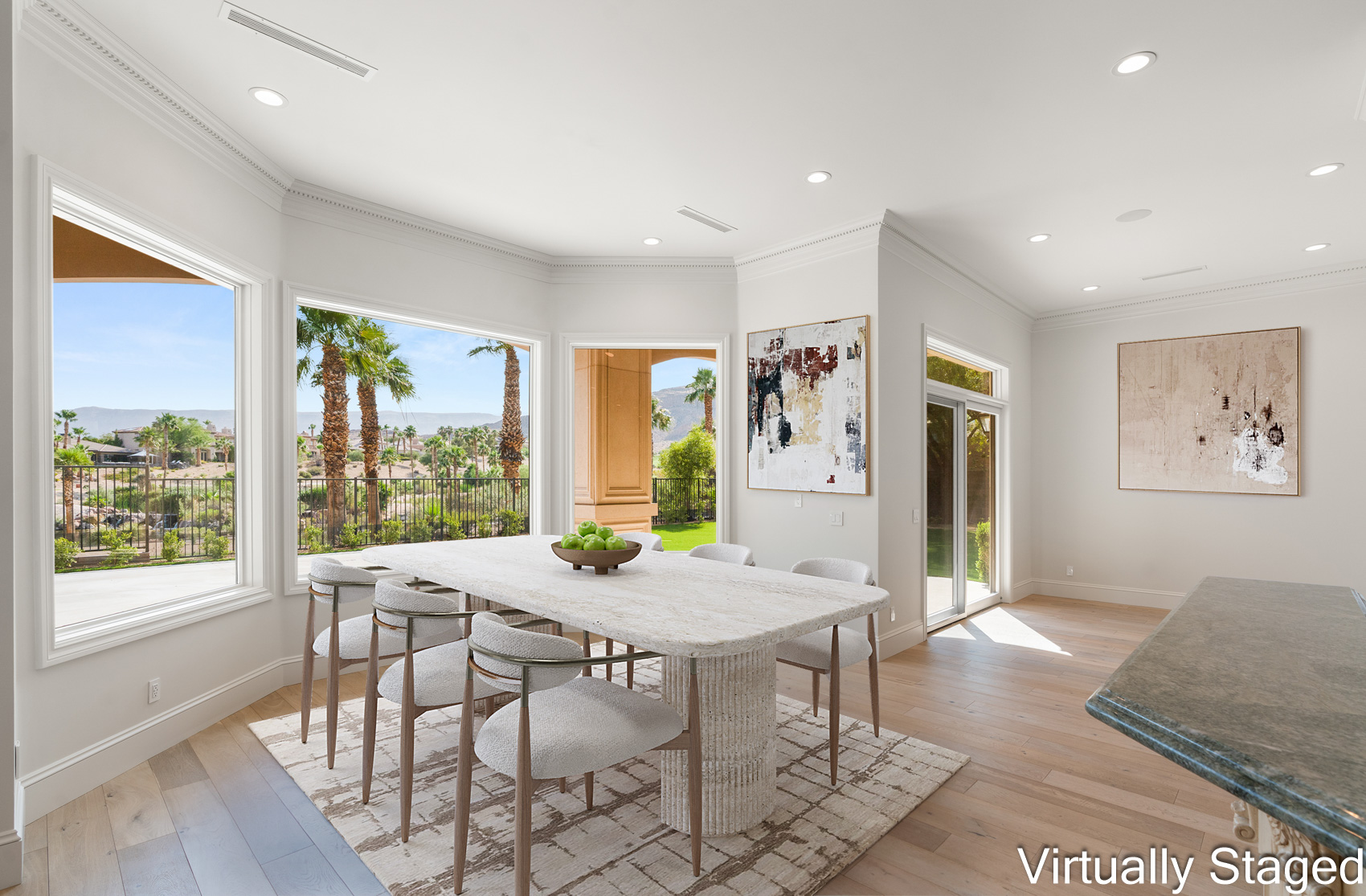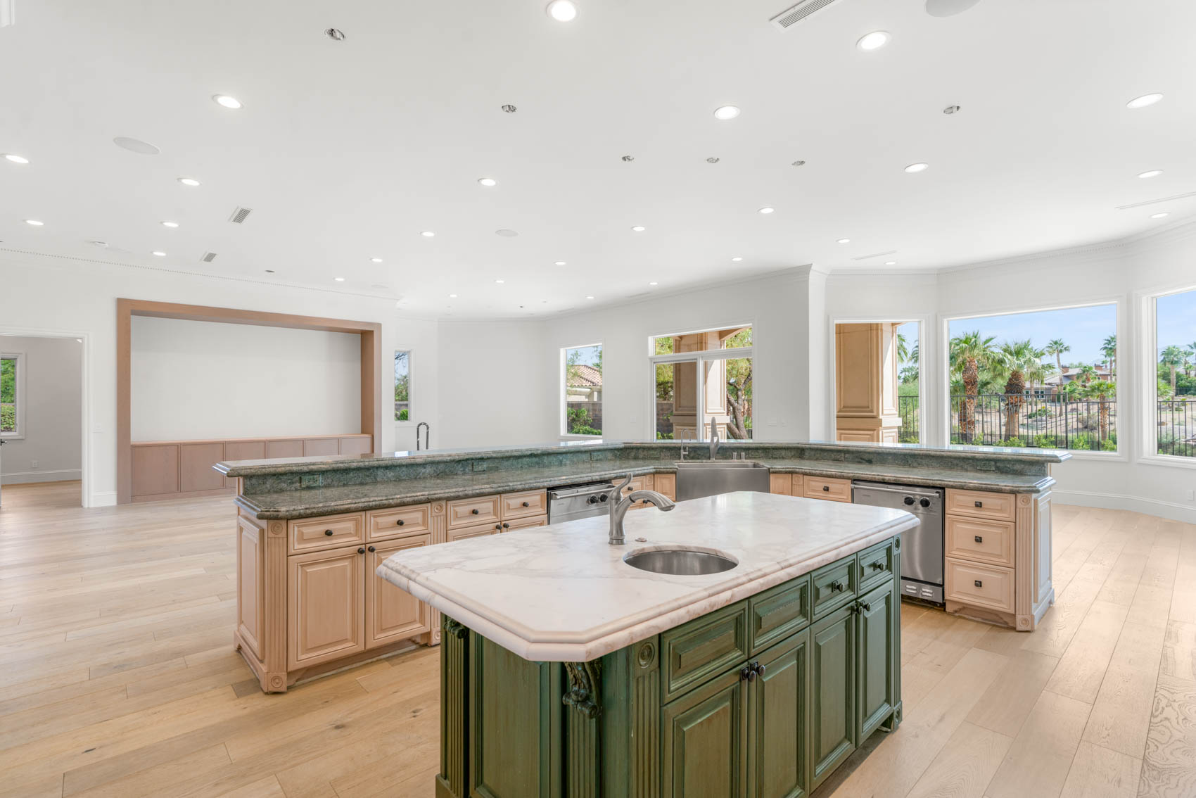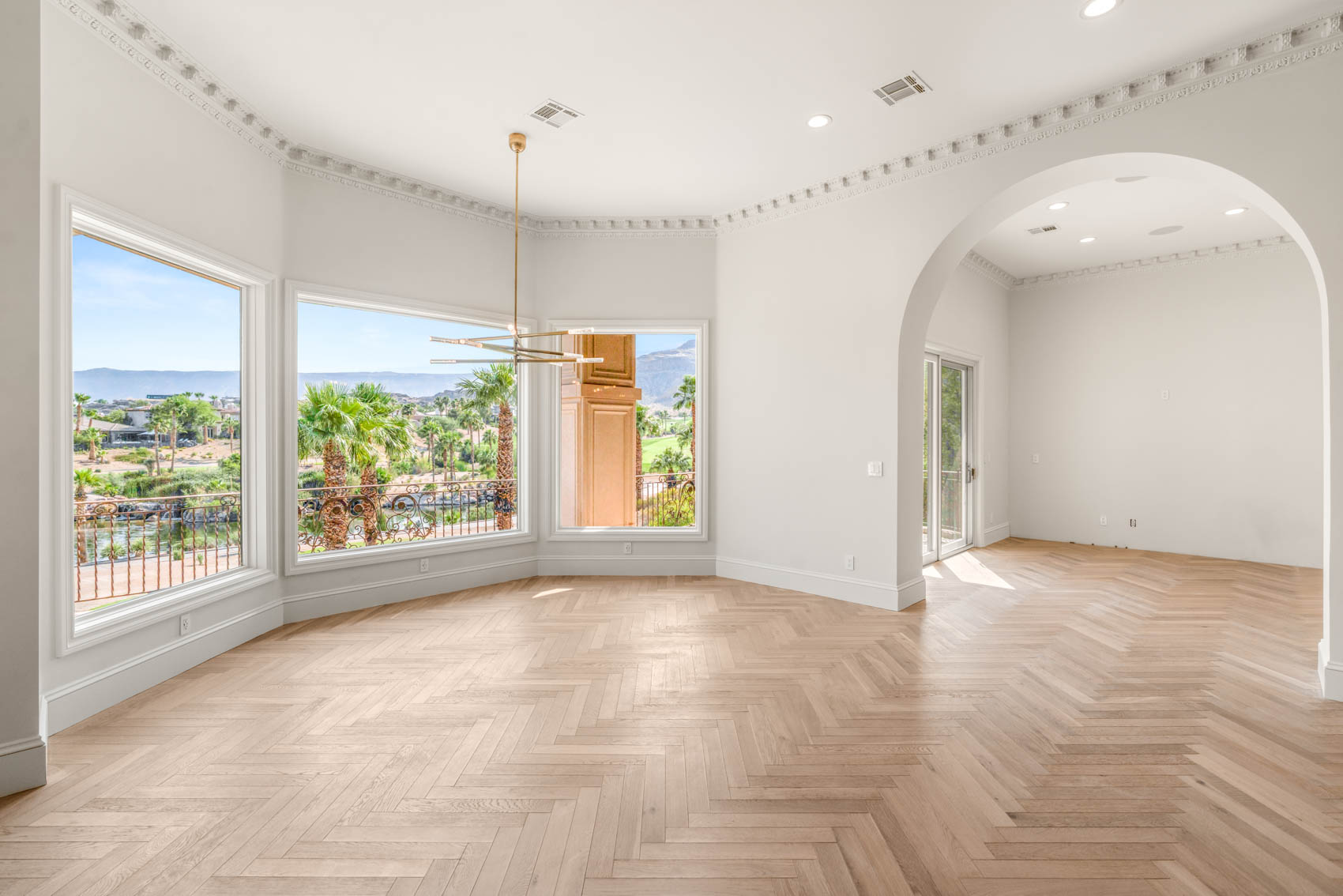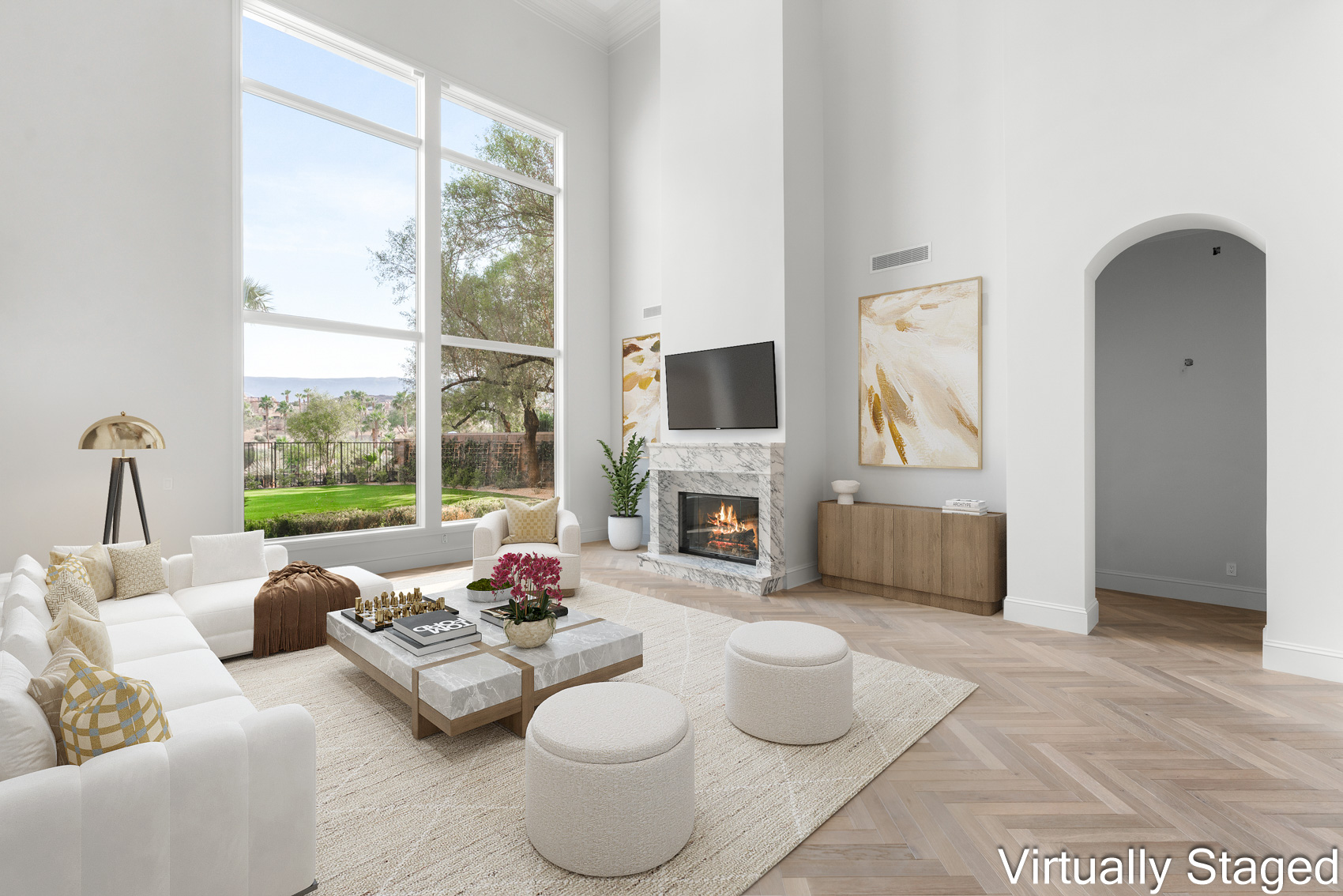 From the moment you enter, you're met with soaring ceilings and walls of glass that flood the home with natural light. The elevated setting captures panoramic views of the surrounding mountains and a tranquil water feature at the lush golf courseācreating an ever-changing backdrop visible from nearly every room. The owners spared no expense in refining the interiors. All structural pillars in the main living space were removed to create a dramatic, open flow, requiring the installation of a custom structural beam extending to the roofline.