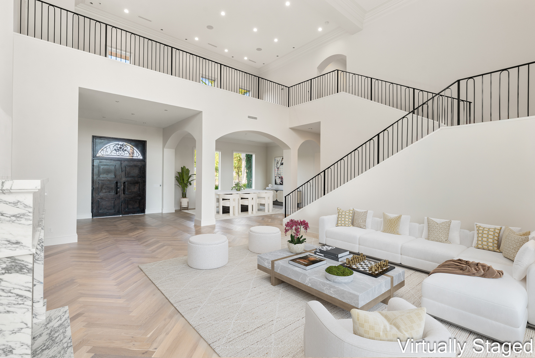 Perched on a premier lot behind the guard gates of prestigious Red Rock Country Club 3093 Red Arrow Drive is a reimagined two-story custom estate offering an exceptional blend of modern luxury, craftsmanship and breathtaking views. With 8,724 square feet of interior space including 5 bedrooms, an office, den, 6 bathrooms and a 4-car garage, this home has been meticulously renovated to the highest standard, showcasing level 5 designer finishes and one-of-a-kind upgrades throughout.