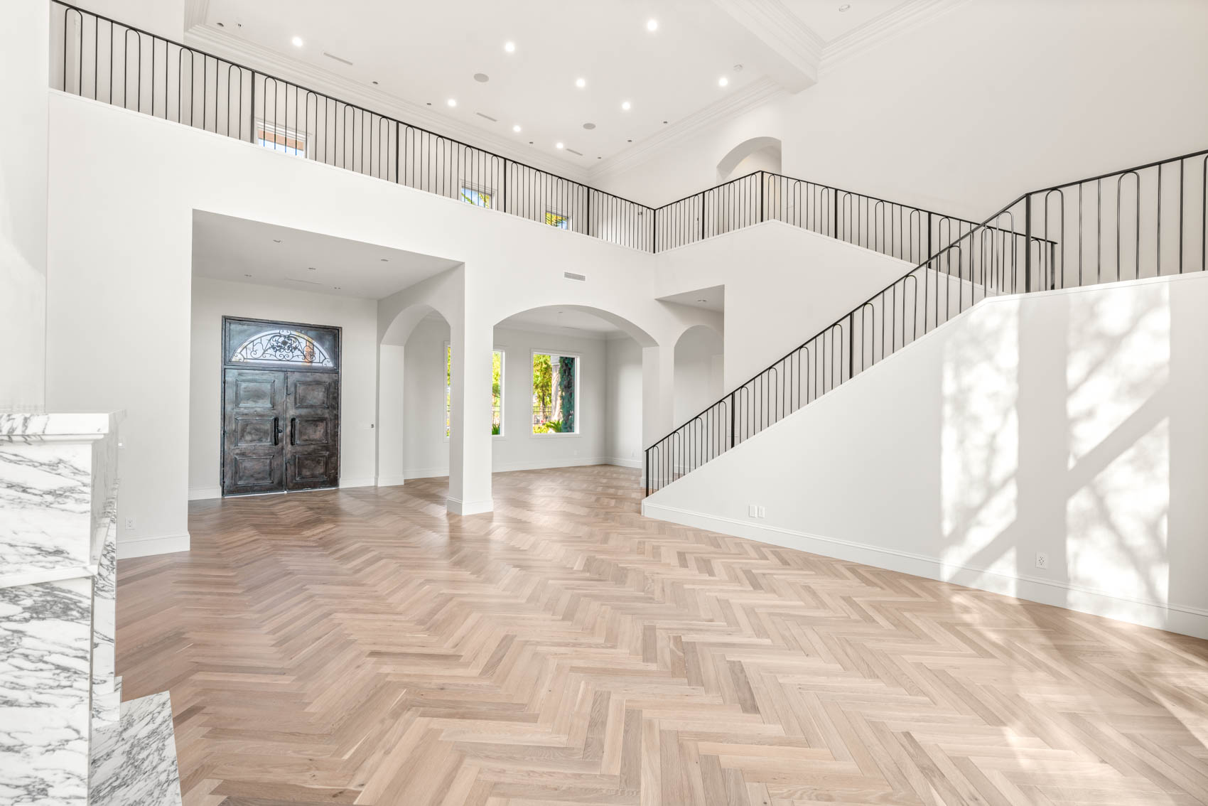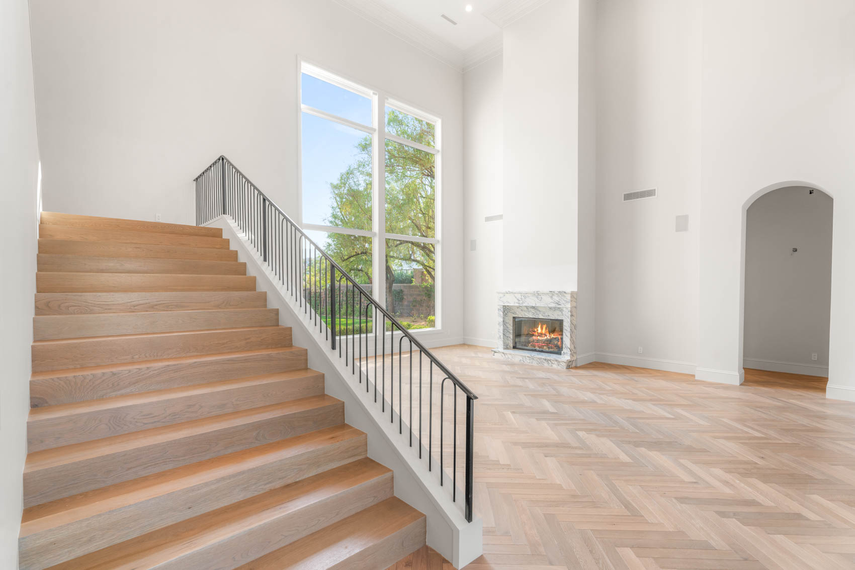 The flooring is a striking Canadian white oak herringbone, complemented by custom maple baseboards and designer paint for a clean, sophisticated aesthetic. The staircase has custom white oak box stair treads with a designer transitional railing. The kitchen is a chef's dream outfitted with professional stainless steel appliances, double fridges, two ovens and dishwashers. The eat-in counter allows for gatherings and the oversized island is a perfect space for hosting. The bathrooms are appointed with custom white oak cabinetry and features stunning Arabescato Corchia marble vanities with vessel sinks and Kelly Wearstler lighting. The upper-level bathrooms include smart toilets, and the primary suite has been fully updated to reflect modern luxury and function. The primary bathroom has a spa-like feel with limestone flooring, a fluted marble fireplace wall, his and her vanities, built-in soaking tub and a spacious walk-in shower. LED lighting fixtures have been installed throughout the home to enhance ambiance and energy efficiency. Outdoor living is equally elevated. The pool has been completely upgraded with pebble tech, stone coping, designer tiles and a Pentair Intellicenter control center.The yard was redesigned with all-new turf for a lush, low-maintenance finish. A new sport court pad adds a fun and functional touch for active lifestyles. Entertain effortlessly with integrated new speakers throughout the home and patio areas. Even the exterior has been thoughtfully refreshedācorbels and balustrades have been resurfaced with a new EIFS finish for a crisp, contemporary look. In the garage, custom storage solutions have been added to maximize space and organization. Located in the heart of Summerlin, Red Rock Country Club is one of Las Vegasā most coveted private communities, offering 24/7 guard-gated security, a world-class golf course, fitness center, clubhouse, tennis courts, and serene walking pathsāall set against the backdrop of the stunning Red Rock Canyon. Homes of this caliber on the desirable street of Red Arrow with this level of finishārarely come to market. 3093 Red Arrow Drive is more than a home; itās a statement of refined living in one of the city's most exclusive enclaves. Don't miss the opportunity to experience desert luxury at its finest.