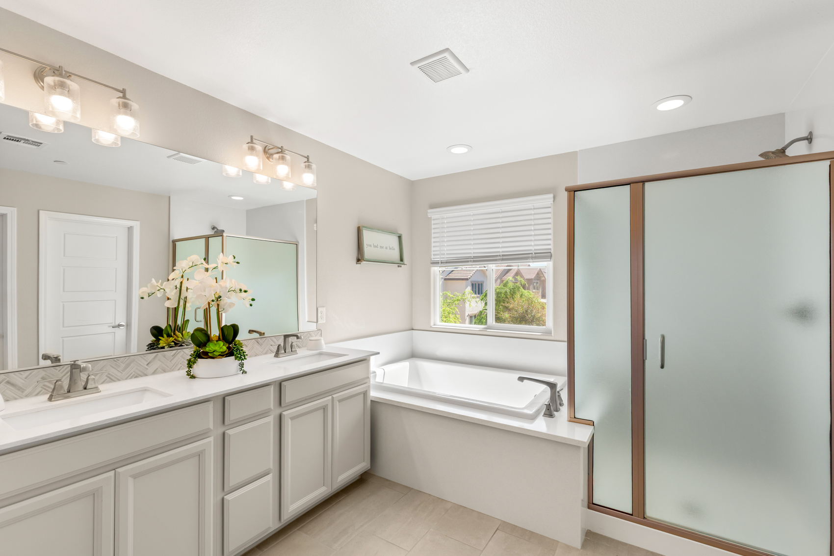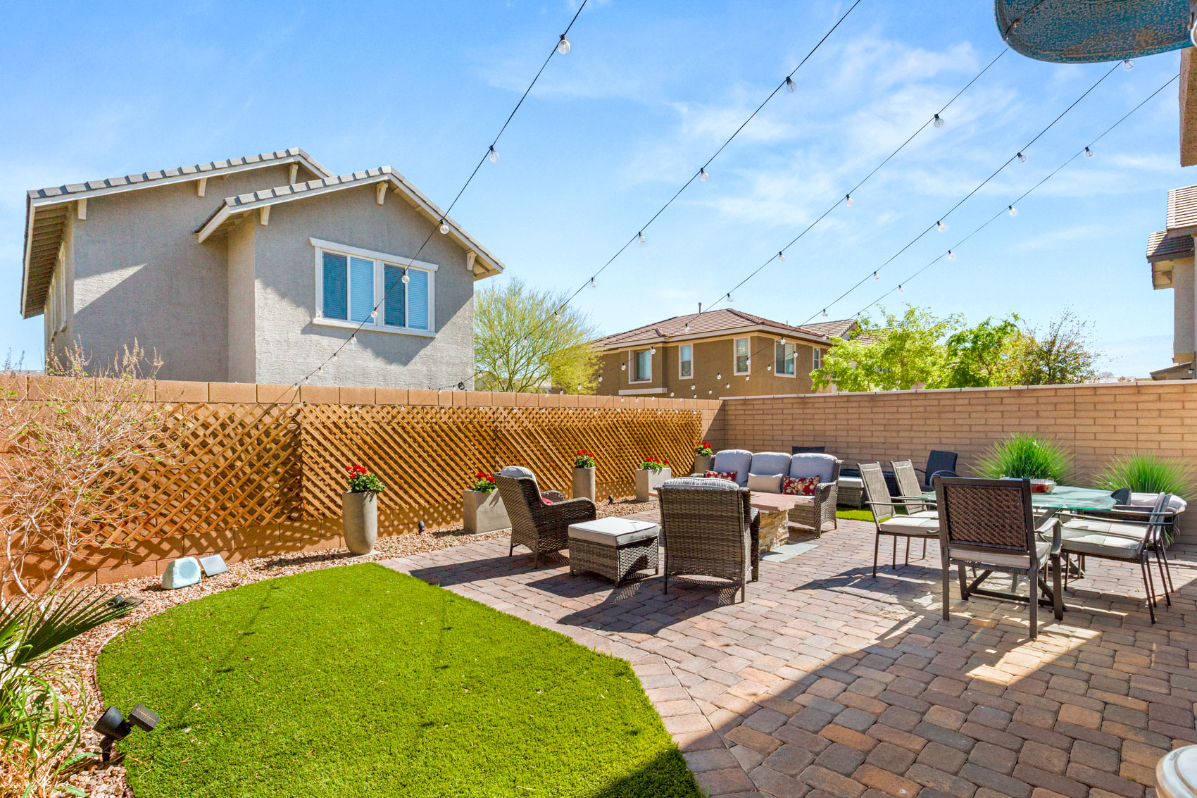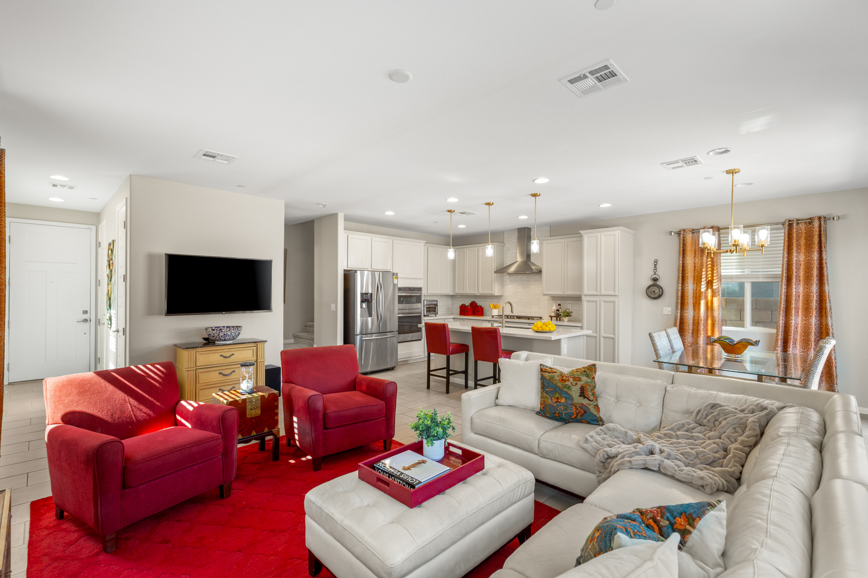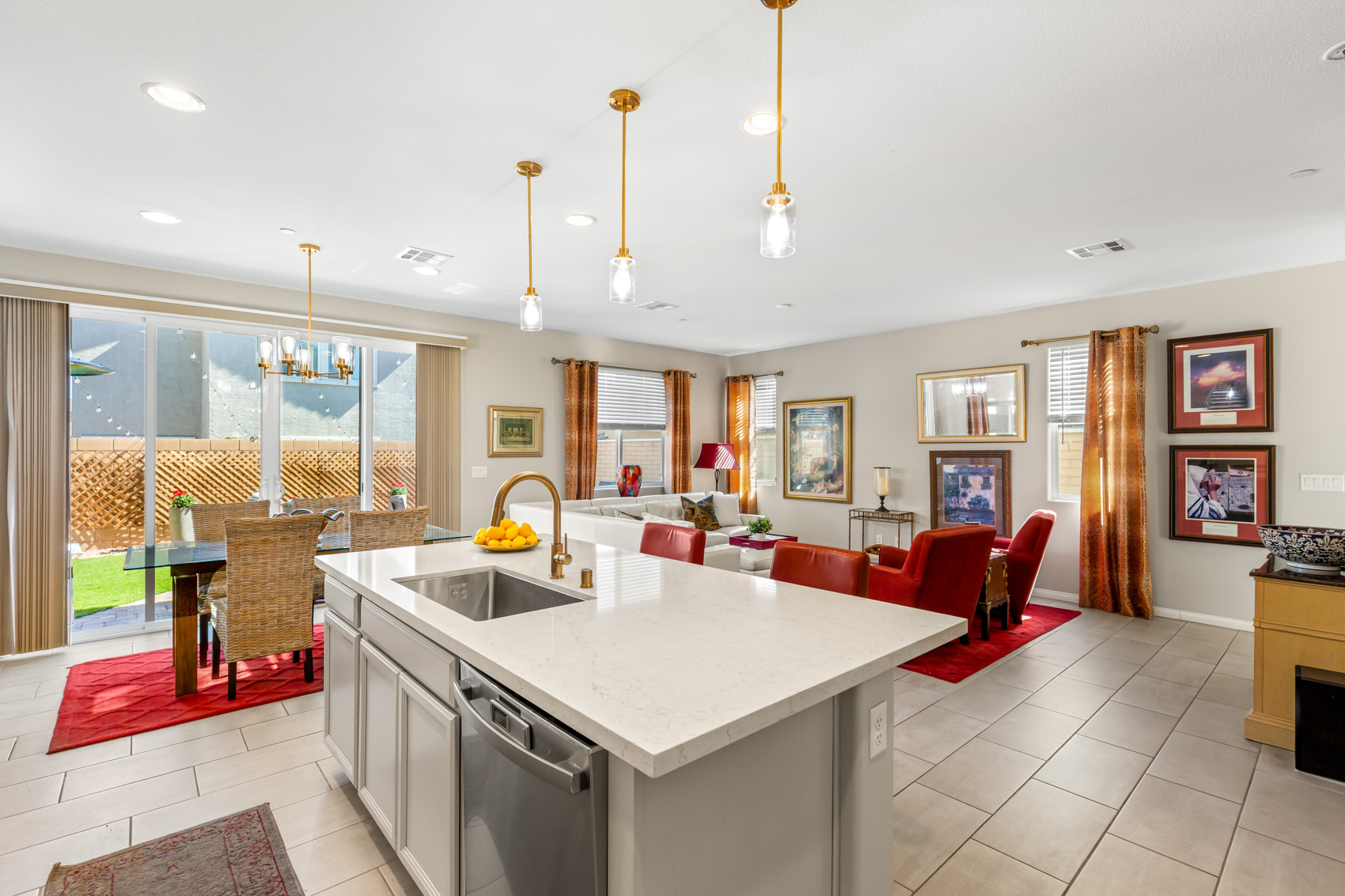 Located in the desirable Cadence neighborhood, this modern two-story single-family home offers 3 beds and 2.5 bathrooms. The home includes a spacious open-concept design with an abundance of natural light. The kitchen has quartz countertops, a glass stone backsplash, and stainless steel appliances. The main level features a welcoming family room and dining room with sliders to a charming outside patio.