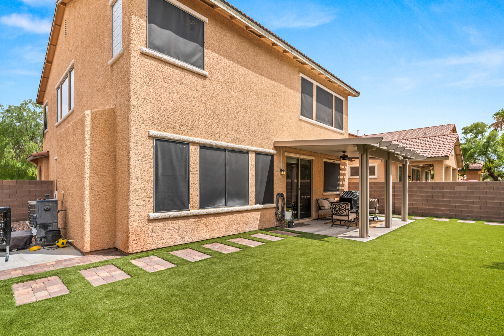 Perfect for outdoor enthusiasts, it features nearby walking trails and a private backyard with a covered patio, ideal for relaxing or entertaining. Discover comfort and luxury in one of Summerlin's most desirable neighborhoods.