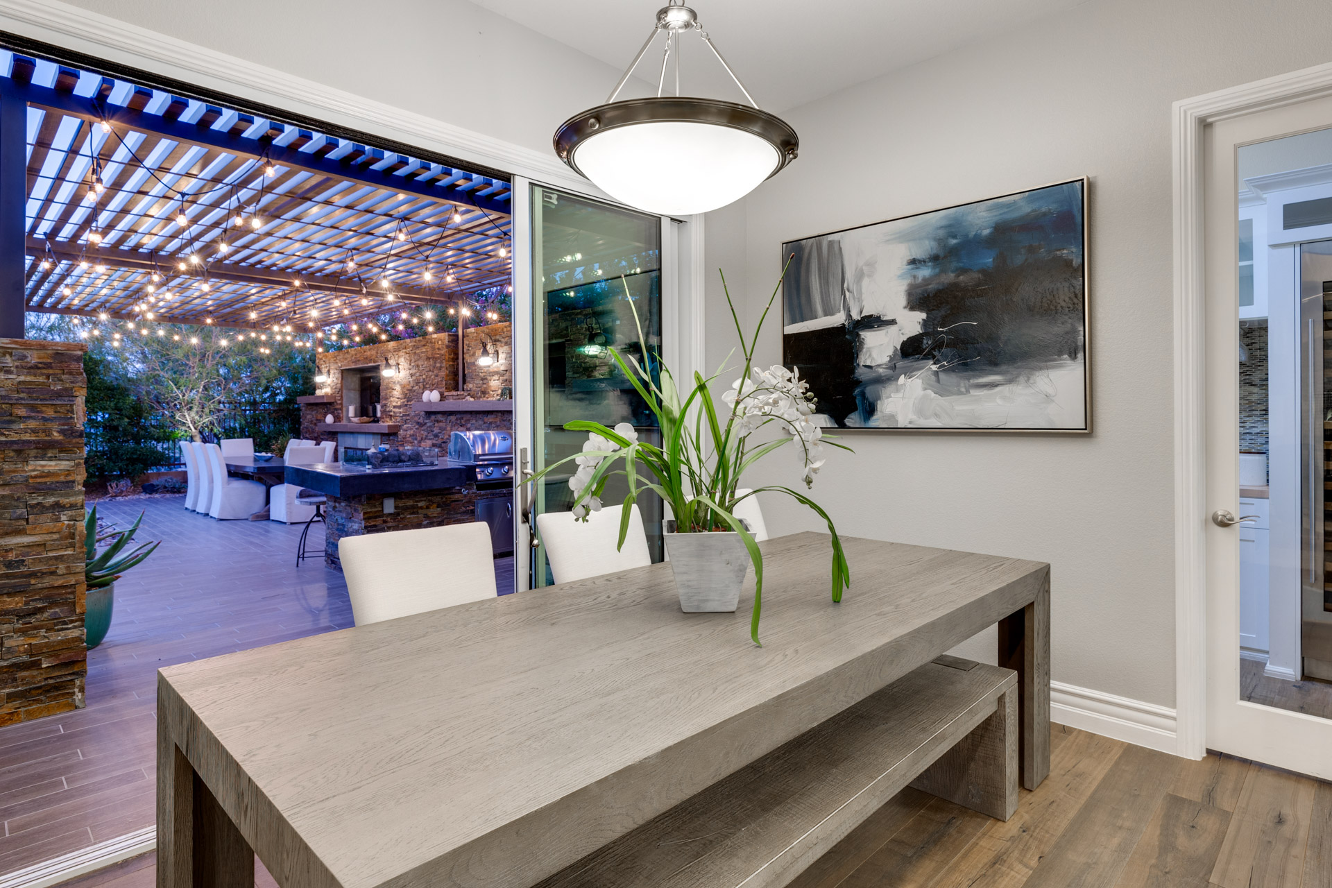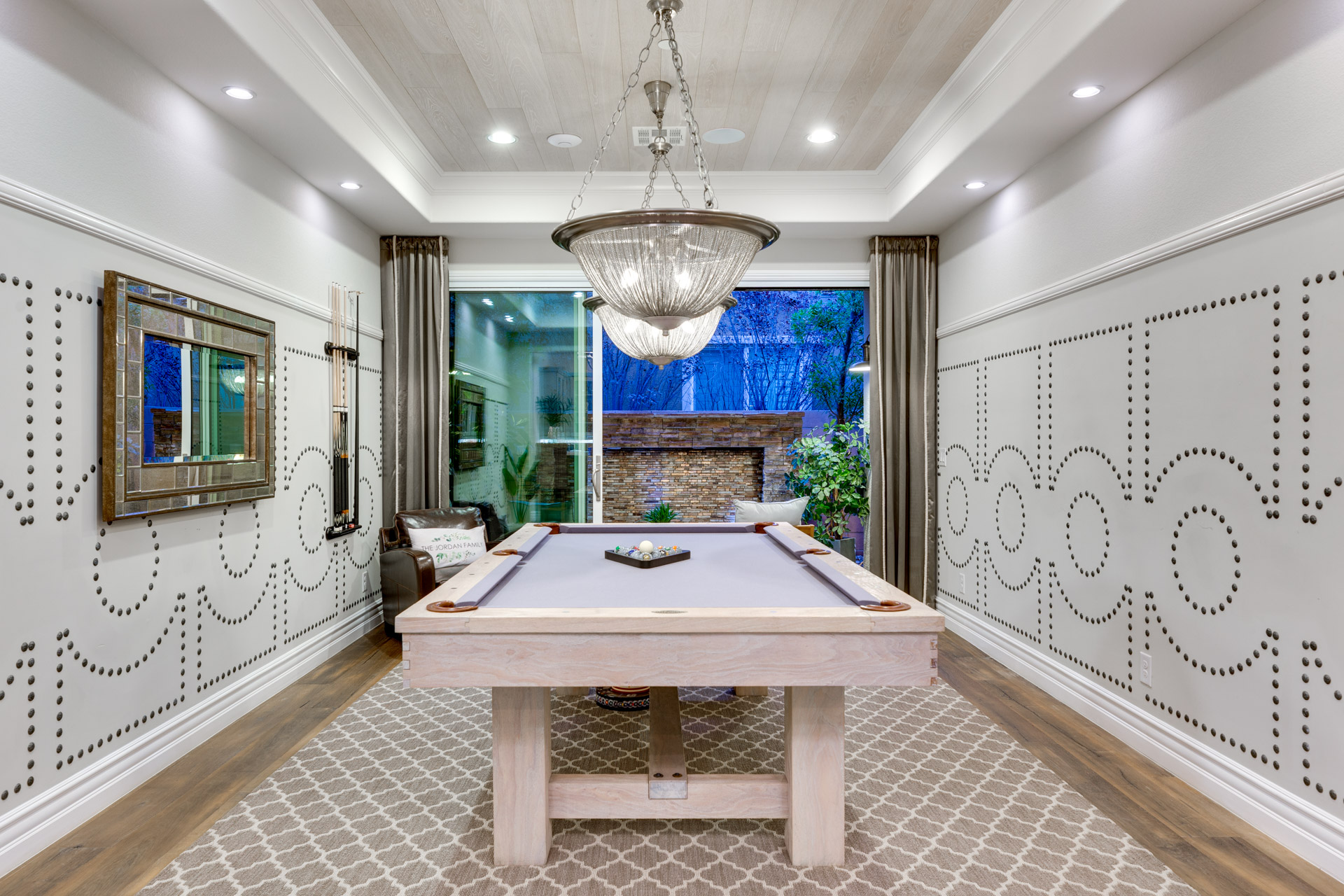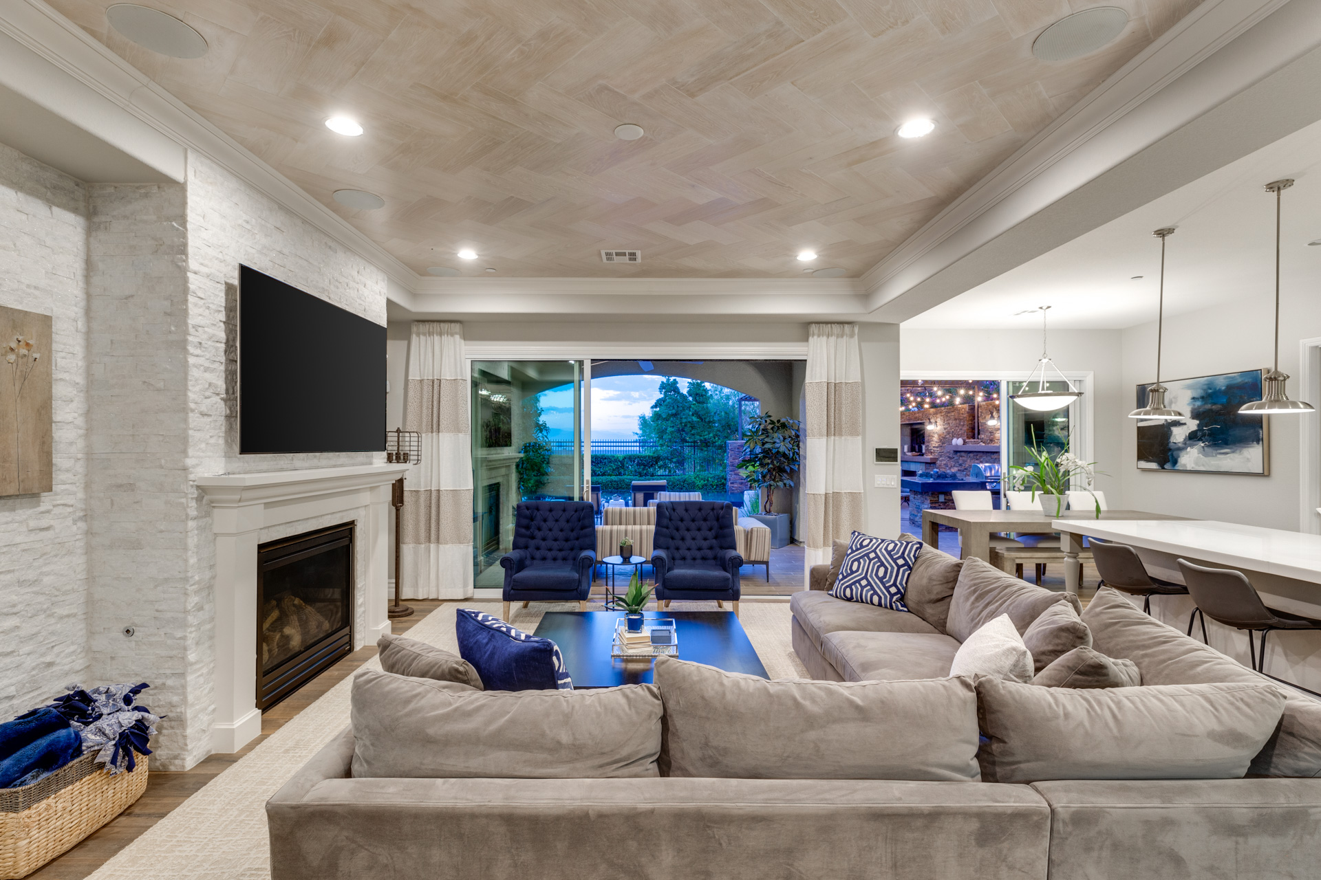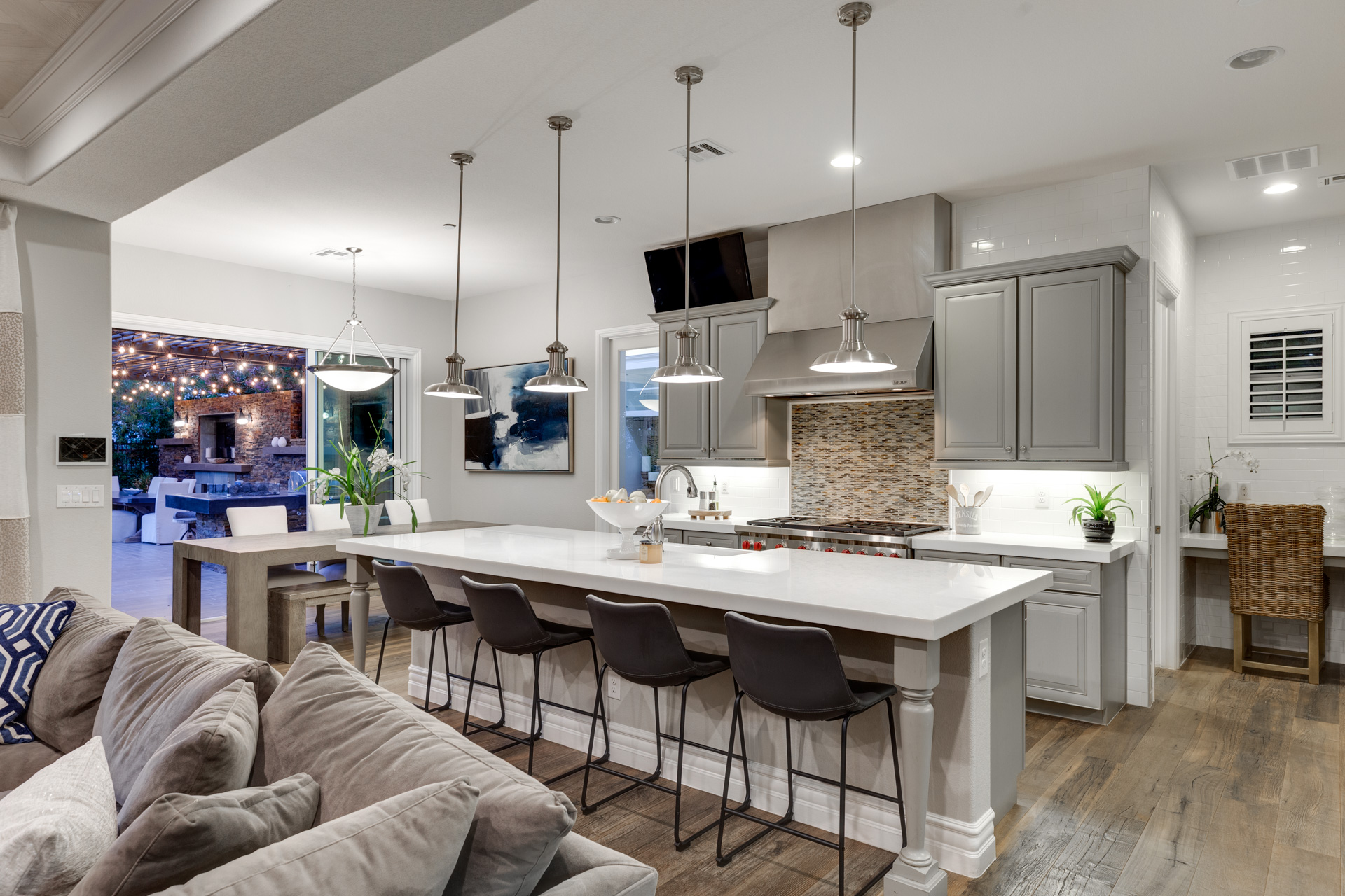 Stunning single-story Toll Bros former model home. Exceptional strip views and fabulous outdoor spaces make this home a very rare find. Designer finishes throughout featuring a gourmet kitchen with Wolf appliances and a grand island. A stylish wet bar with a seating area is perfect for entertaining. Hardwood floors, inset marble tile, unique ceiling details, beautiful lighting, and luxurious accents are found throughout.