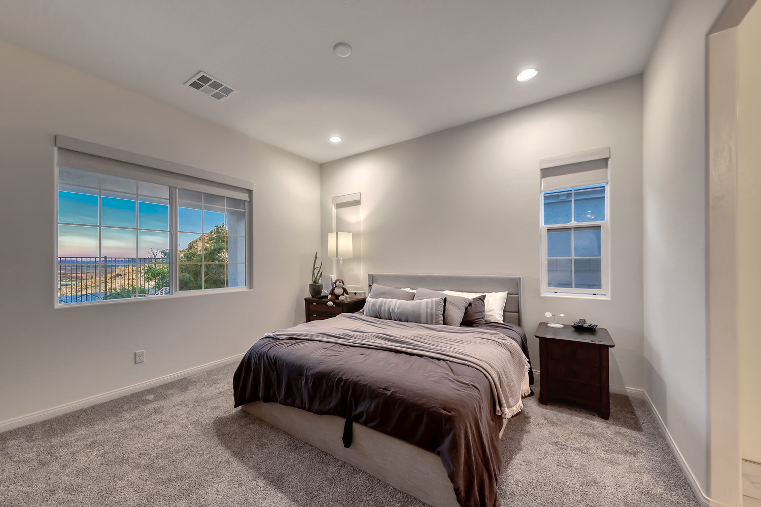 The primary suite serves as a private retreat, complete with a spa-like bathroom showcasing an oversized walk-in shower and serene finishes. Two additional bedrooms and a second full bath provide flexibility for guests, a home office, or secondary living space. Modern conveniences include a water softener, EV-charger pre-wiring, and owned solar panels installed by the builder, adding efficiency and long-term value. Outdoor living is equally inviting, with a paver-lined back patio perfectly positioned to enjoy unobstructed views and quiet mornings or sunset evenings, free from rear neighbors. A two-car garage completes the home’s practical design. Located within the resort-style community of Lake Las Vegas, residents enjoy access to miles of walking trails, championship golf, waterfront dining, and a vibrant village atmosphere—all surrounded by striking desert beauty. Opportunities to own a cliffside, single-story home with this level of privacy, views, and modern features are increasingly rare, making 32 Tatahatso Point Street a compelling offering in one of the area’s most sought-after settings.