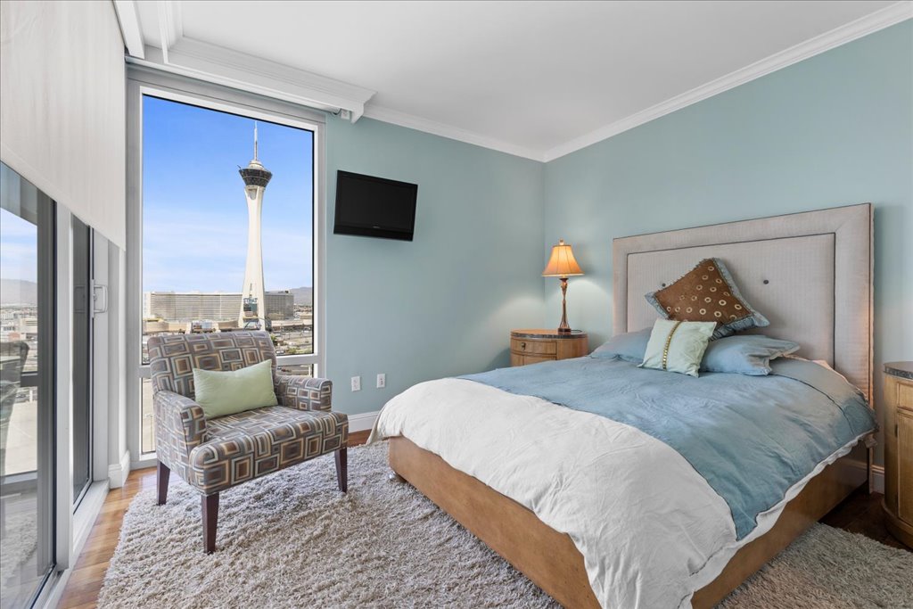 The open layout is ideal for entertaining, while the spacious primary suite includes terrace access and a marble spa-inspired bath. Timeless design in an iconic high rise in Las Vegas. Turnberry Towers is a guard-gated luxury high-rise community near the Strip, Fontainebleau Las Vegas, and the Las Vegas Convention Center. Amenities include resort-style pools, spa, fitness center, tennis and pickleball courts, valet, and 24-hour security. A premier Las Vegas luxury condo offering resort living in the heart of the city.