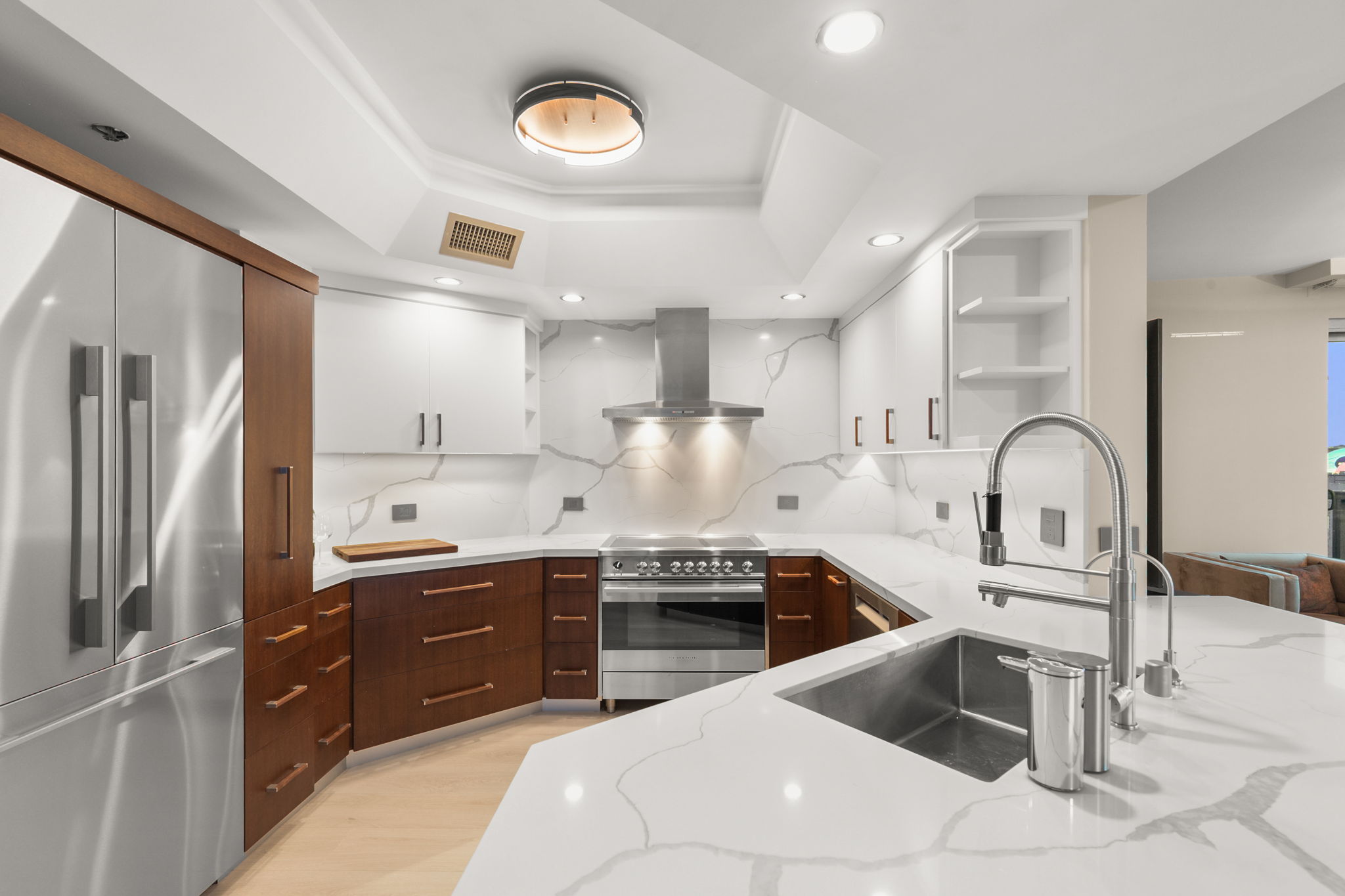 Every inch of the interior has been thoughtfully redesigned with elevated finishes and modern functionality. The kitchen stands alone as the only true chef’s kitchen in the building, complete with proper hood ventilation, custom walnut cabinetry crafted by a reputable furniture maker, and a full suite of new appliances. The bathrooms are equally refined, showcasing Thassos and Namaste marble, with the primary suite offering a spa-like retreat featuring a large soaking tub and fully redone plumbing systems.
