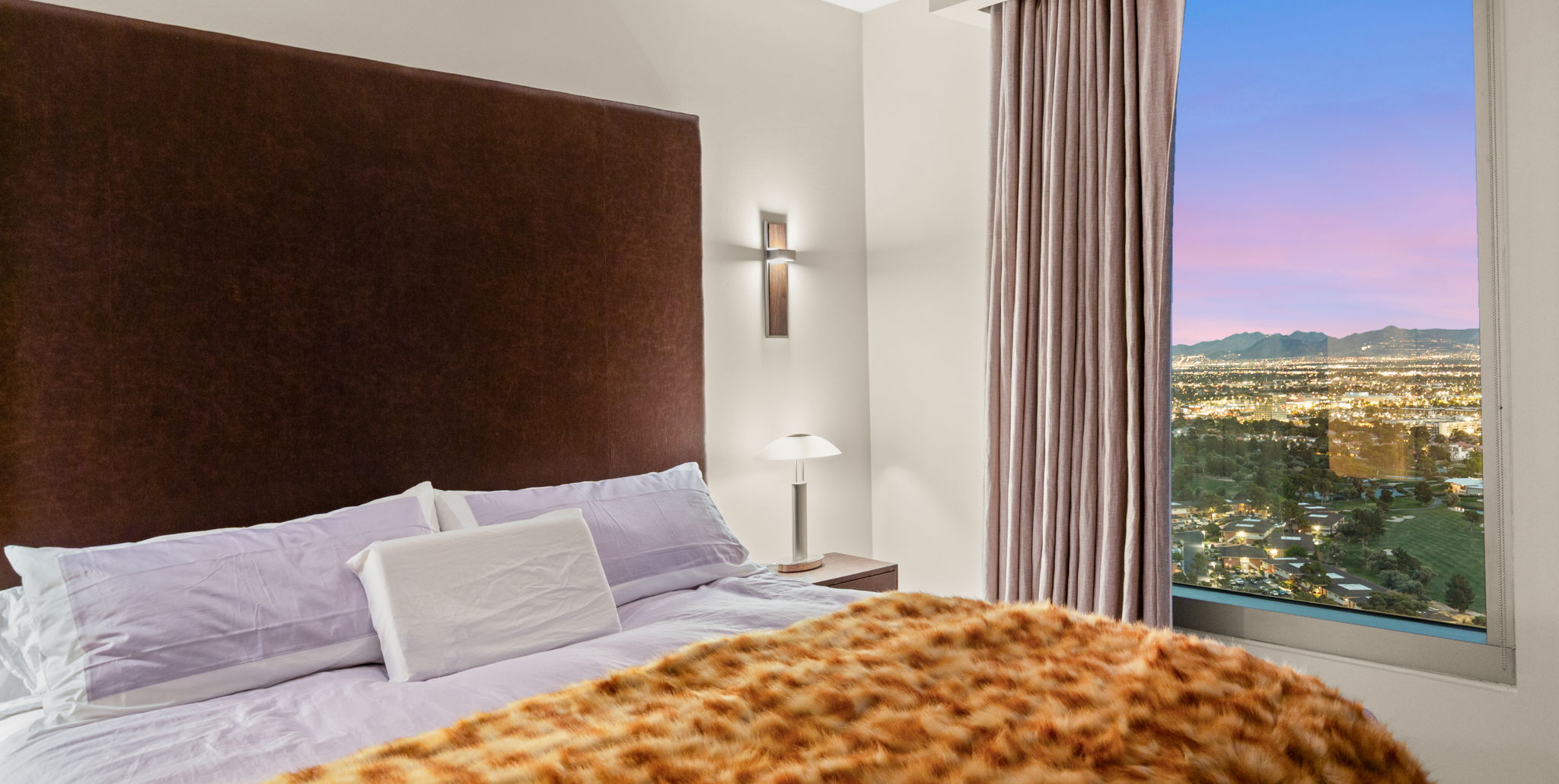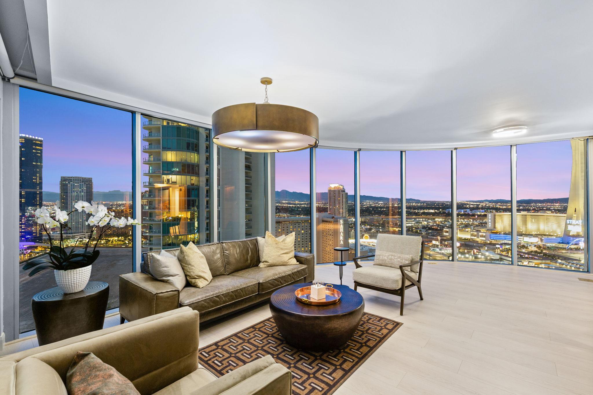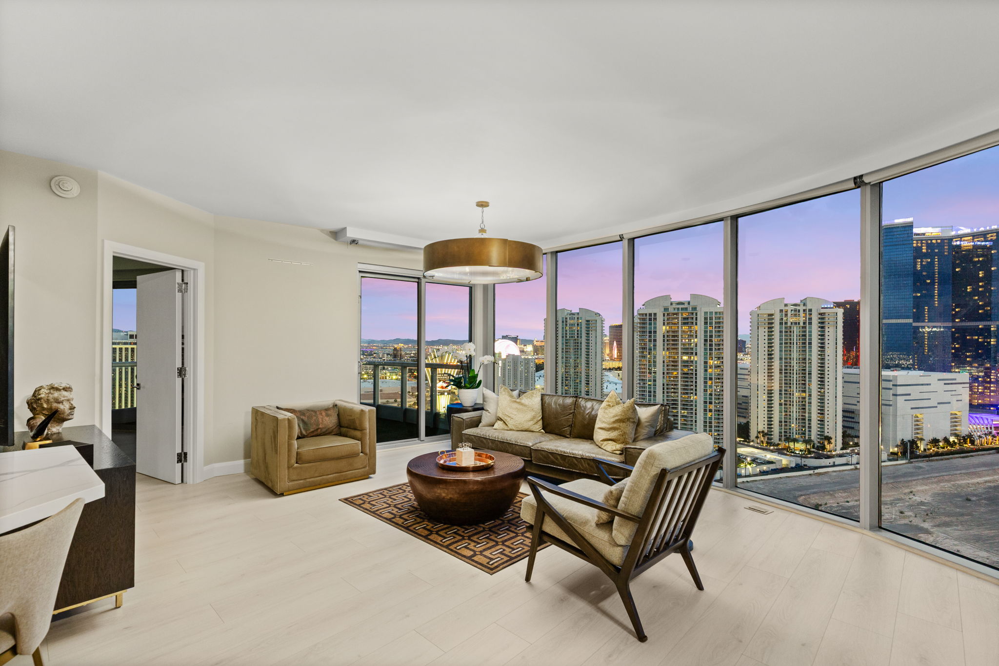 Perched high above the city on the 31st floor of Turnberry Towers, 322 Karen Avenue #3108 presents a fully reimagined luxury residence defined by scale, craftsmanship, and extraordinary views. Spanning 1,657 square feet, this 2-bedroom + den, 2-bath home is one of the rare units in the building featuring wraparound floor-to-ceiling windows, framing sweeping, unobstructed vistas of the Las Vegas Strip, the Sphere, the Stratosphere, and the downtown skyline.