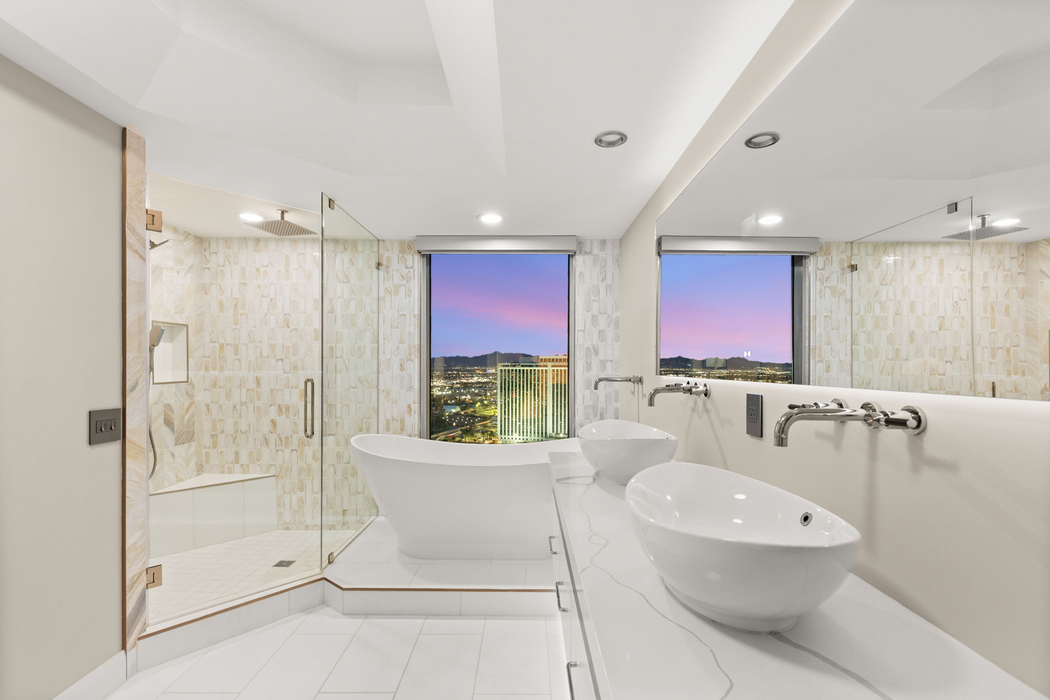 Additional upgrades include wide-plank LVT flooring, polished nickel hardware throughout, a Legrand Adorne luxury electrical system, LED recessed lighting and designer fixtures, fresh paint, and acoustic wall paneling in the entryway—creating a seamless blend of sophistication and comfort. Turnberry Towers is known for its resort-style amenities, including guard-gated security, valet, concierge services, a fitness center, tennis courts, and a resort pool, all just moments from world-class dining, entertainment, and nightlife. With very few residences offering this level of renovation, scale, and iconic views, 322 Karen Avenue #3108 represents a rare opportunity to own a truly one-of-a-kind high-rise home in the heart of Las Vegas.