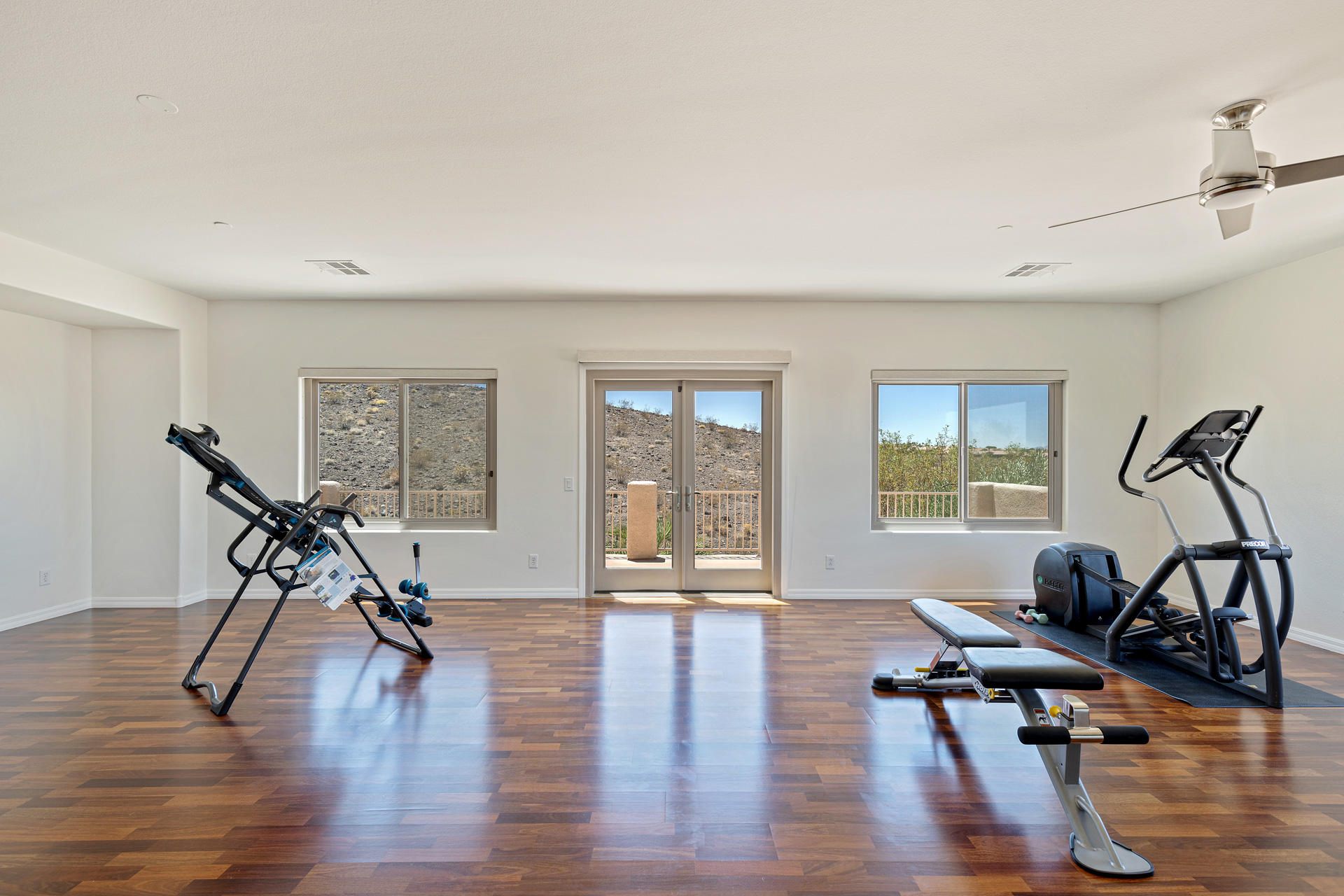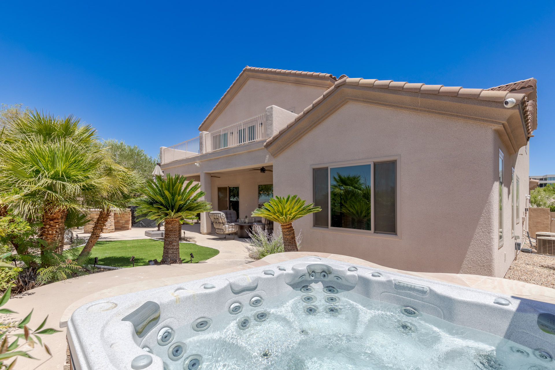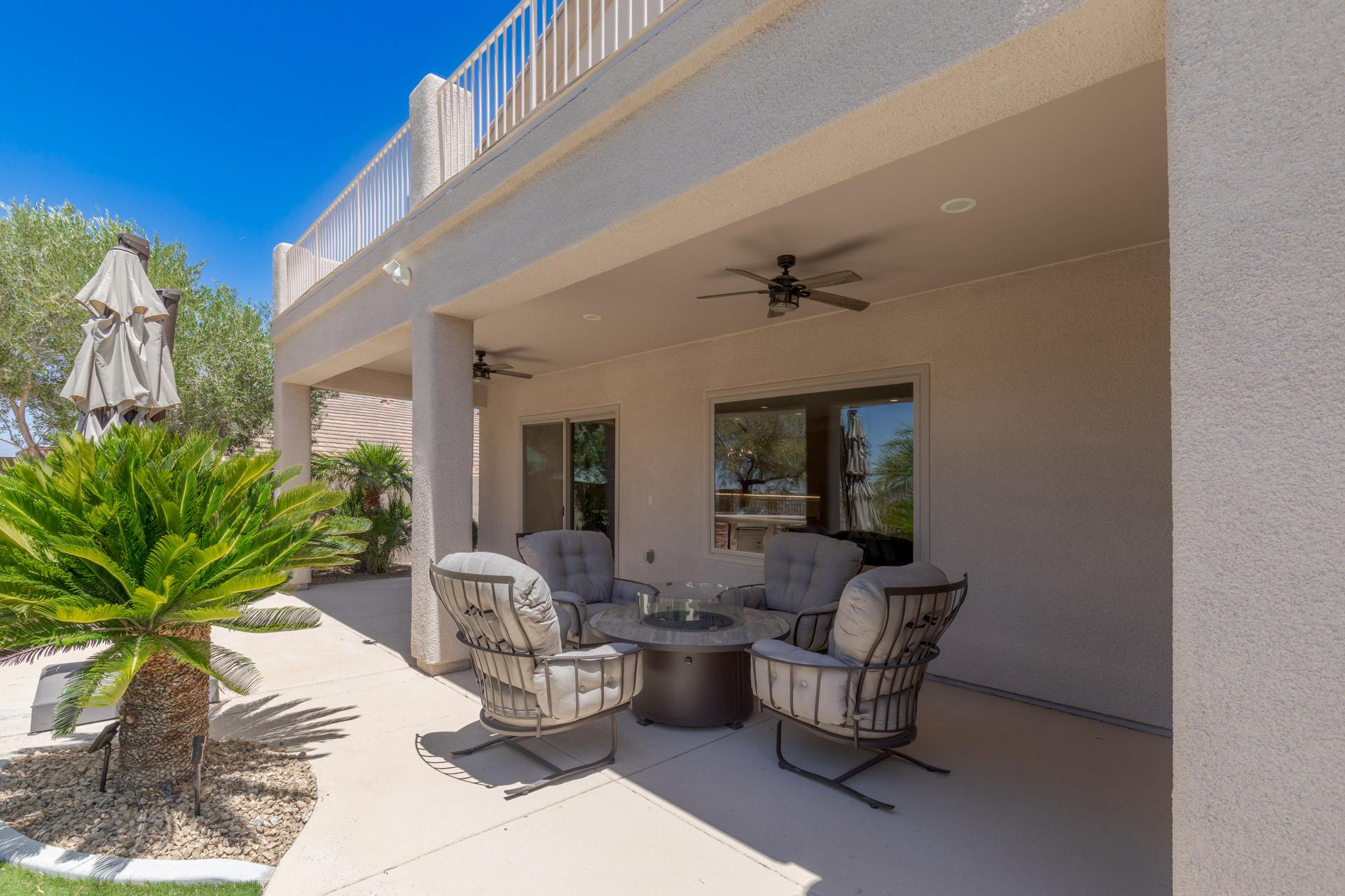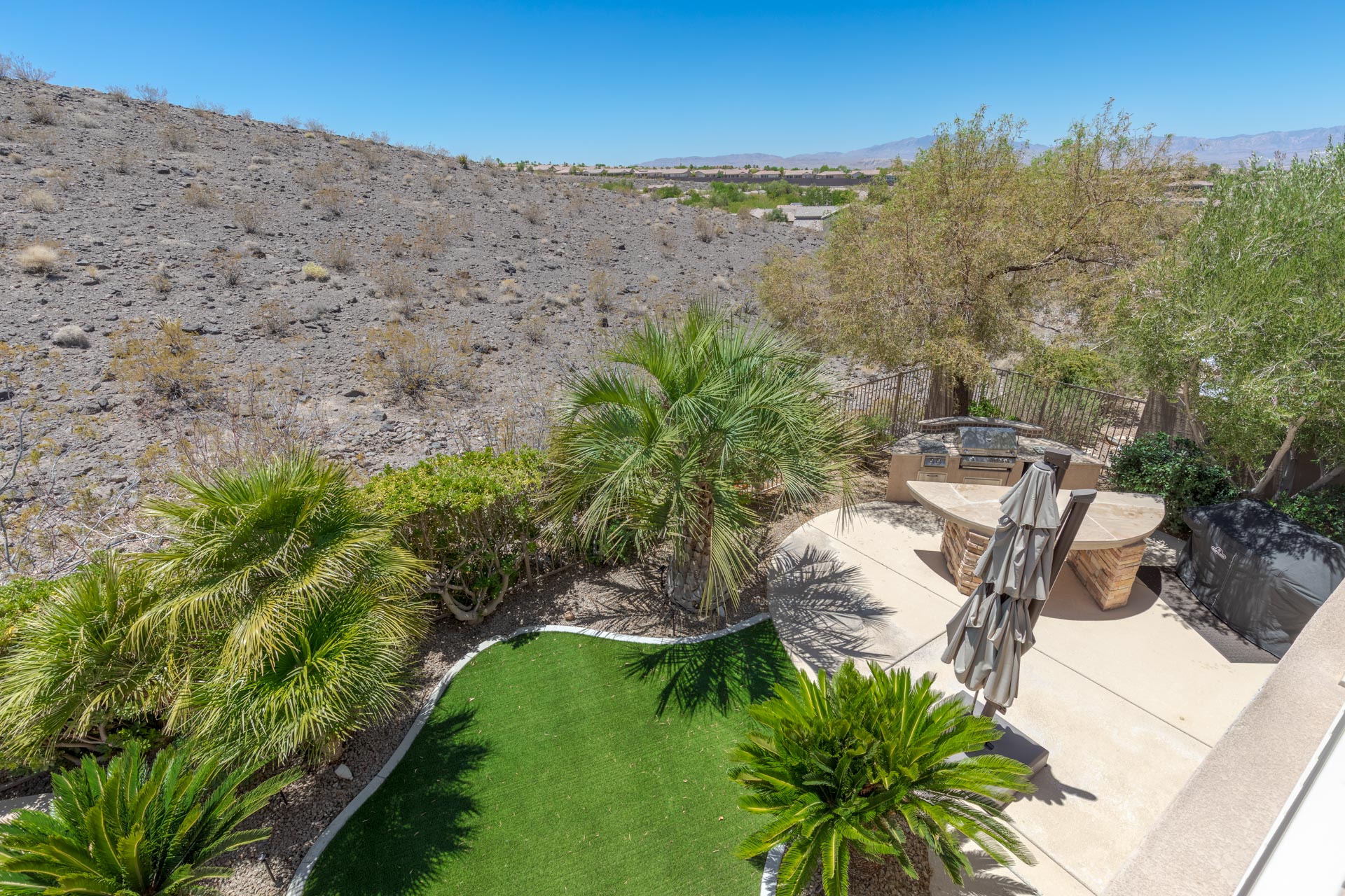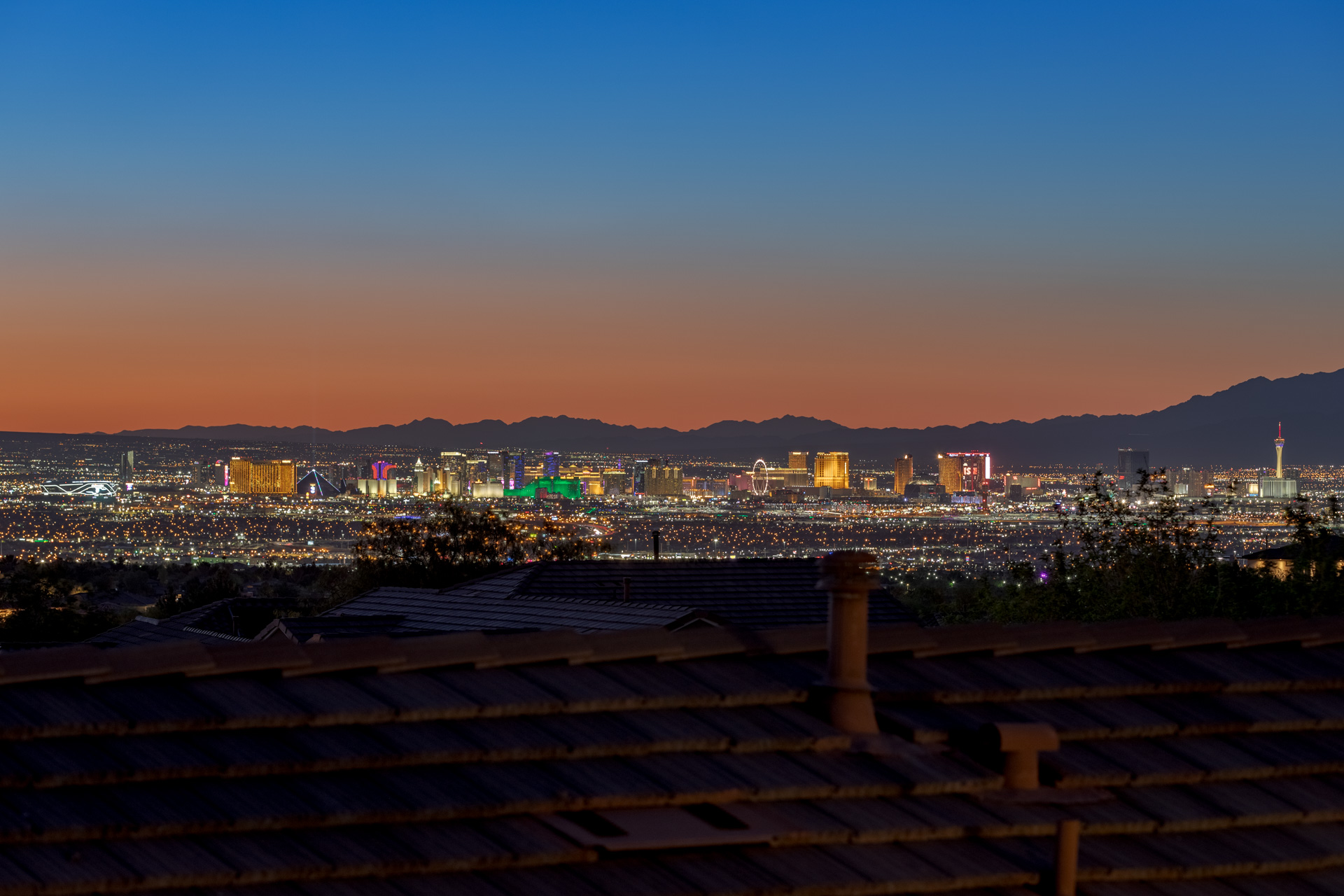 The primary suite faces the scenic backyard on the hillside with ultimate privacy. The gorgeous spa-like bathroom has free standing tub, extensive walk-in shower, DXV electronic bidet toilet and a large, customized walk-in closet. Upstairs three secondary bedrooms have full baths and custom built-in closets. There is loft that is perfect for an office or study. A fantastic gathering room with a Strip View connects to a large balcony overlooking the wide open mountain/valley. Along with the home's features, residents will enjoy the security of guard-gated Anthem Country Club and will have access to memberships in the private club that includes: gym, clubhouse, restaurants, resort-style pool, pickle ball, tennis courts and a par -72, 7373-yard Hale Irwin/Keith Foster designed championship golf course.