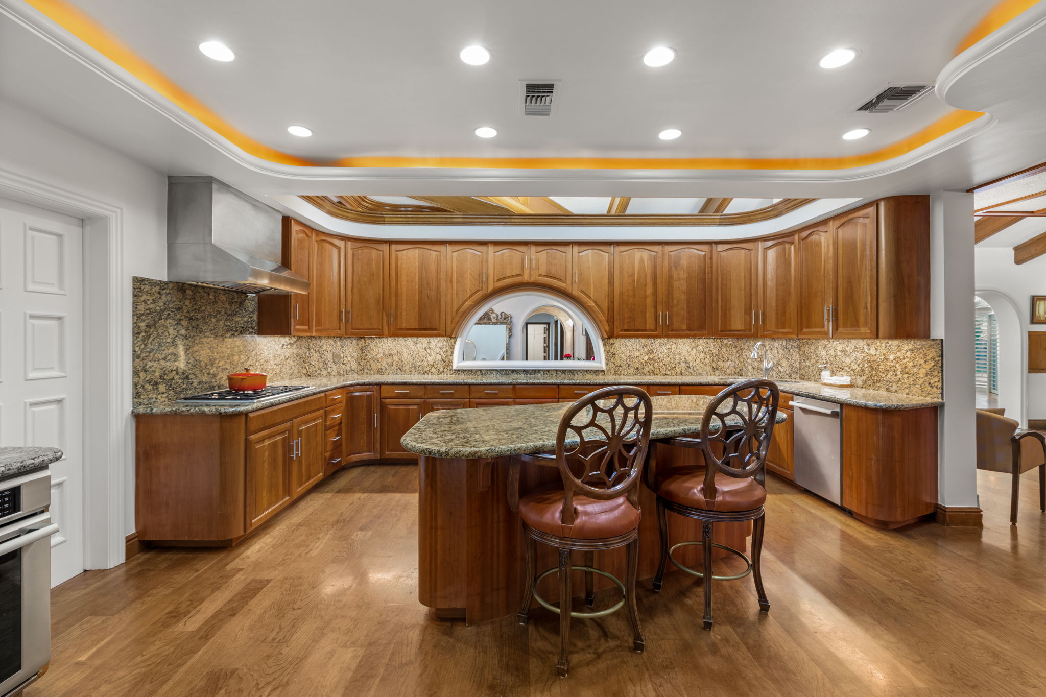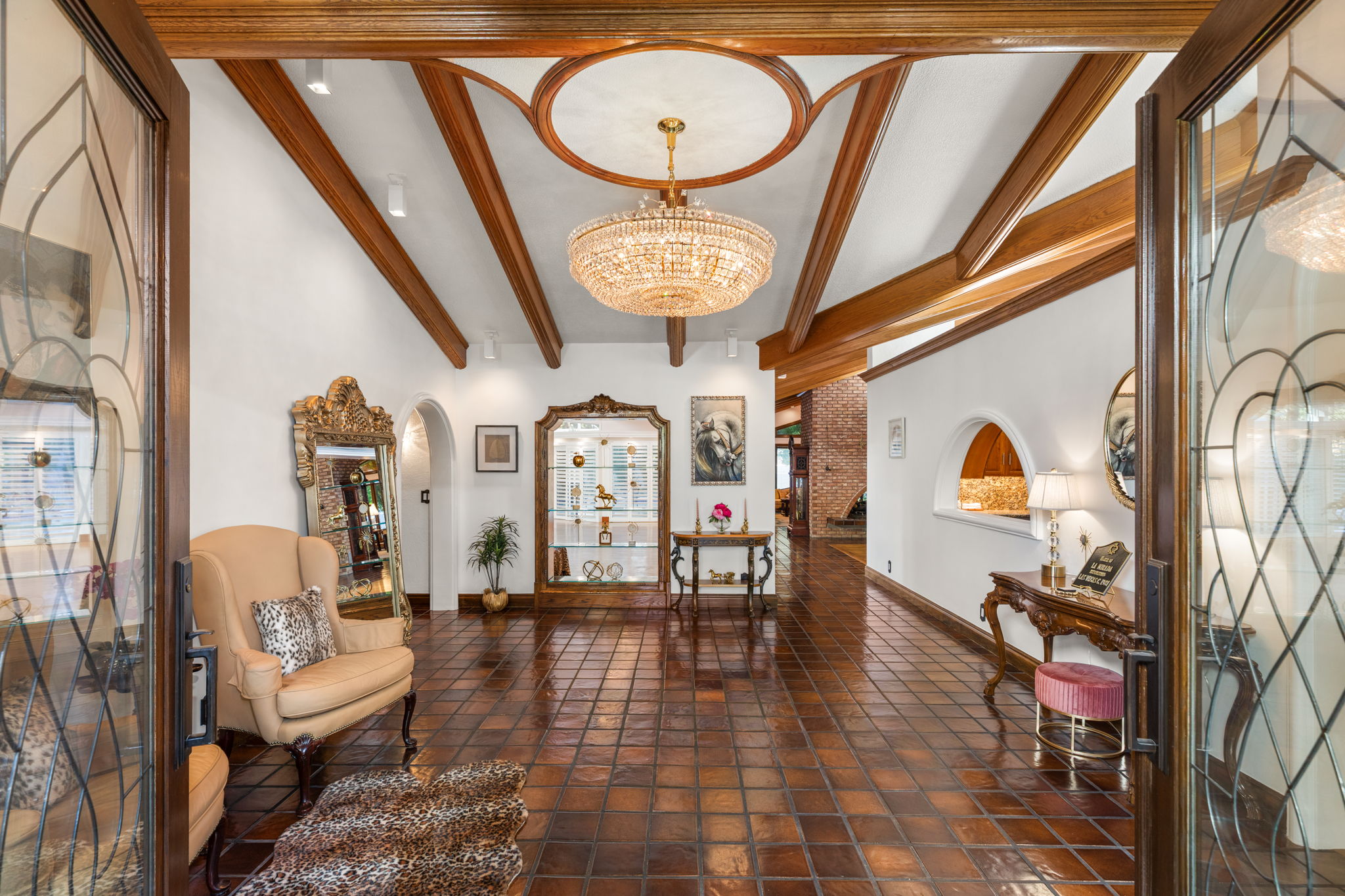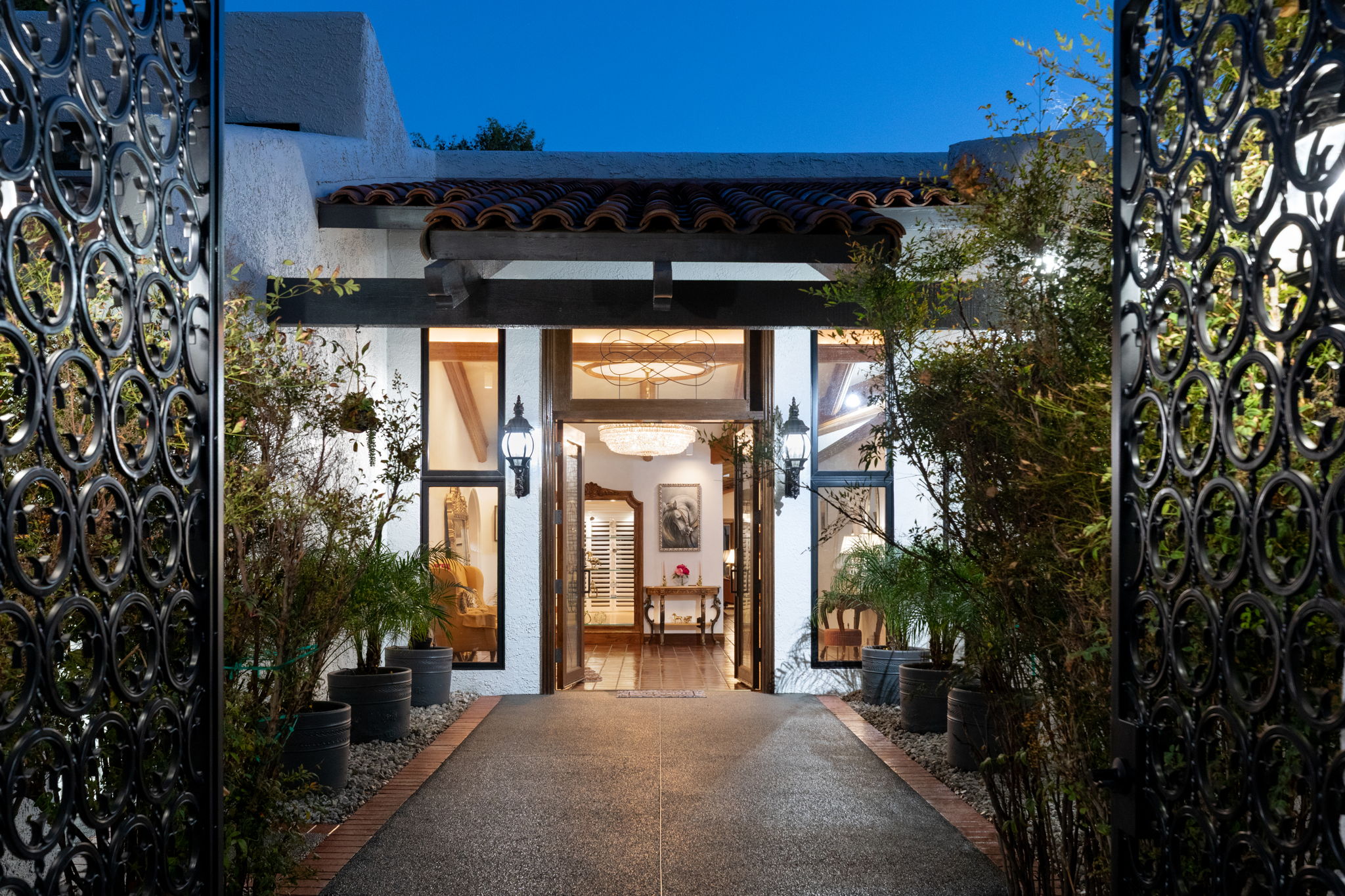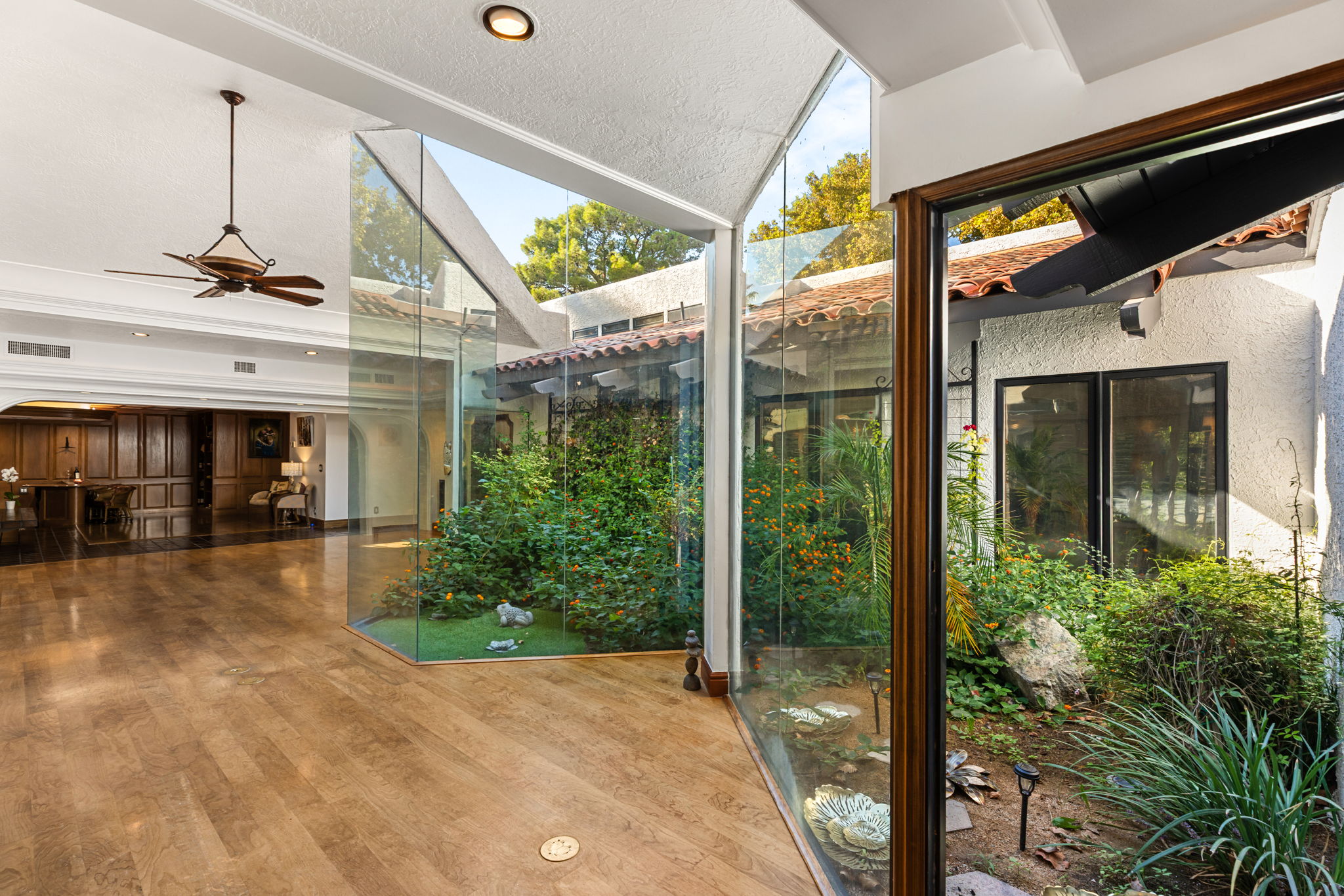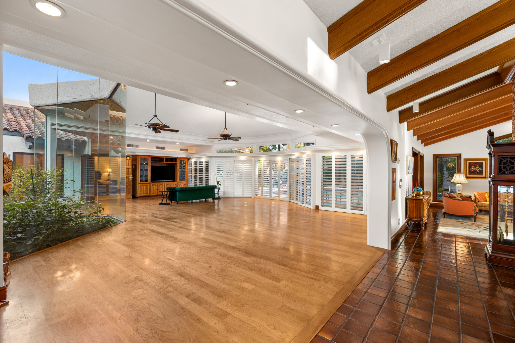 Perfectly manicured resort-like grounds showcase tall mature trees, a rose garden and 57 palms. The house has been fully repainted, with all the windows resealed and the wood refinished, setting the stage for a meticulously cared-for residence. Inside, the home embraces indoor/outdoor living with two stunning atriums that anchor the open floorplan and flood the interior with natural light. These dramatic spaces create a rare sense of connection to nature and the outdoors while offering the privacy and convenience of being fully enclosed.