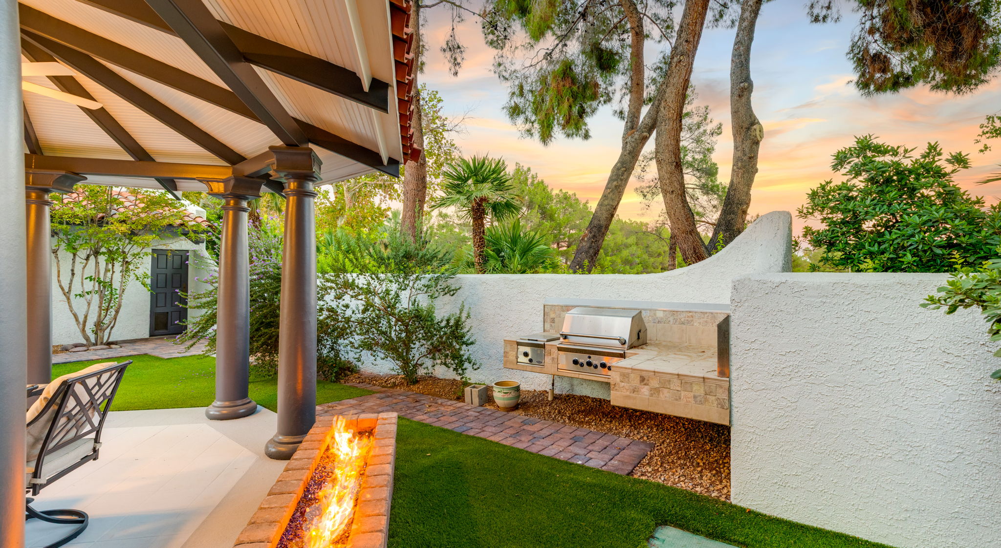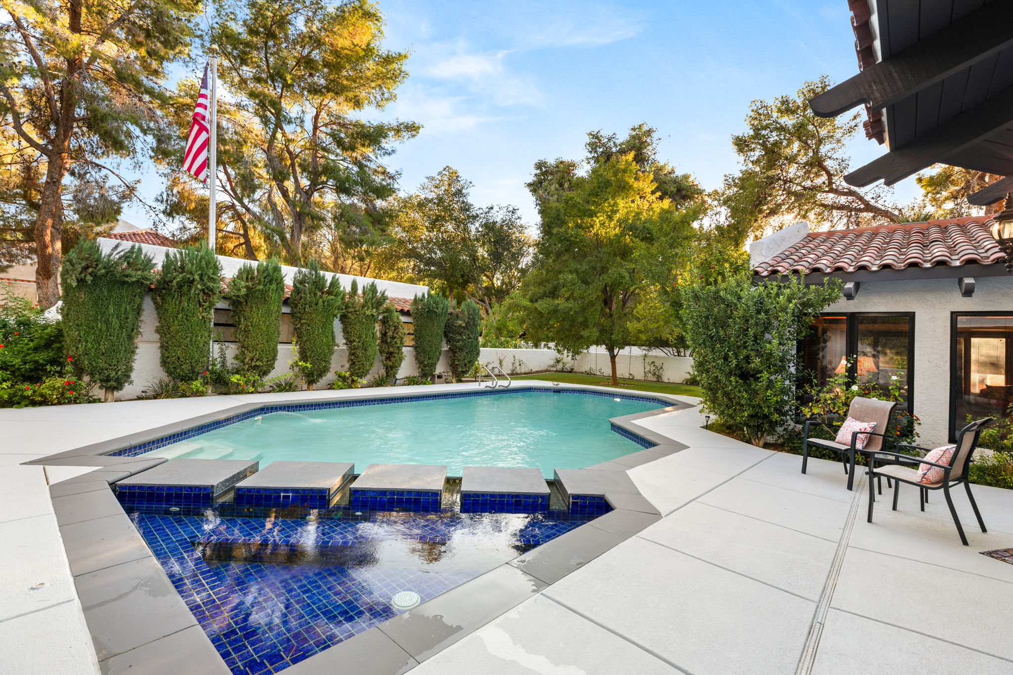 The interiors are equally impressive, with a glittering grand foyer crystal chandelier, a large entertainment room, beautiful woodwork throughout, and a red brick fireplace exuding a cozy atmosphere in the bar and library area. Fully repainted interior with hardwood floors flowing through the common areas, complemented by beautiful tile and newly redone floors in the bedrooms, La Mirada Estate is ready to be enjoyed. Shutters, vintage wallpaper accents, and Schonbek chandeliers lend character, while custom cabinetry and thoughtful built-ins speak to the level of care and detail invested throughout. The heart of the home is the chefās kitchen, equipped with three new Thermador ovens, a double-wide Sub-Zero refrigerator, dual wine fridges, pantry room, ice maker, and abundant storage. The adjoining sunken wet bar, complete with wine fridge, is perfect for entertaining in style. Living spaces are generous and versatile, designed for both large gatherings and intimate evenings. The living room is centered by one of two large fireplaces, creating a warm and inviting atmosphere. The primary suite is a true retreat, featuring its own fireplace, dual walk-in and a cedar closets, large floor-to-ceiling marble shower with its own indoor garden, while the en-suite bathroom exudes comfort and privacy. Each of the additional three bedrooms also include their own full bath and private access to yard space, offering a rare blend of luxury and functionality. Every detail has been carefully considered, from dual water heaters ensuring efficiency, to a spacious laundry room with new washer and dryer included, as well as a Tesla charger for modern convenience. Storage is abundant throughout, meeting the needs of an estate of this size. The outdoor spaces are nothing short of spectacular. A large pool and spa form the centerpiece of the backyard, complemented by a fully redone pool house complete with an infrared sauna. The expansive yard includes a shaded gazebo, a fireplace feature, BBQ area, dog run and ample room for entertaining or relaxing in total privacy. Newly added Cool-decking enhances the usability of the space, making it ideal for enjoying Nevadaās sunny climate. Adding to the value of this property is the Equestrian Estates communityās private well system, meaning there is no monthly water billāan uncommon and significant benefit. This insures that the estate grounds remail green and fruitful year round and provide exquisite air quality as well as shade, privacy and gorgeous surroundings. Living in Sunset Park Paradise Valley means access to one of Las Vegas, Green Valley Hendersonās most desirable areas, known for its tree-lined streets, established neighborhoods, and proximity to top-rated schools, parks, airport, shopping, dining, and recreation. Equestrian Estates community is both serene and convenient, offering a lifestyle that perfectly balances tranquility and accessibility. 3321 La Mirada Avenue is more than a residence -- it is a rare opportunity to own a one-of-a-kind custom estate with every feature designed for comfort, elegance, and enjoyment. With its combination of size, custom details, indoor/outdoor living, and unmatched outdoor amenities, this property stands apart as a truly unique offering in the Sunset Park area market. If you are seeking a home that redefines luxury living in Las Vegas, Paradise Valley or Henderson āwhere every detail has been thoughtfully designed and every space invites you to create lasting memoriesāthis estate is the one youāve been waiting for.
