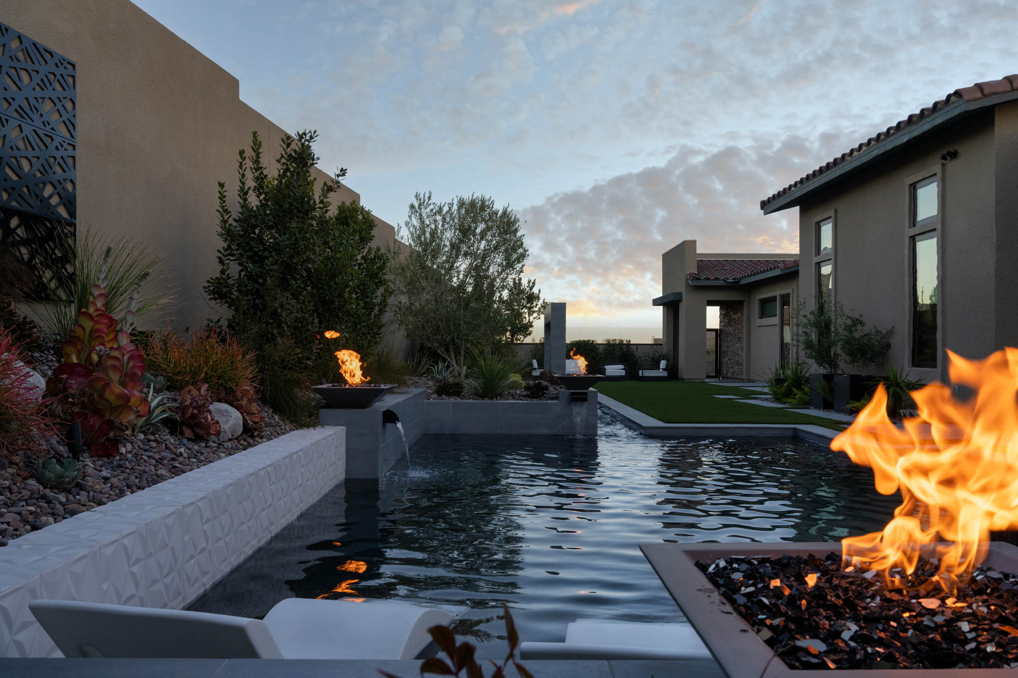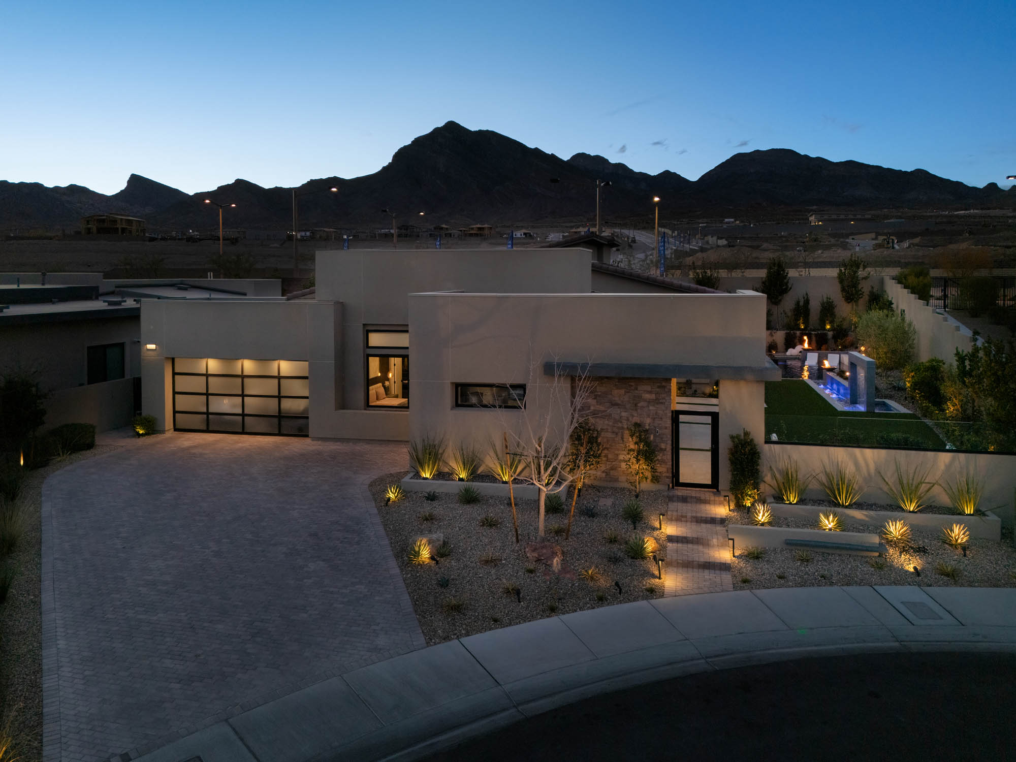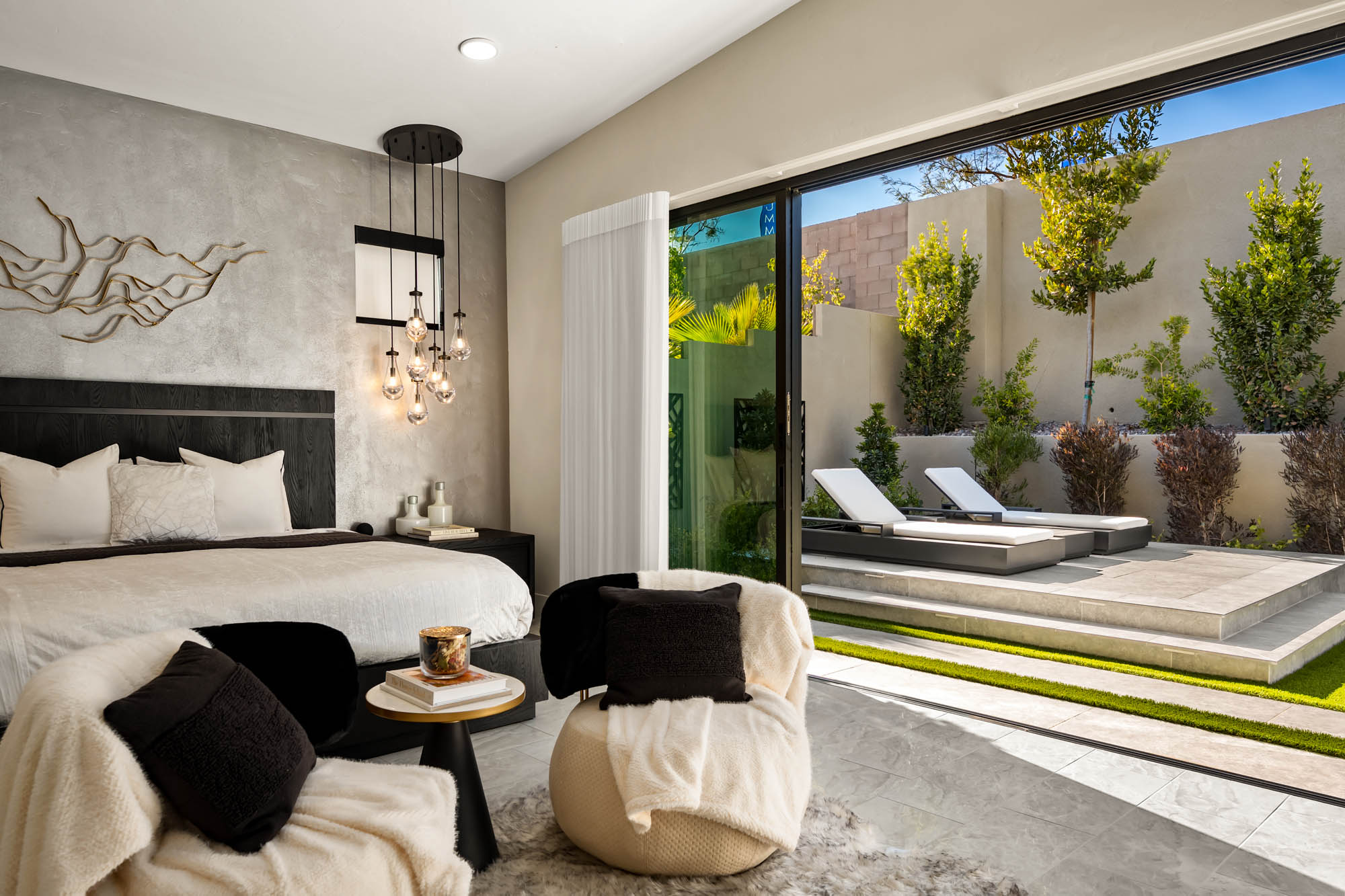 Located in Redpoint of Summerlin, 333 Highview Ridge offers the pinnacle of modern single-story living with an open floor plan and exquisite custom designer finishes throughout. This stunning home features four ensuite bedrooms, a dedicated office, and luxurious details such as wood-paneled accent walls and ceilings, designer wallpaper, and Restoration Hardware lighting.