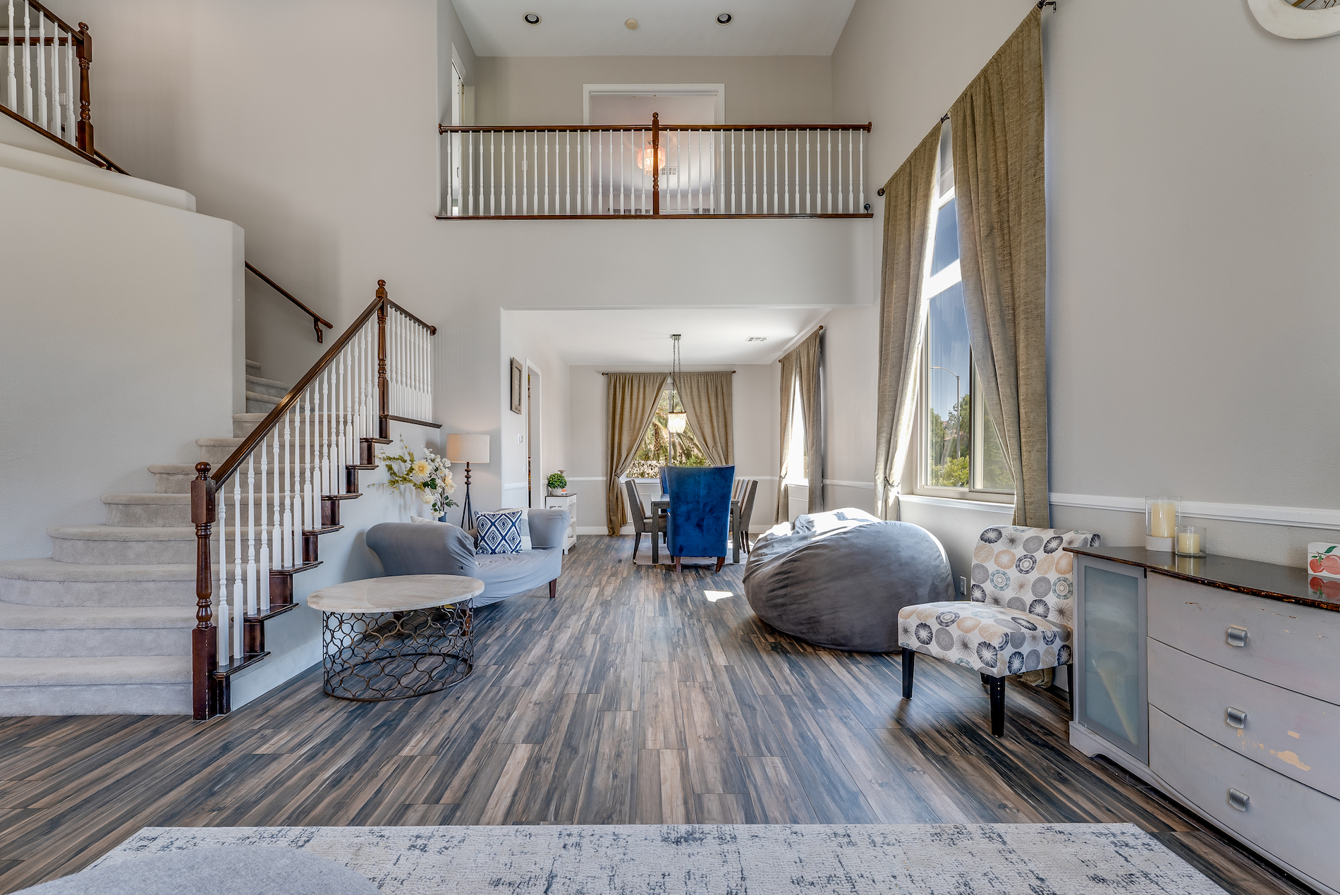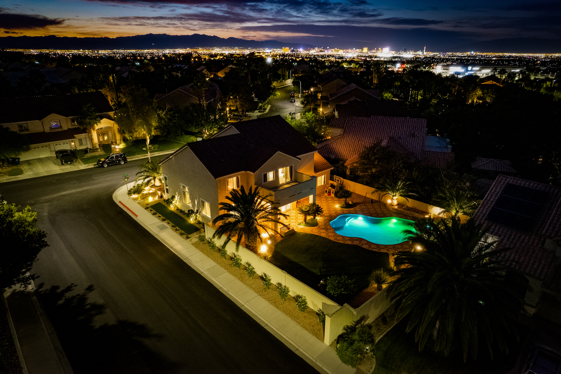 One of the best locations right in the heart of Green Valley Ranch. Stunning pool home on a private corner lot with a captivating backyard, ideal for entertaining or raising the kids. One of the most popular floorplans with 4 beds, 3 baths, 3 car garage, vaulted ceilings, open two-story entryway, and spacious primary suite with balcony and separate sitting room perfect for home office, gym, or nursery.