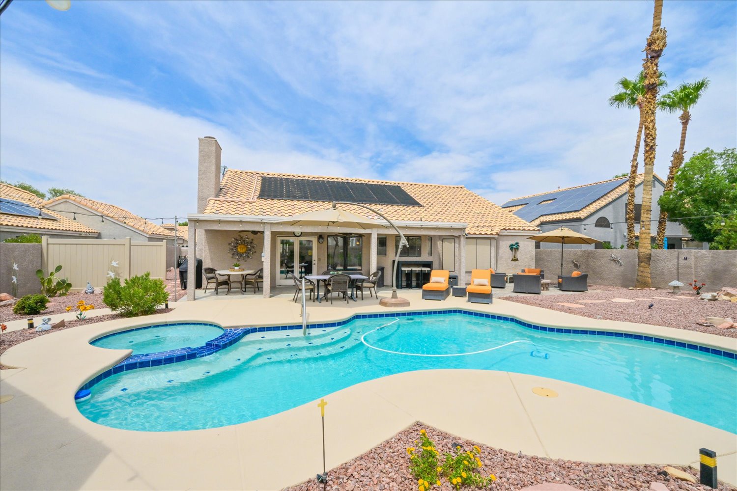 Step outside to a true entertainer's dream, a sparkling pool and spa with Aqualink smart controls and solar heating, a cozy gas fire pit, a customized cabana for lounging and an extended covered patio, perfect for dining outside and hosting. This low-maintenance home features a water softener and reverse osmosis plus a rare oversized side lot provides the opportunity for RV, boat or trailer storage. Combining elegance with an effortless lifestyle, this Green Valley gem is made for both entertaining and everyday enjoyment. Easy access to freeways, dining, shopping and entertainment.