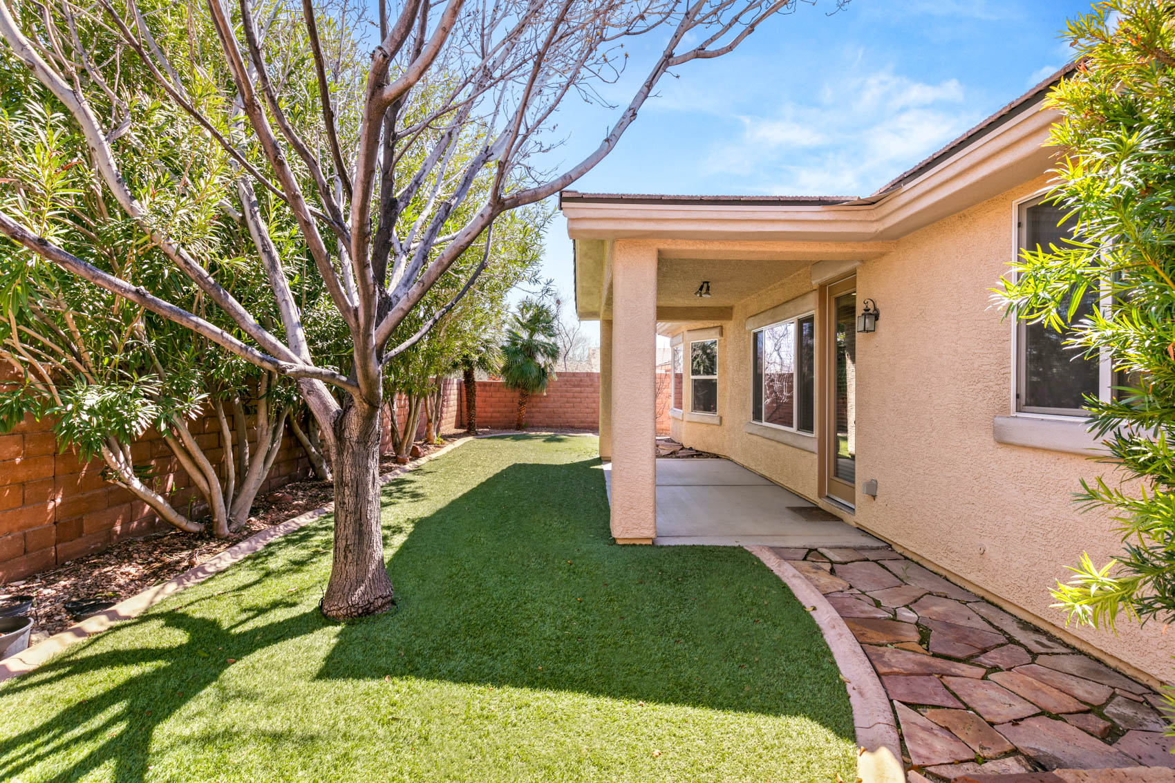 The open floor plan creates a seamless flow throughout the living spaces, perfect for entertaining or relaxing with family and friends. Step outside to discover a lush courtyard adorned with mature fruit trees, including limes, oranges, and lemons. Relish the outdoors under the covered patio, overlooking the expansive backyard with no rear neighbors, offering privacy and tranquility. Don't miss this opportunity to own a beautiful home with abundant amenities and natural beauty.