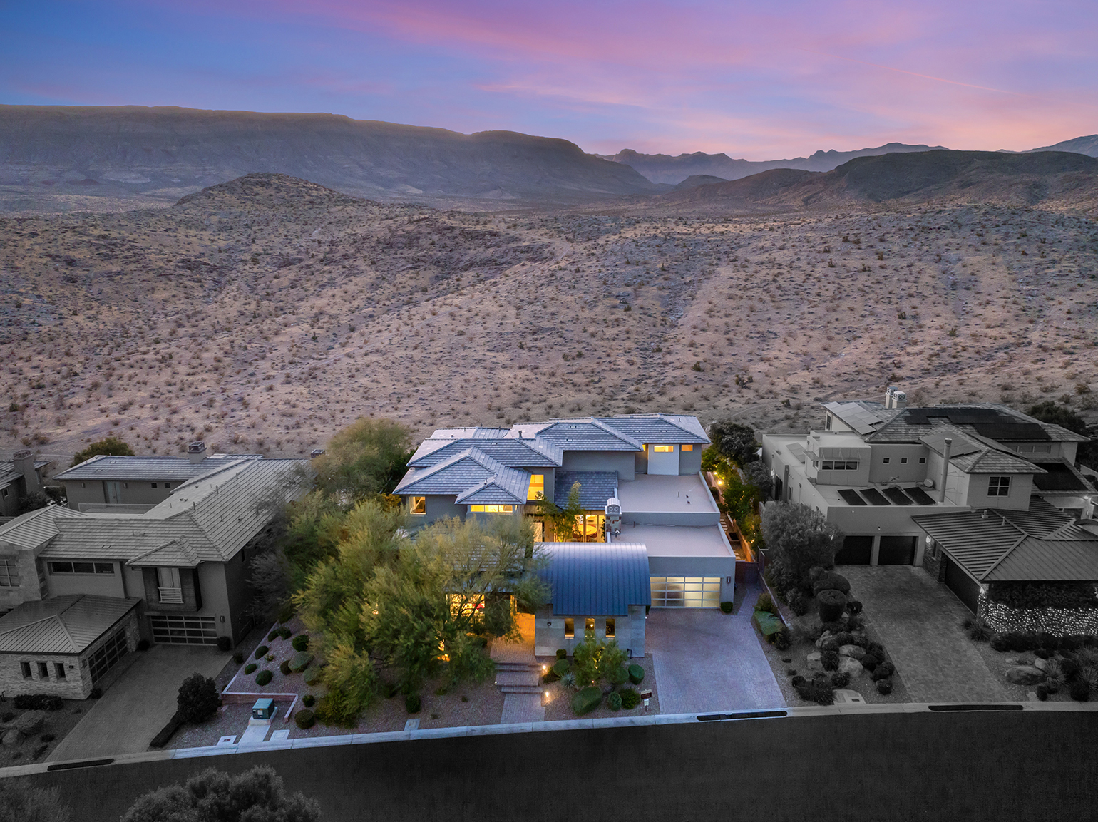 Modern luxury meets mountain serenity in this custom Boulder Ridge stunner. Sleek tempered glass garage doors and a paved drive lead to a private slate courtyard with a built-in gas fireplaceāyour first taste of the elegance within. A glass front door opens to a dramatic two-story entry, polished stone floors, and a sculptural glass wine cellar.