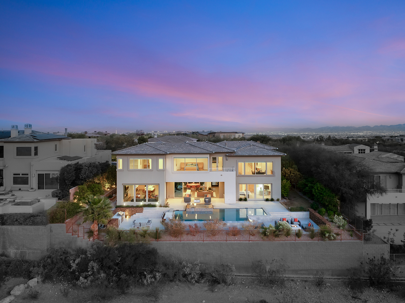 The open-concept layout is an entertainerās dream, with a chefās kitchen featuring premium stainless appliances, double ovens, gascooktop, and built-in microwave. Fireplaces warm both the living and family rooms. Upstairs, a lofted book nook adds charm. The west-facing backyard is a private resort, with an infinity-edge pool, jacuzzi, built-in BBQ, and sunset views. A bold, sophisticated retreat carved into the mountainsideāsleek, spacious, and unforgettable.