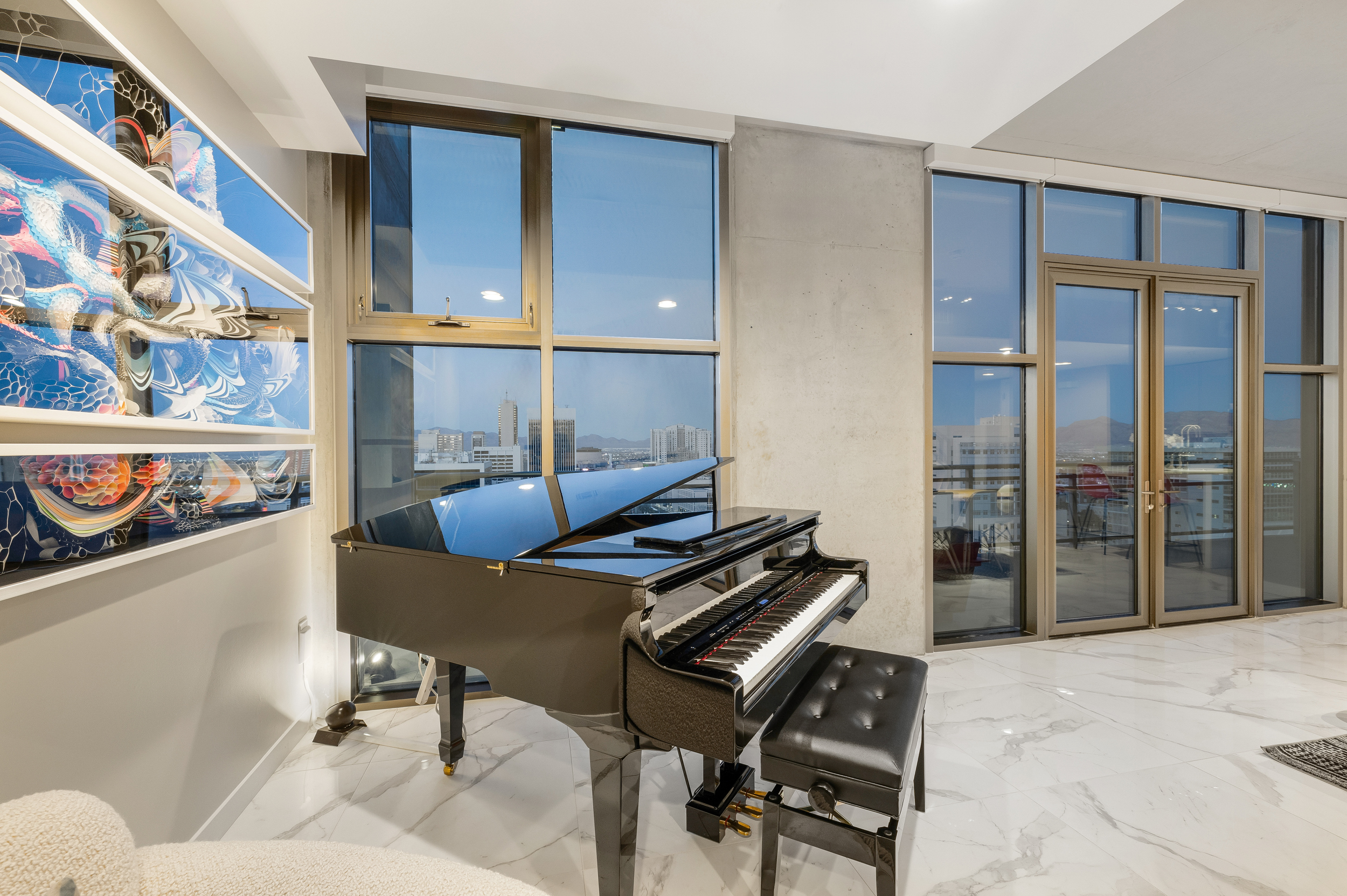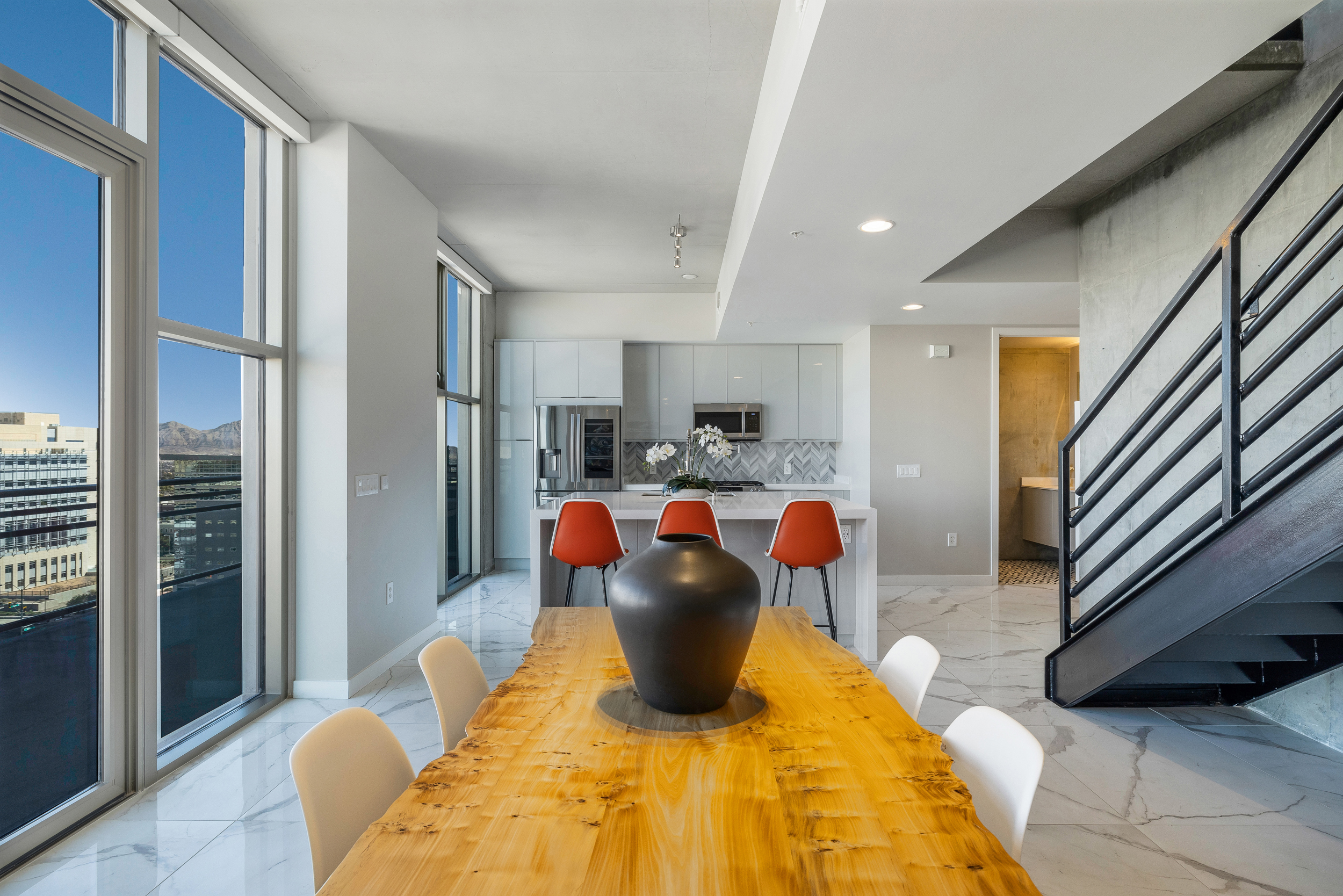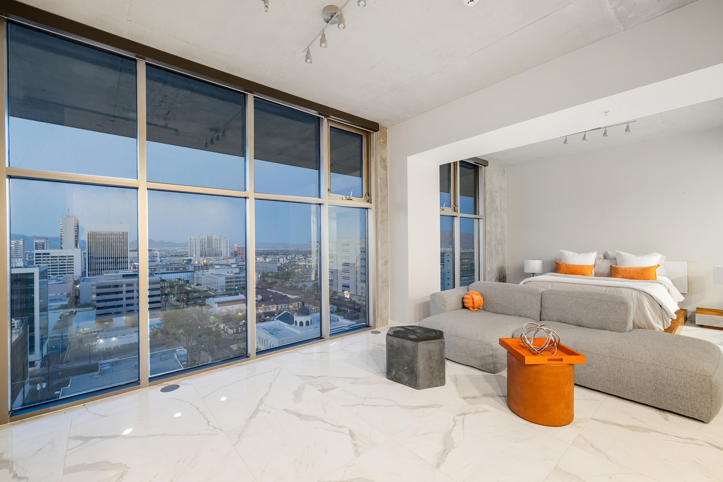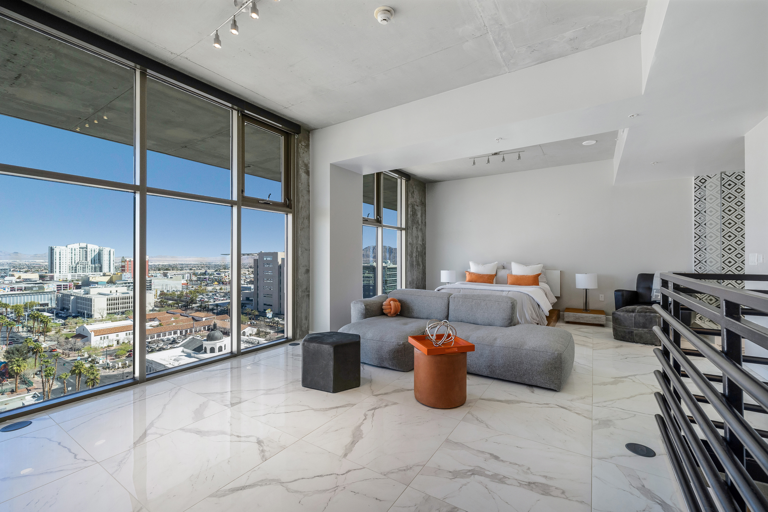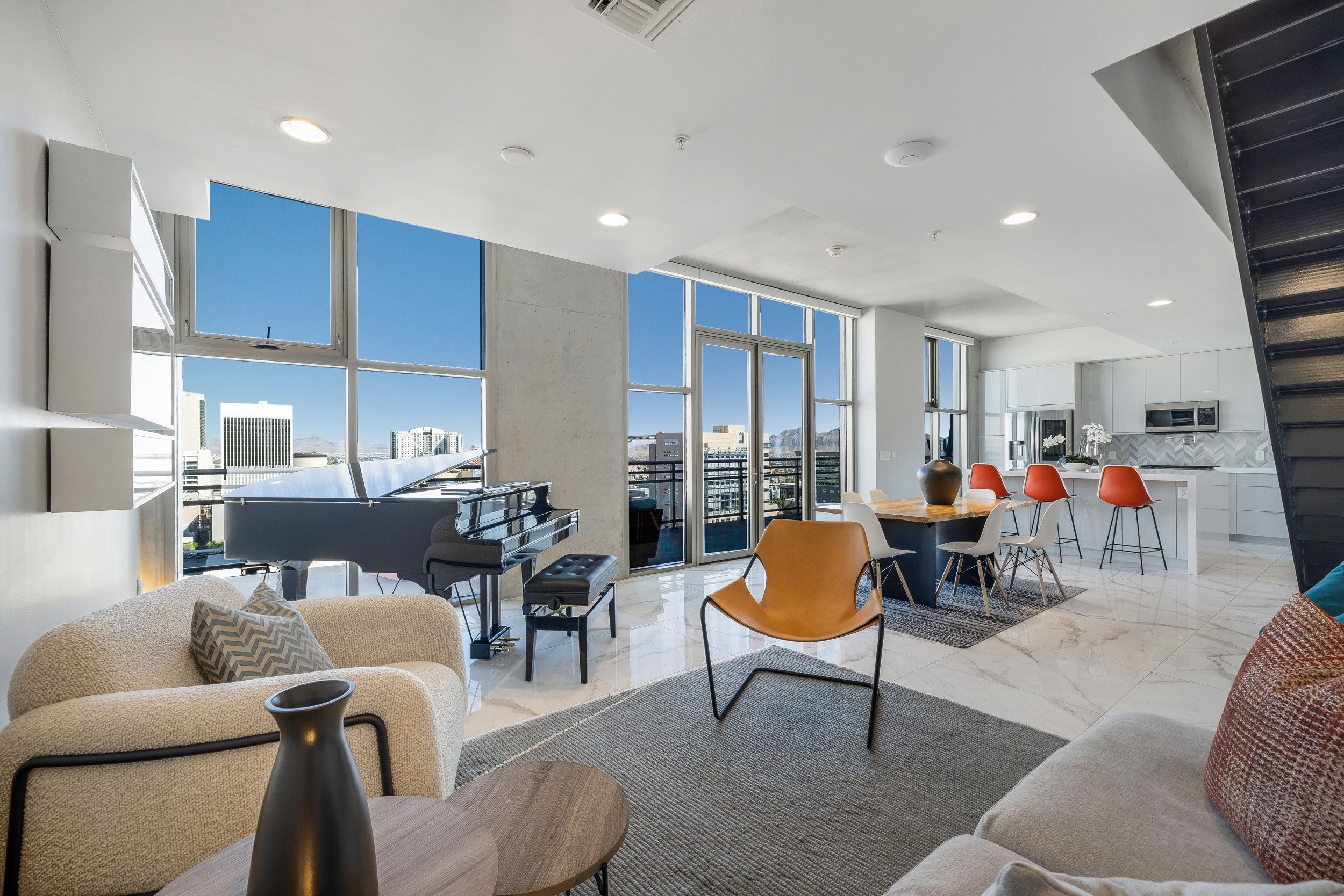 Experience the pinnacle of Las Vegas living in Juhlās stunning penthouse! This impeccably designed 1BR/2.5BA loft-style condo offers breathtaking city and mountain views through soaring floor-to-ceiling windows. The sleek, modern kitchen boasts high-end cabinetry, stainless steel appliances, and a spacious islandāperfect for culinary creations and entertaining.