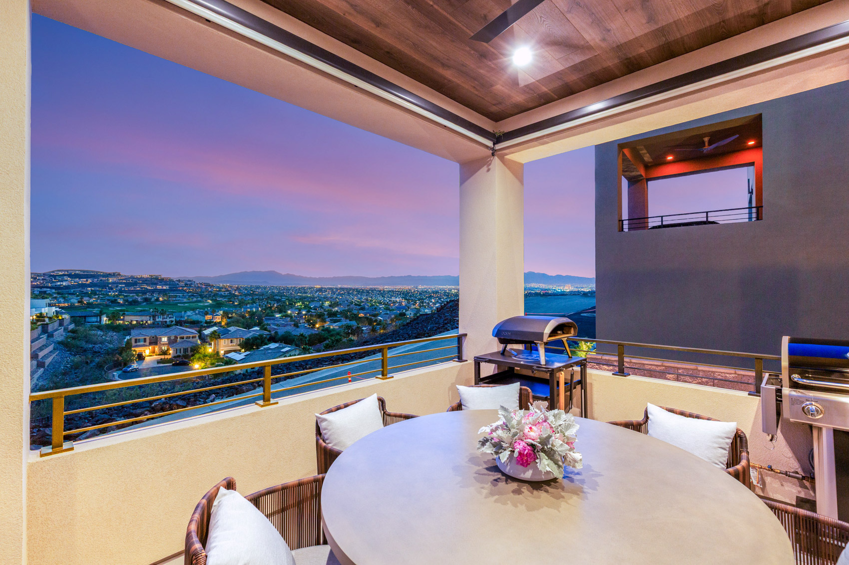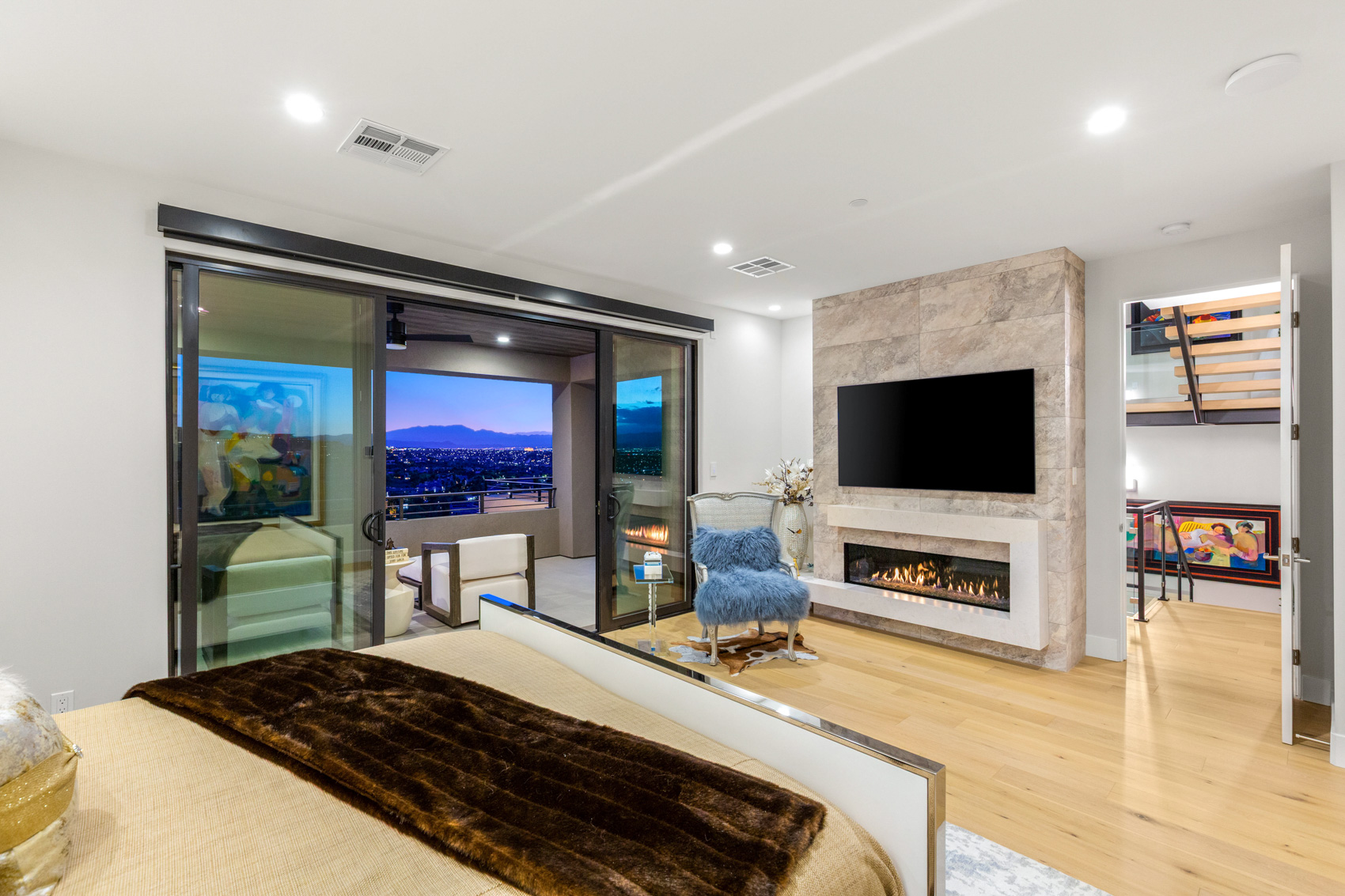 The main living area is anchored by soaring ceilings and rich walnut display cabinetry that bring a sense of depth and elegance to the space. Seamlessly connected to a state-of-the-art kitchen, the flow is ideal for both intimate gatherings and large-scale entertaining. The kitchen is outfitted with top-tier appliances, designer lighting, and expansive prep areas, blending form and function in perfect harmony. Each bedroom is its own private retreat, designed with comfort, privacy, and timeless style in mind. Custom closets provide ample storage and elegant organization, while the en-suite bathrooms are crafted with spa-like finishes, creating an atmosphere of everyday luxury. The primary suite is especially impressive, offering a peaceful sanctuary with direct balcony access and spectacular viewsāperfect for early morning coffees or winding down under the stars. A standout feature of the home is the dedicated fitness room, complete with a private sauna that elevates your wellness routine to a resort-level experience. Whether for a high-intensity workout or a relaxing sauna session, this space speaks to the thoughtful lifestyle integration throughout the property. At the top of the residence, a private rooftop deck awaitsāan expansive open-air lounge designed for unforgettable entertaining. From sunrise yoga sessions to starlit cocktail parties, the rooftop offers panoramic views of the glittering Las Vegas Strip, the rugged beauty of the surrounding mountains, and the endless desert sky. Itās an outdoor space unlike any other, blending serenity with spectacle. This residence is equipped with smart home technology, modern infrastructure, and an oversized three-car garage with ample storage. Every detail has been carefully curated to create a seamless living experience that caters to both elegance and ease. Located within one of Hendersonās most exclusive and tranquil communities, MacDonald Highlands offers world-class amenities including the private DragonRidge Country Club, championship golf, fine dining, tennis and pickleball courts, a state-of-the-art fitness center, and miles of scenic trails. The communityās 24-hour security and beautifully maintained grounds enhance the sense of privacy and prestige that define the neighborhood. 358 Solitude Peak is not just a homeāitās a refined expression of elevated desert living. With its thoughtful design, commanding views, and exceptional location, this is a rare opportunity to own a one-of-a-kind contemporary estate in one of Southern Nevadaās most coveted settings. Homes of this caliber seldom come to market. This is more than a residenceāitās a lifestyle, and it begins at Solitude Peak.