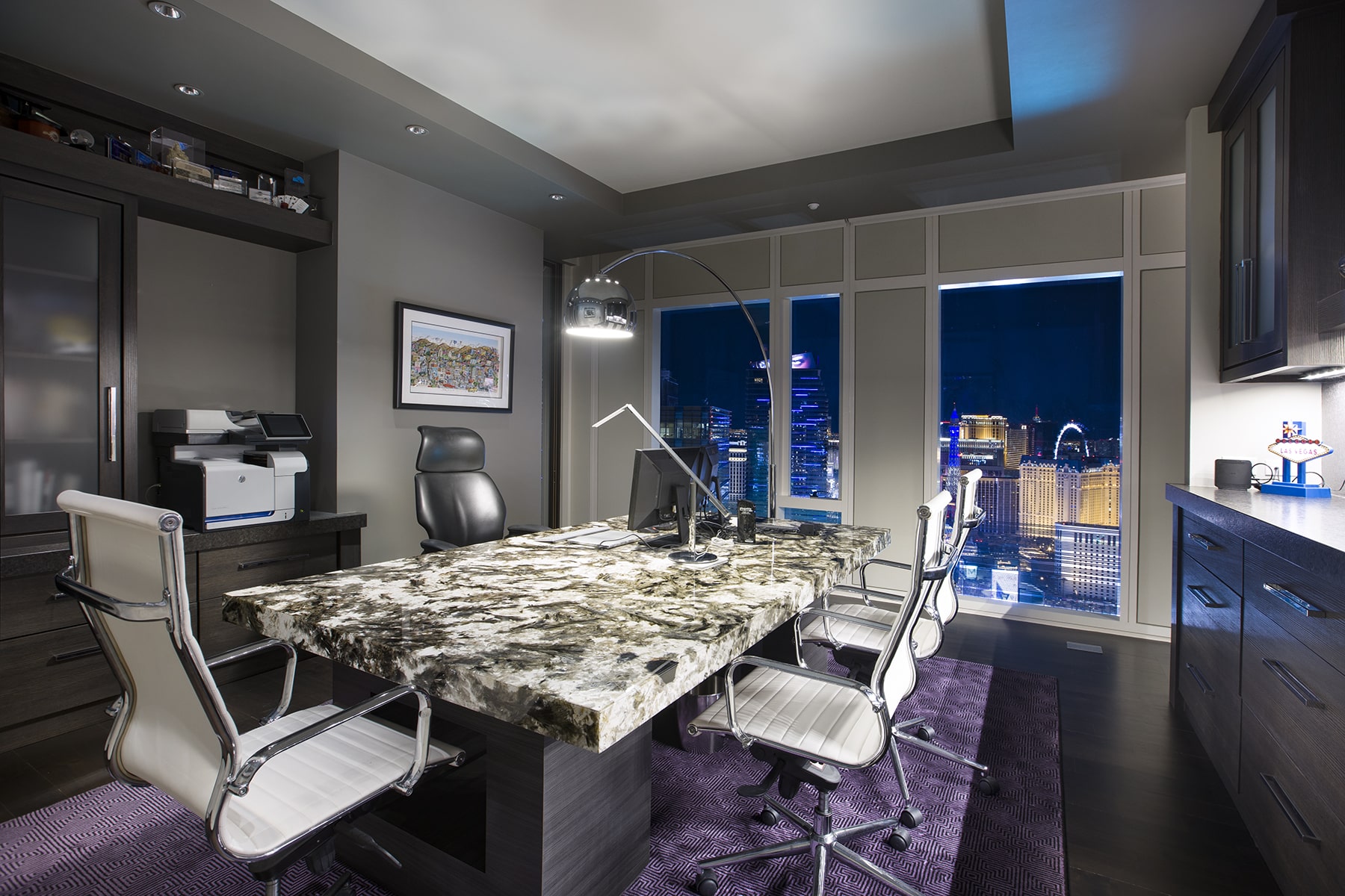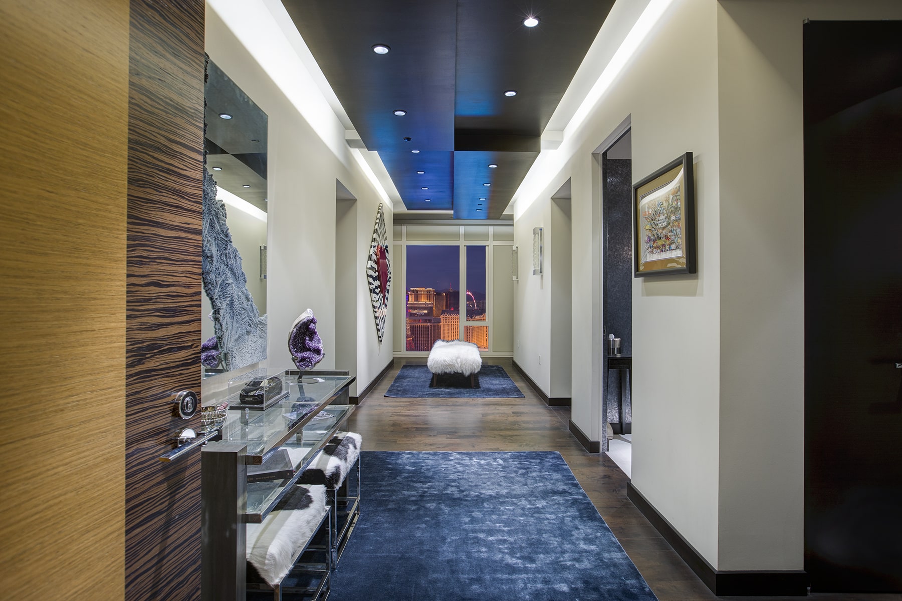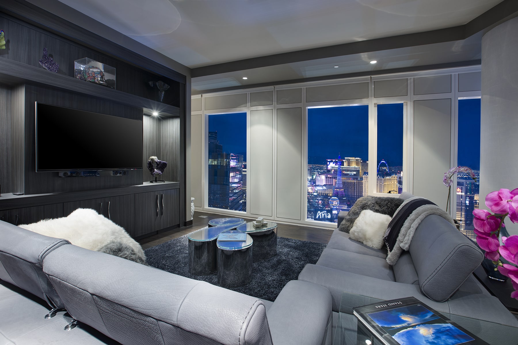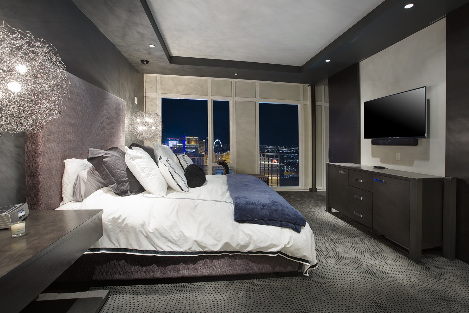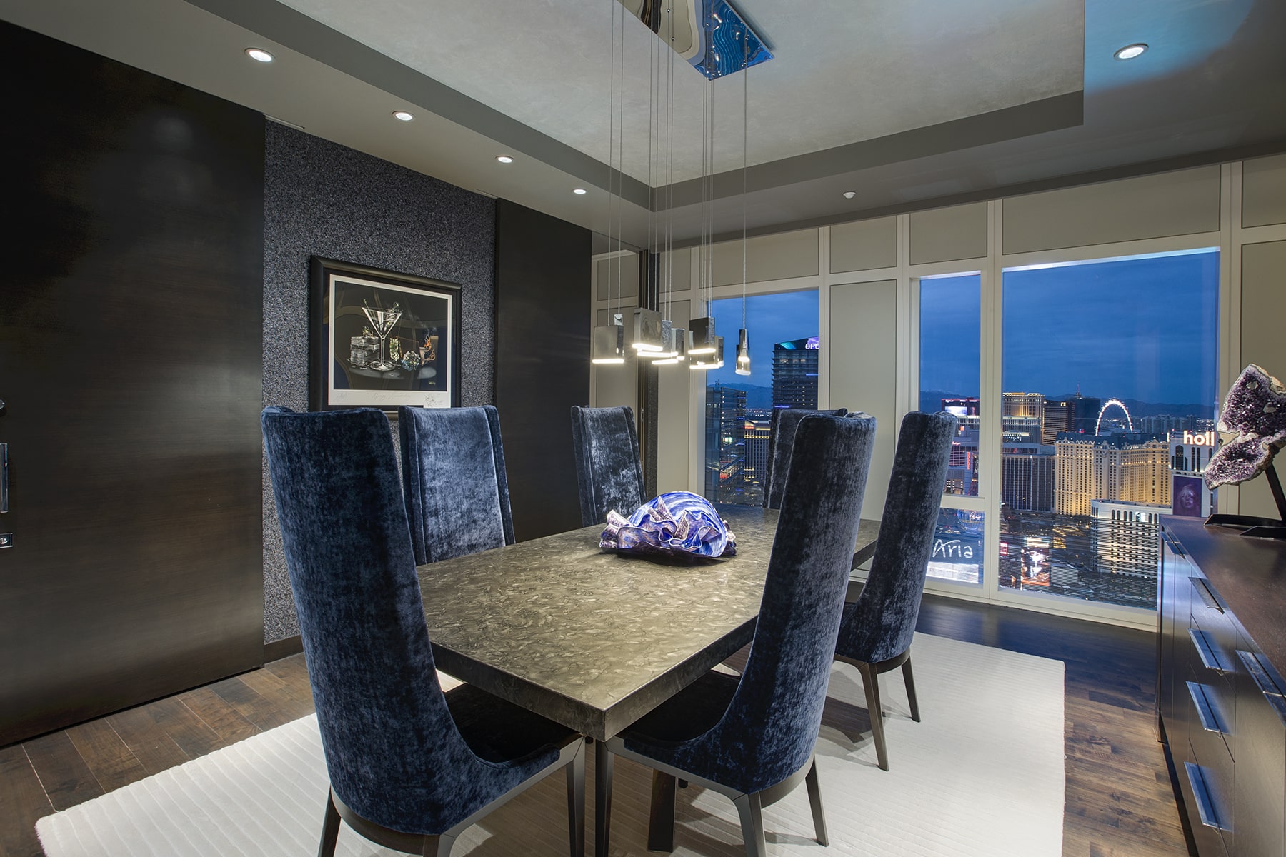 Stunning Triple Five Star High Rise Waldorf Astoria 38th Floor Desirable Corner Unit with Spectacular Strip, City and Mountain Views.