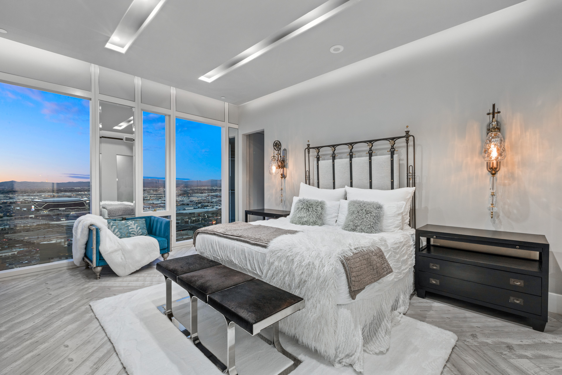 If you revel in the thought of living on the edge and in the heights in terms of both location and decor, this magnificent 3-bedroom, 2 1/2-bath penthouse unit at the renowned Waldorf Astoria Las Vegas offers the utmost in luxury, privacy and style. No expense was spared in the remodel, and it is a showplace that even includes custom furnishings.