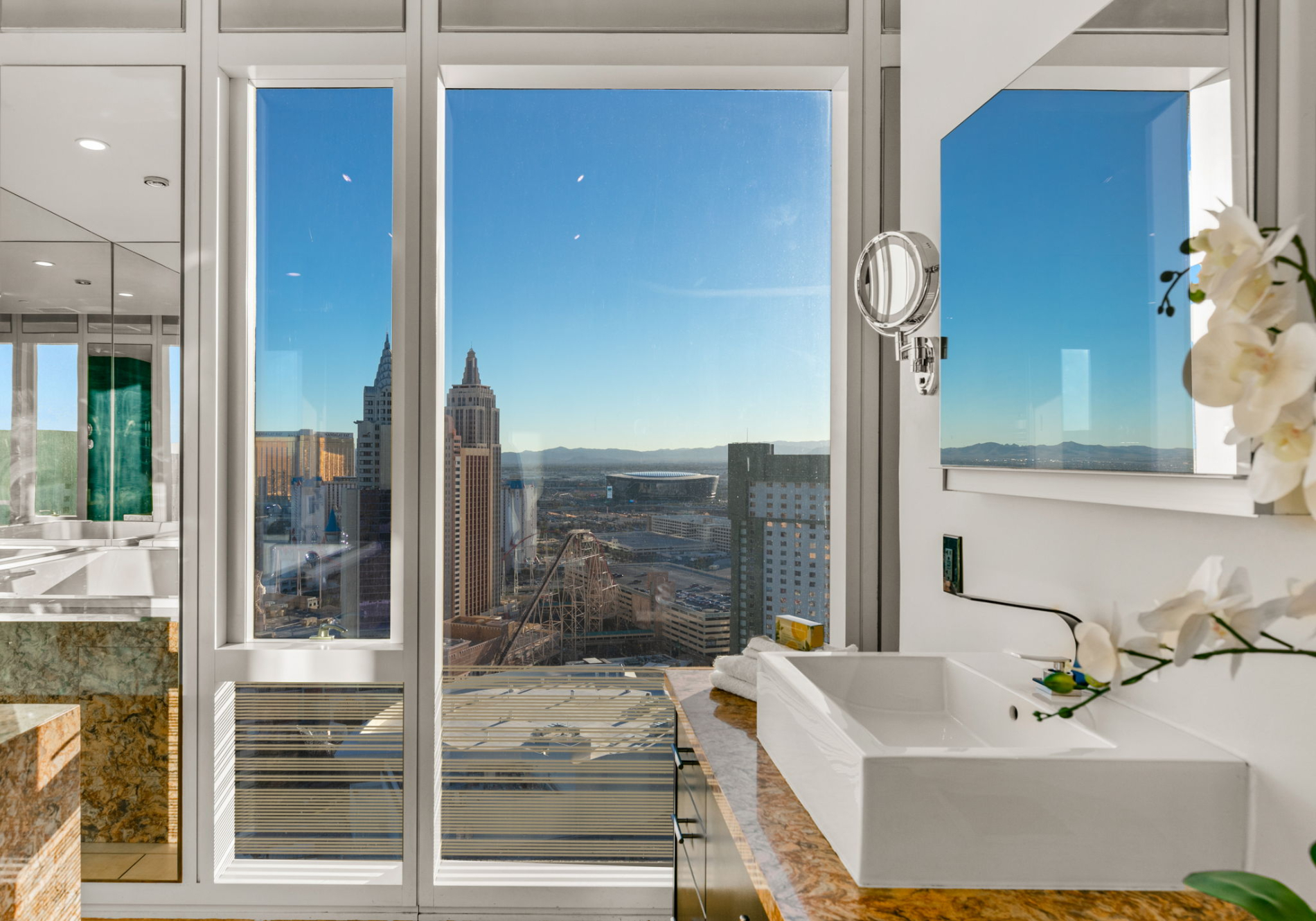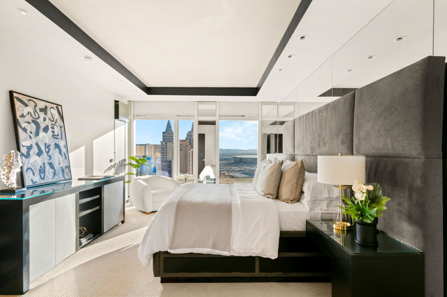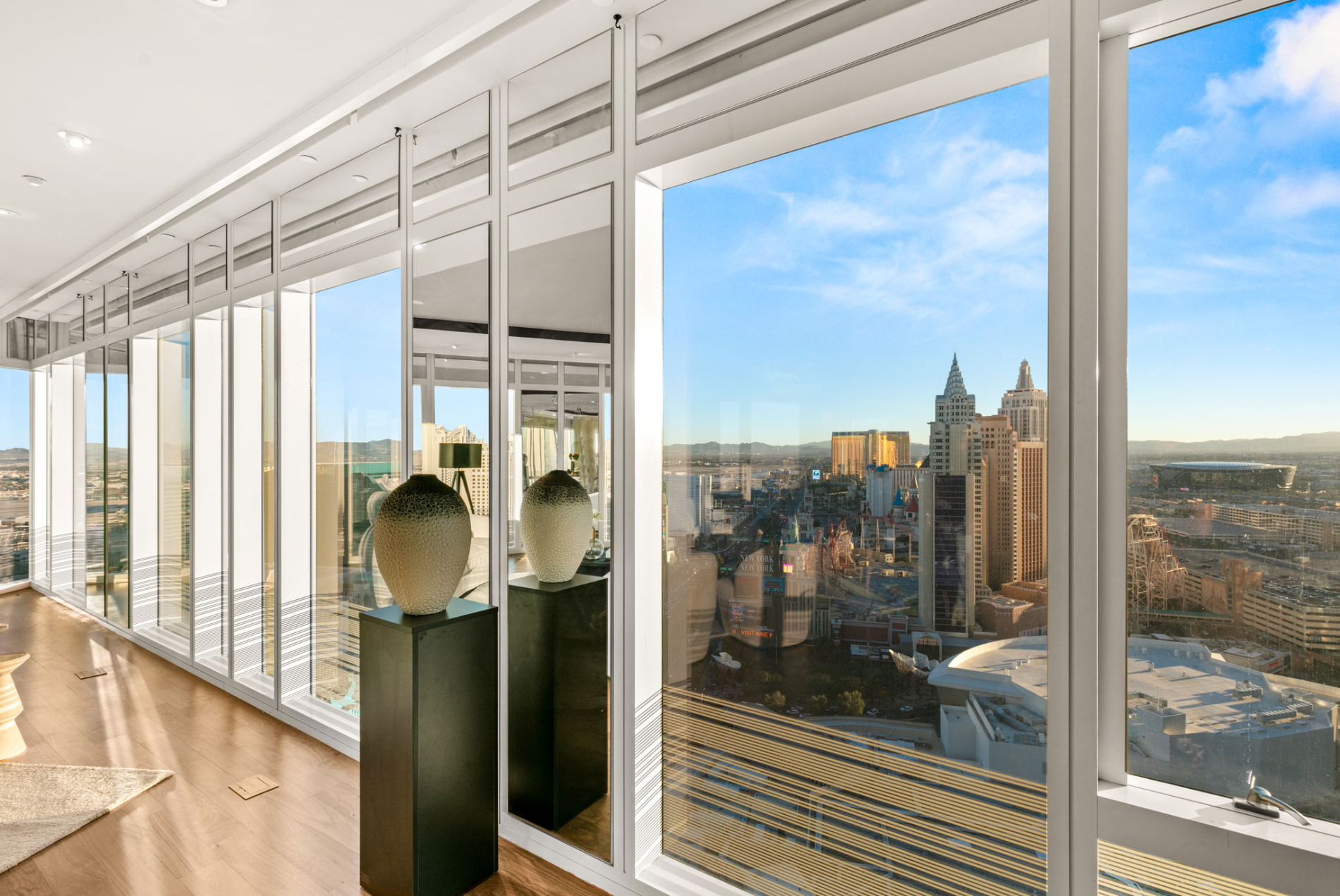 As you step inside, you'll immediately be captivated by the sweeping, panoramic views that greet you from every angle. This corner unit is a true masterpiece of design, offering vistas that stretch across the vibrant Las Vegas skyline, from the iconic Strip to the majestic desert mountains. Whether it's the dazzling lights of the city at night or the golden glow of the sunsets, this residence provides an ever-changing canvas of beauty that will leave you in awe.