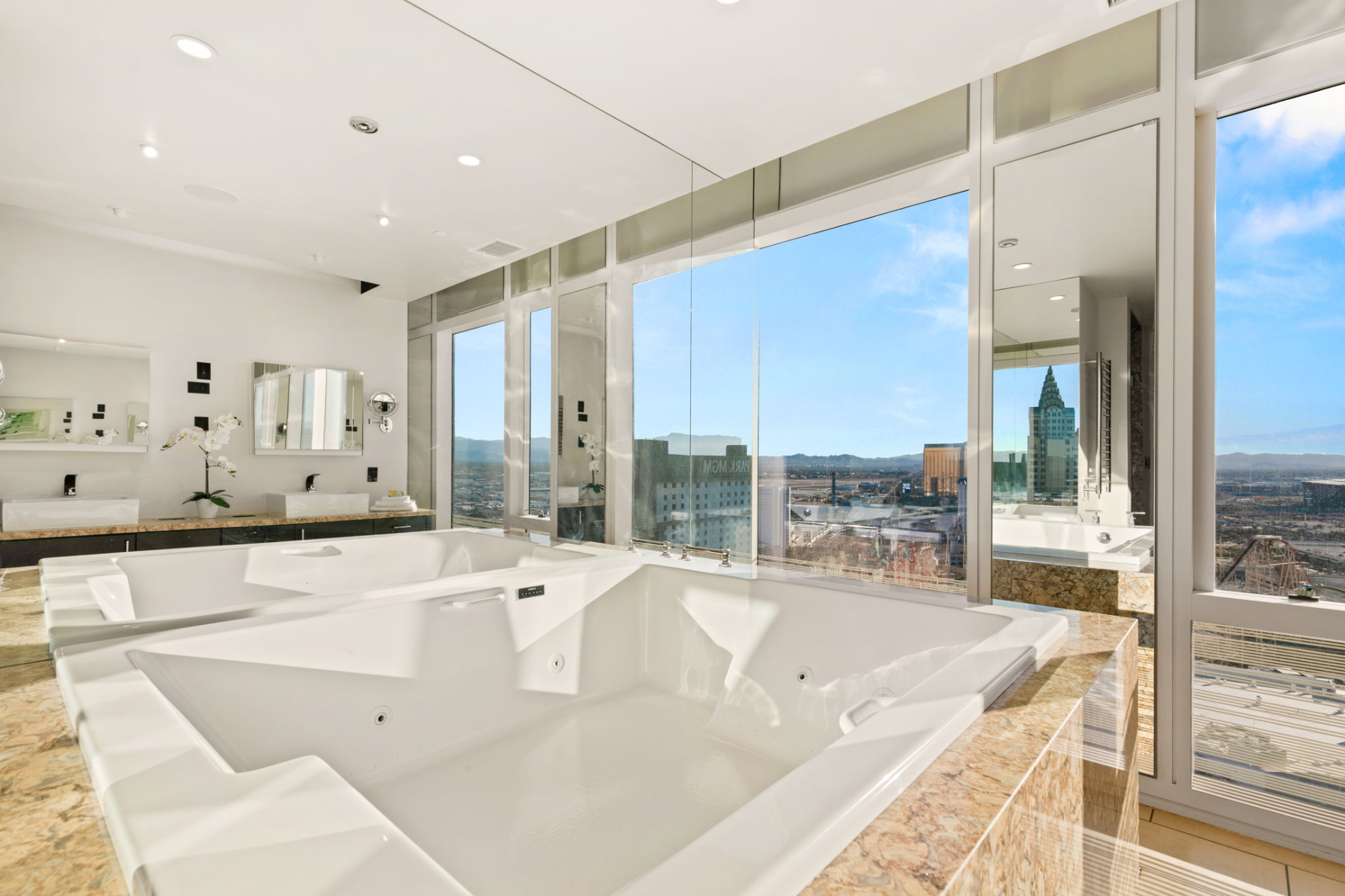 The heart of this condo is its open floor plan, a testament to modern luxury and sophistication. The seamless flow from the living room to the dining area and kitchen creates an inviting space that is perfect for both relaxation and entertaining. Imagine hosting elegant soirées with friends and family against the backdrop of the glittering city lights or simply enjoying quiet evenings in the comfort of your own sanctuary. Every detail of this home has been carefully curated with the utmost attention to quality and style. Custom upgrades are found throughout, adding a touch of opulence to every corner. Mirrored closets, built-in to perfection, provide ample storage space while adding a touch of glamour to the bedrooms. Electric shades, a sophisticated touch, allow you to effortlessly control the amount of light and privacy in each room, enhancing your living experience. This condo is also a smart home, equipped with cutting-edge technology to ensure your comfort and security. Control lighting, climate, and security systems with a touch of your smartphone or voice command. Your home will cater to your every need, providing a level of convenience that is simply unparalleled. The indulgence continues in the three bathrooms, each a sanctuary of relaxation and rejuvenation. However, the pièce de résistance is the full-size jetted tub, an oasis of tranquility where you can unwind and soak away the stresses of the day. This luxurious feature adds a spa-like experience to your daily life, elevating your overall well-being. Beyond the sheer opulence of the condo itself, the Waldorf Astoria offers a lifestyle that is second to none. This iconic residence is synonymous with luxury, and its residents enjoy an array of world-class amenities and services. From the moment you step into the elegant lobby, you'll be greeted by attentive staff who are dedicated to meeting your every need. The Waldorf Astoria offers a resort-style pool and spa where you can relax and soak up the Las Vegas sun in style. State-of-the-art fitness facilities ensure that your health and wellness are always a priority. Indulge in culinary delights at the on-site restaurants or unwind with a cocktail at the bar. With 24/7 concierge services, your every request is just a phone call away, ensuring a life of comfort and convenience. The location of the Waldorf Astoria is equally impressive. Situated in the heart of the Las Vegas Strip, you'll have access to the finest entertainment, dining, and shopping that the city has to offer. From world-renowned shows to Michelin-starred restaurants and high-end boutiques, everything you desire is just moments away. In summary, 3750 Las Vegas Boulevard Unit #2804 in the Waldorf Astoria represents an extraordinary opportunity to live a life of unparalleled luxury in the heart of Las Vegas. With sensational panoramic views, custom upgrades throughout, an open floor plan, and the finest in smart home technology, this condo is the epitome of modern elegance. Indulge in the lavishness of a full-size jetted tub and enjoy the convenience of built-in mirrored closets and electric shades. The Waldorf Astoria itself offers a world of amenities and services that cater to your every need, from a resort-style pool and spa to 24/7 concierge services. Don't miss the rare opportunity to make this exceptional residence your own. It's time to experience the Las Vegas lifestyle at its finest, surrounded by the breathtaking beauty of the city's skyline. Your dream home awaits at the Waldorf Astoria, and it's a dream come true.